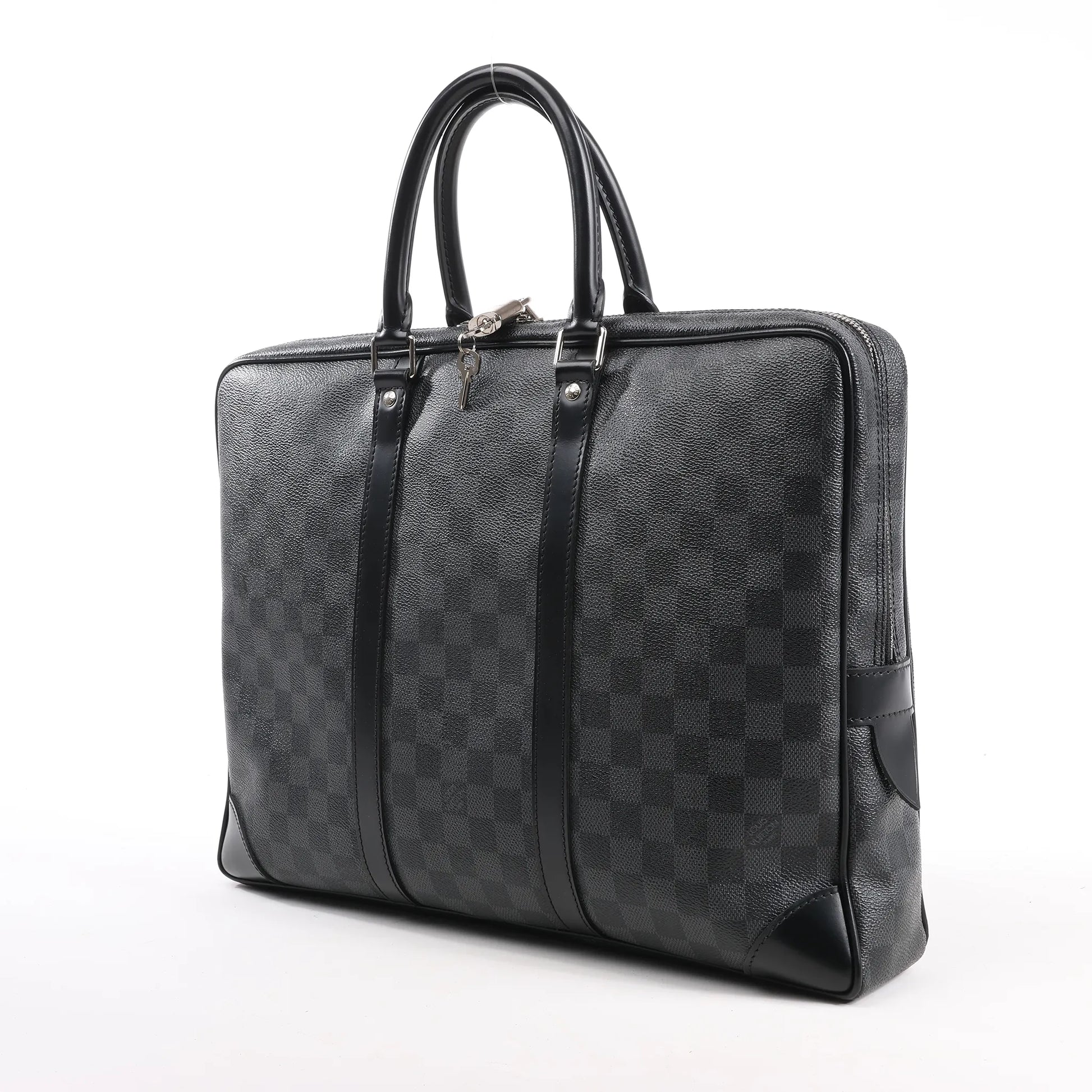 The Louis Vuitton Damier Graphite Porte Documents Voyage N41125 blends business elegance with iconic style. Crafted in durable coated canvas with smooth leather trim, this sophisticated briefcase is perfect for refined professionals on the go.