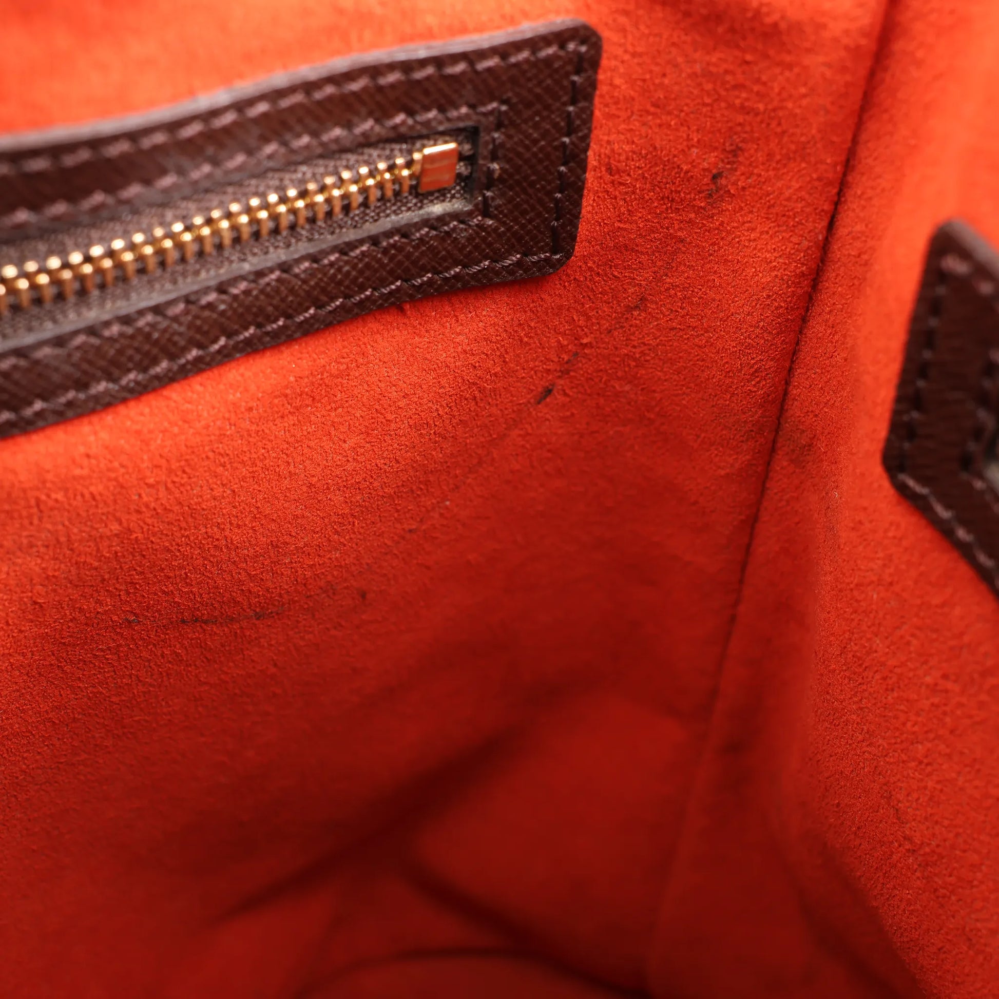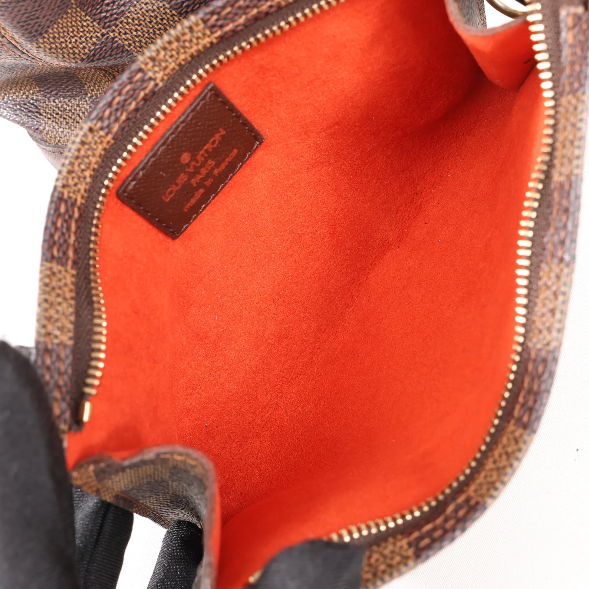 Condition Details: The exterior canvas is in excellent condition. The leather handles and trim are in great condition, but has rubbings. Hardware is still shiny and crisp with a few light scratches. The matching accessory pouch is clean and in very good condition. The bag interior is in good condition, but has small stripe stains. Date code: SP0090