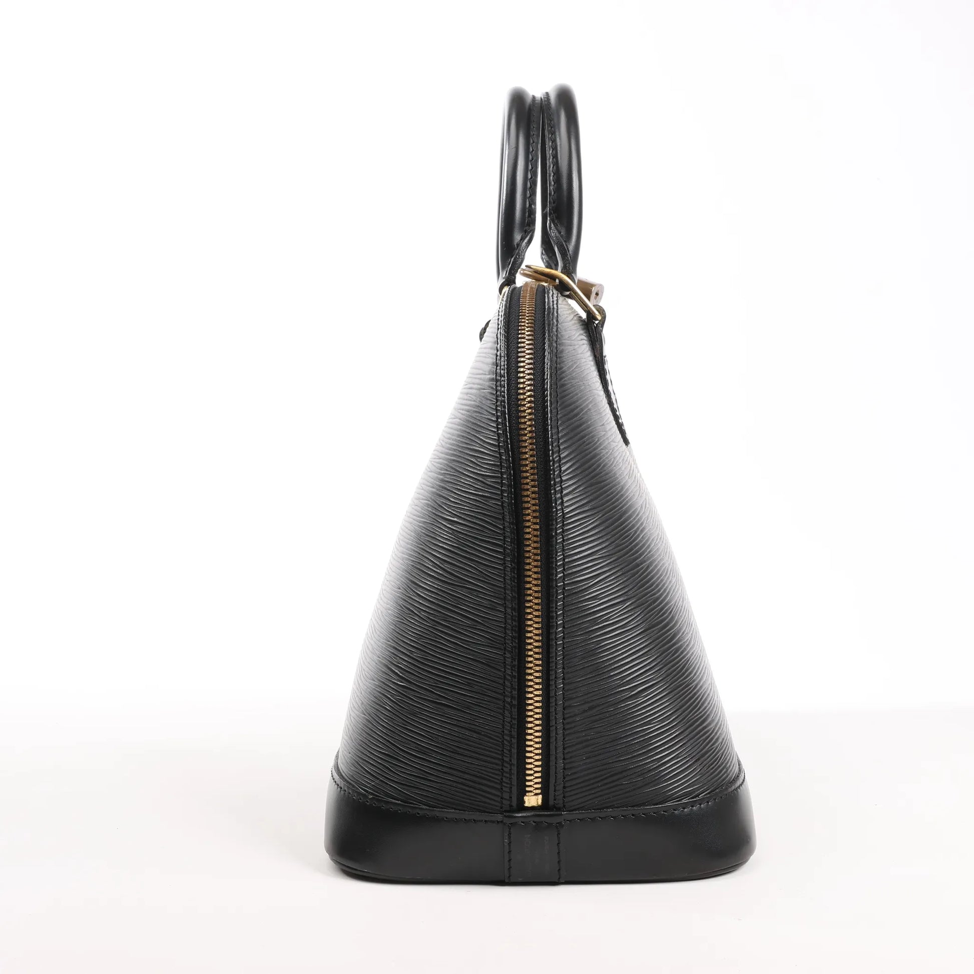 The Louis Vuitton Alma PM M52142 in black Epi leather is a timeless classic, featuring durable textured leather, structured silhouette, and gold-tone hardware for an elegant everyday statement.