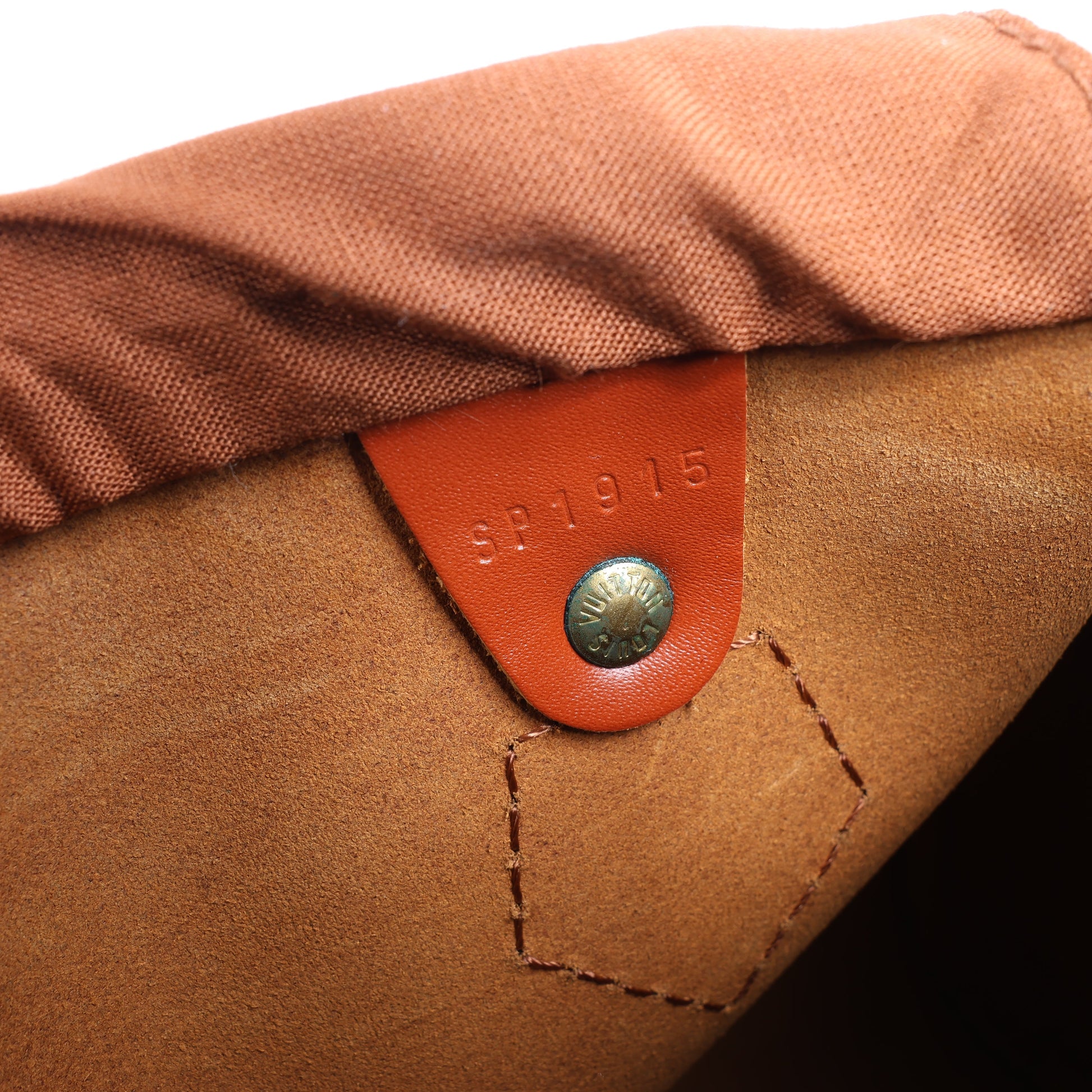 Condition Details: The exterior is beautiful in excellent condition with rubbings at the corners. The handles are clean, firm. The hardware has darkened. The interior is in very good condition with some rubbings. Date code: SP1915.