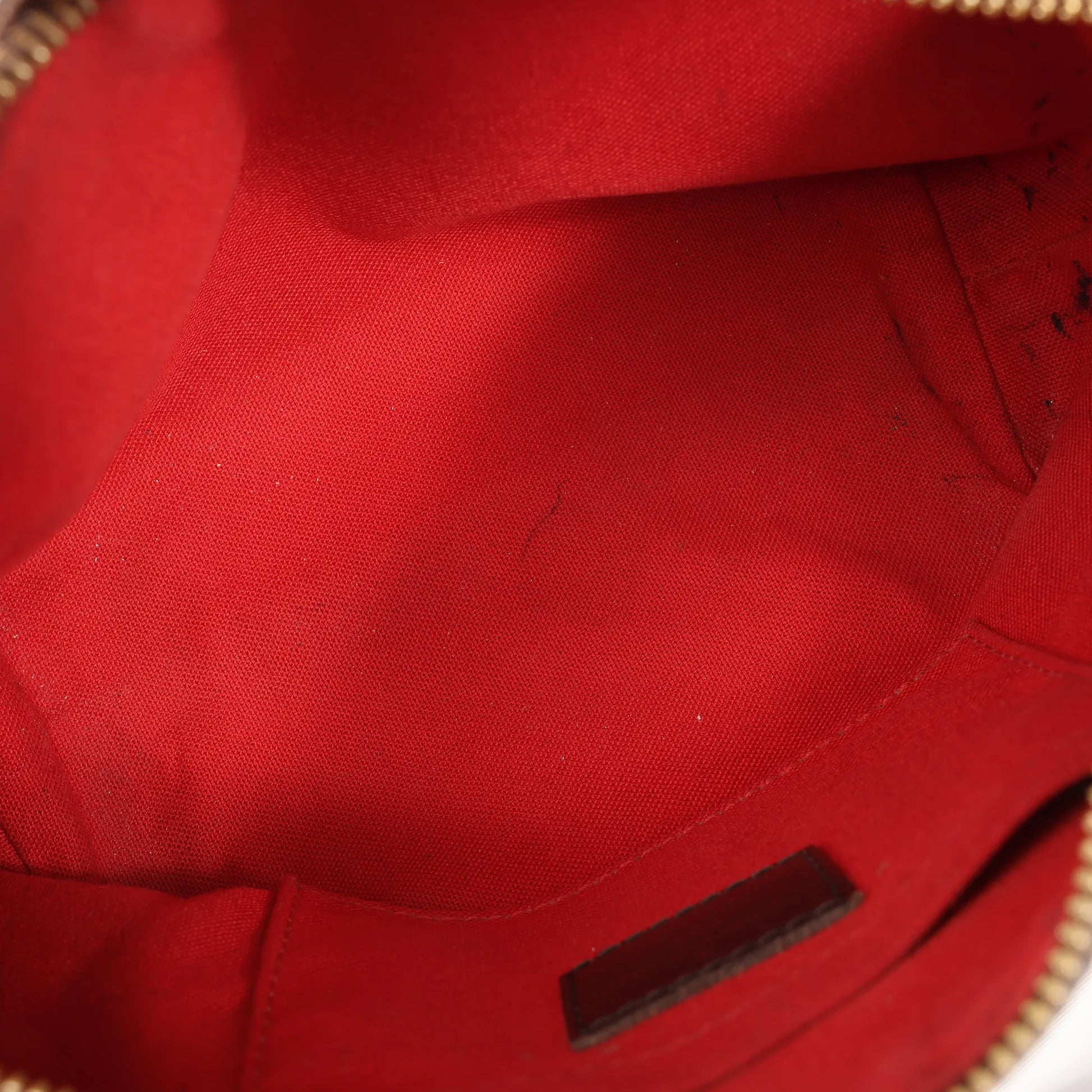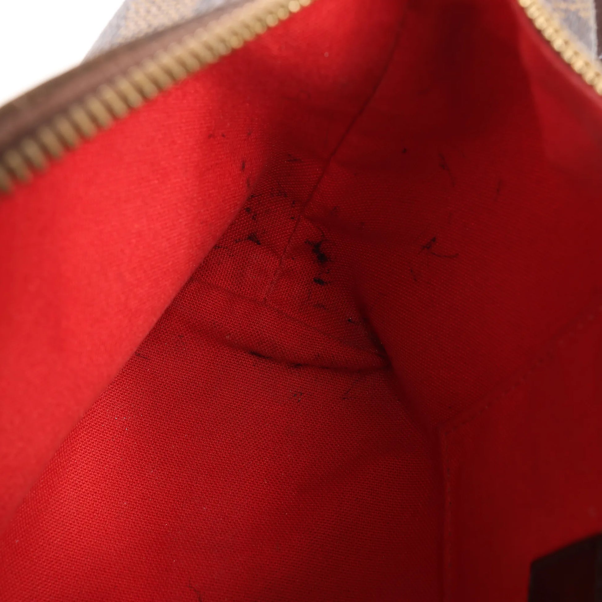 Condition Details: The exterior coated canvas is clean and beautiful with rubbings at the bottom edges. The leather handles and trim are in great condition with slight creases and scratches. The hardware is bright and crisp with scratches. The interior is in good condition, but has pen stains. Widest part is 26 cm. The date code is DU1025.