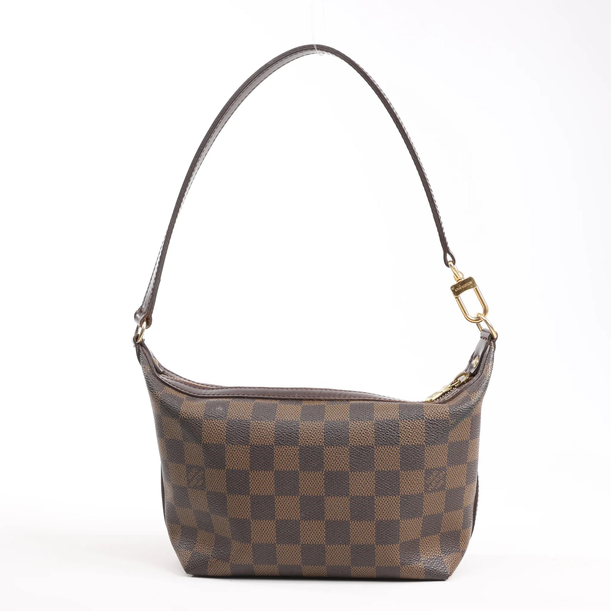 Crafted from signature Damier Ebene canvas, the Louis Vuitton Illovo PM N51996 is a sleek and compact shoulder bag with a refined silhouette, gold-tone hardware, and elegant brown leather trim - perfect for everyday sophistication.