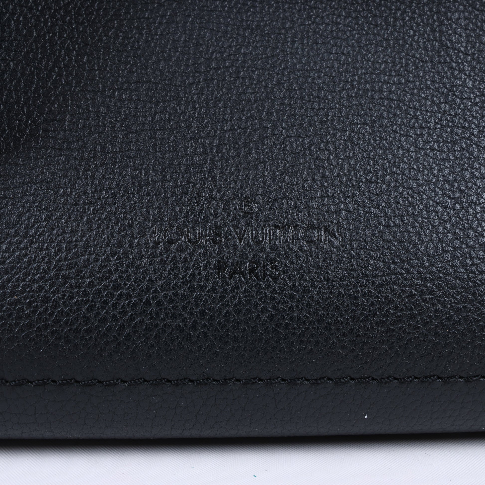 The Louis Vuitton LockMe Ever BB shoulder bag (M53937) in black leather features a sleek silhouette, silver-tone LV logo clasp, and versatile top handle and shoulder strap. Elegant and practical, it's perfect for both day and evening sophistication.