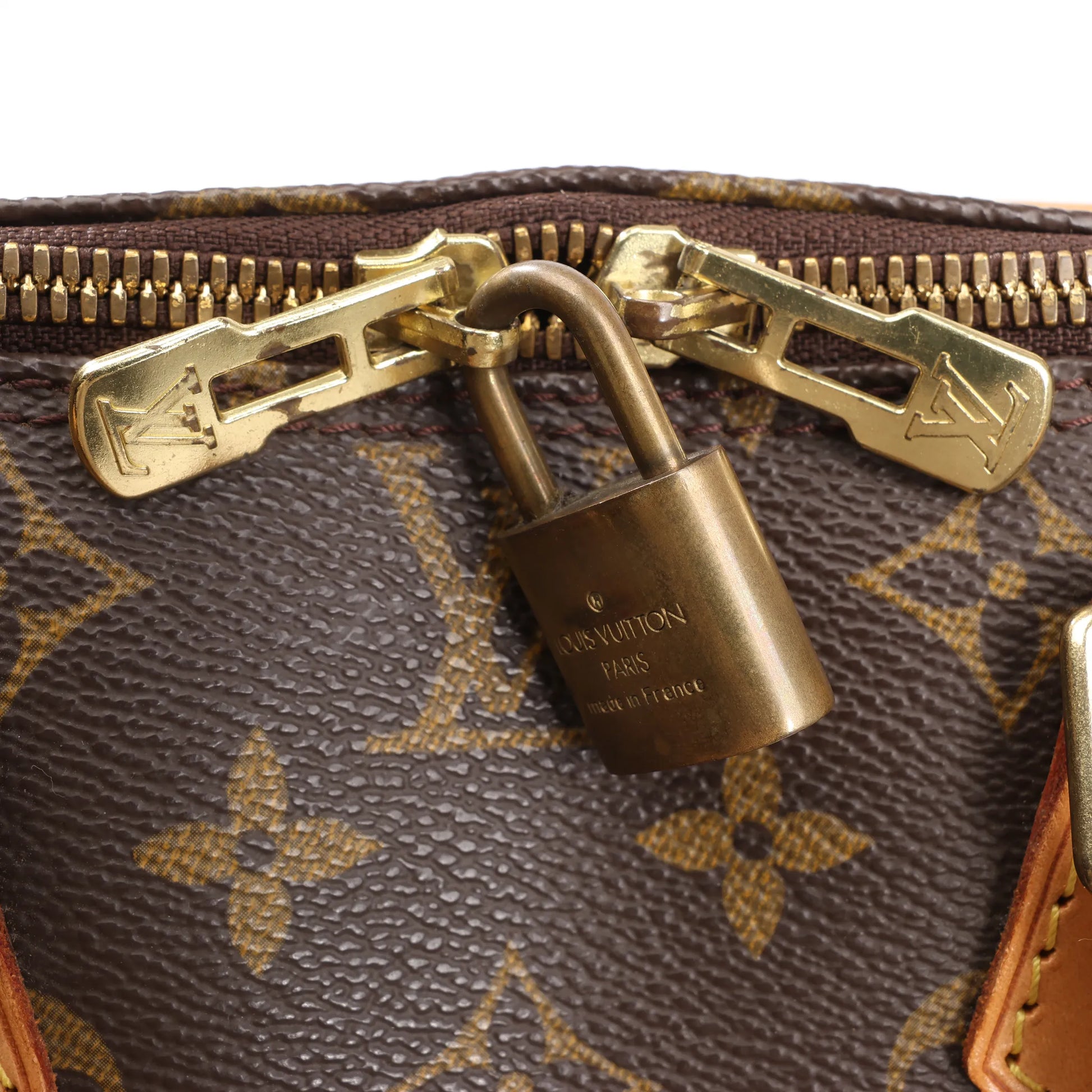 Condition Details: The exterior canvas is clean and beautiful. Vachetta leather is in great condition, but has rubbings and water stains. The leather handles are firm and in great condition, but with usage rubbings. The hardware is crisp, some parts has darkened. The interior is in great condition. Date code: VI1929