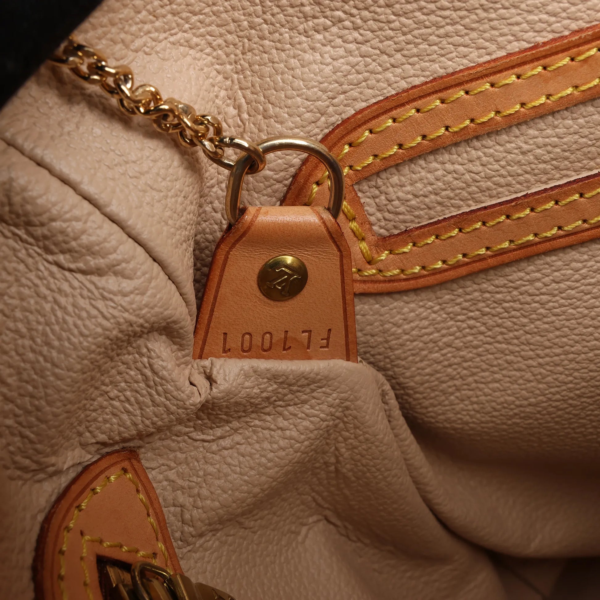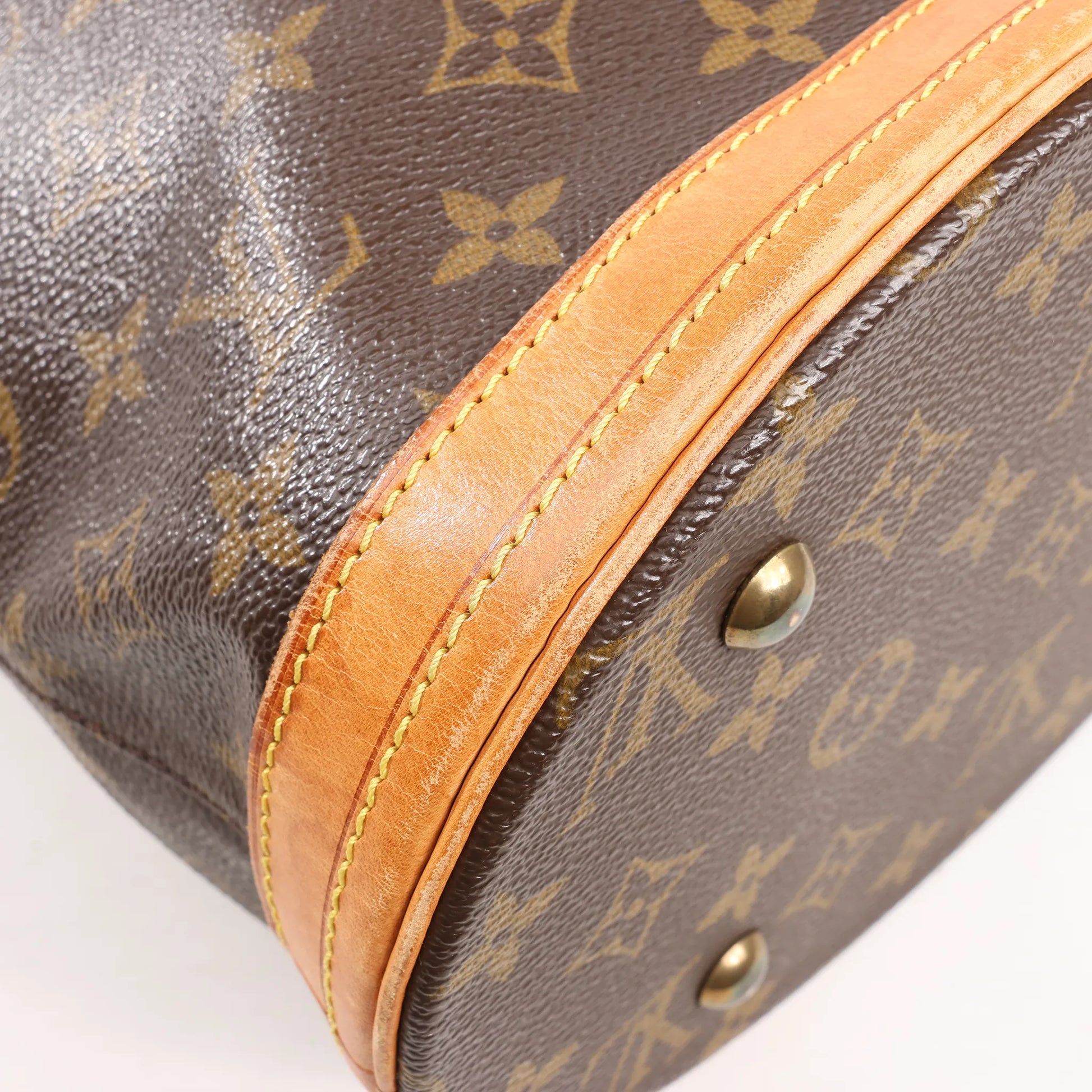 Condition Details: The exterior monogram canvas in excellent condition. The leather handles and trim has developed honey patina, show slight signs of use as minor rubbings and water spots. Hardware is still shiny and crisp with a light scratches. The matching accessory pouch is clean and in very good condition. The bag interior is in great condition. Date code: FL1001