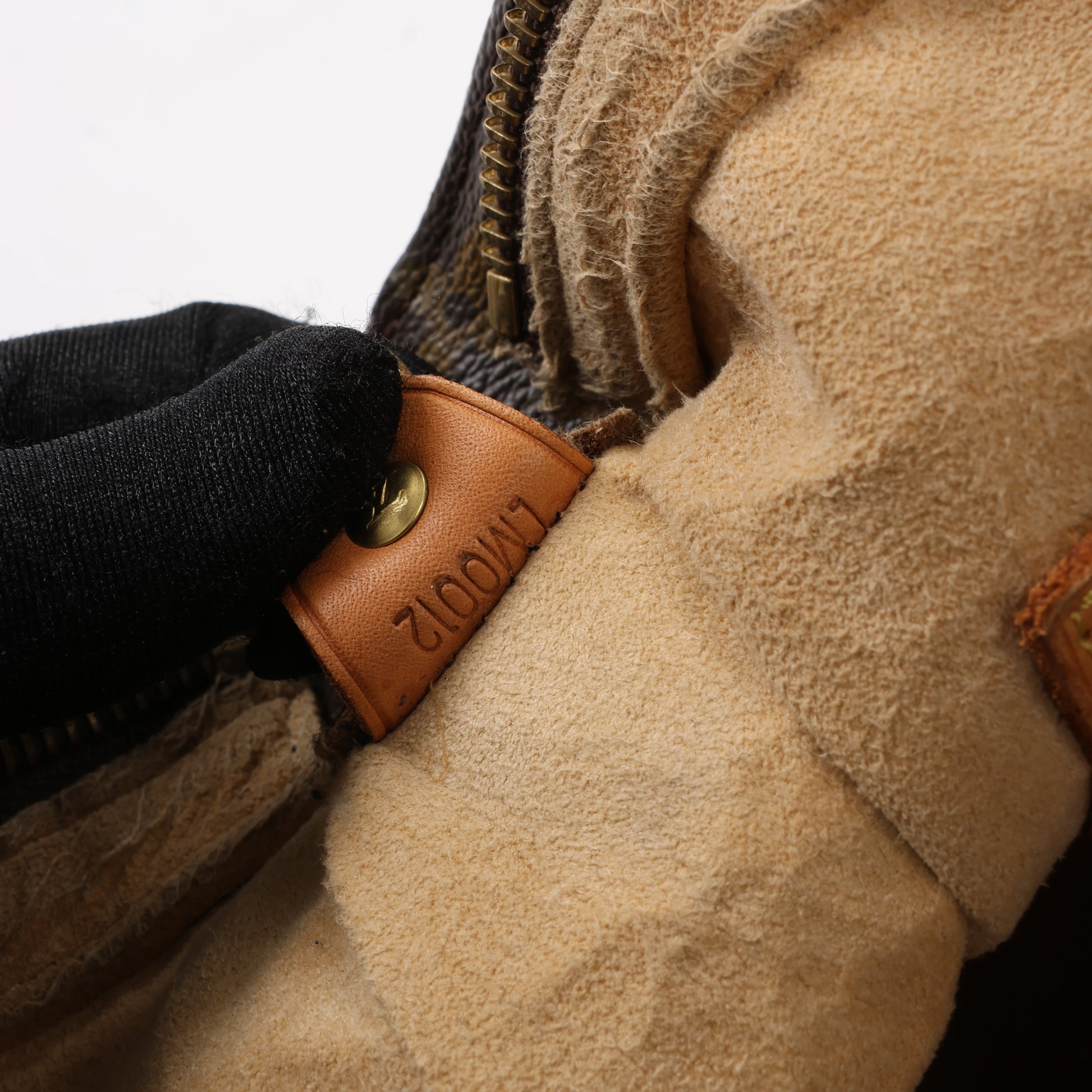 Condition Details: The exterior coated canvas is clean and beautiful and in excellent condition, but has some creases. The leather handle is clean and in very good condition, but has light rubbings and has deformation. The interior has rubbings, creases and dirt spots. The date code is LM0012.