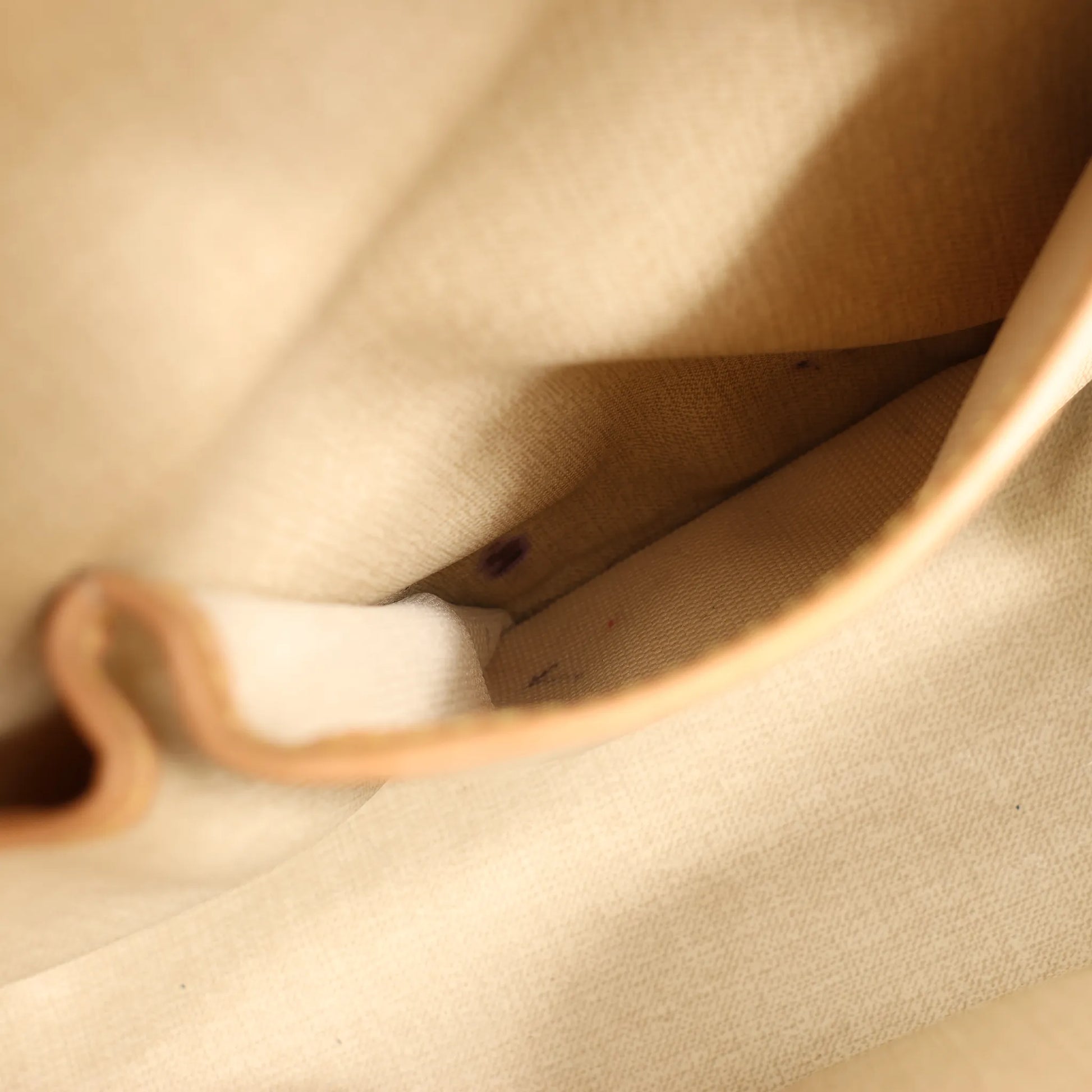 Condition Details: The exterior canvas is clean and beautiful. Vachetta leather trim and handles has developed honey patina with some rubbings, darkening and water spots. The hardware has hairline scratches. The interior is clean and in good condition, but inner pocket has some stains. Date code: BA0024