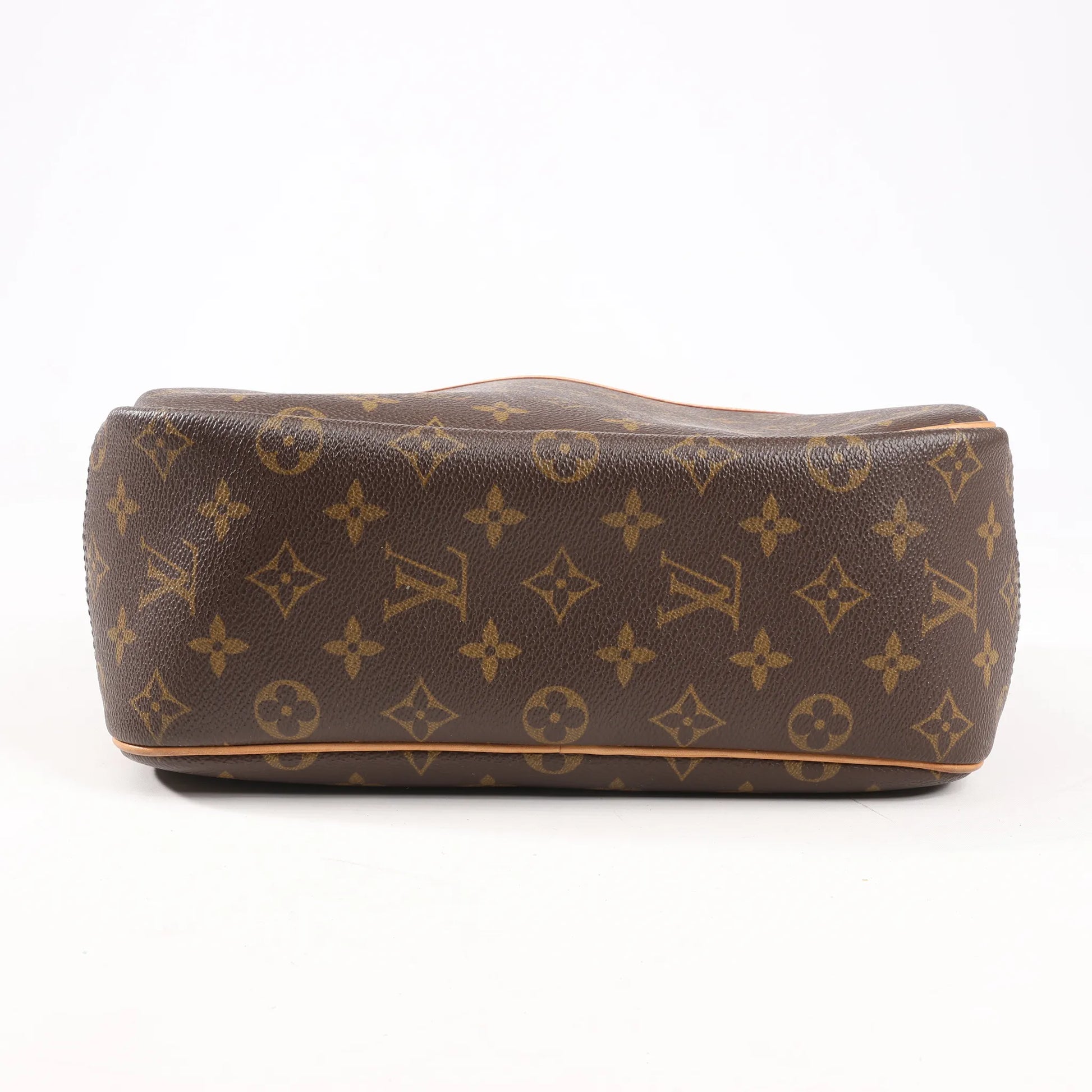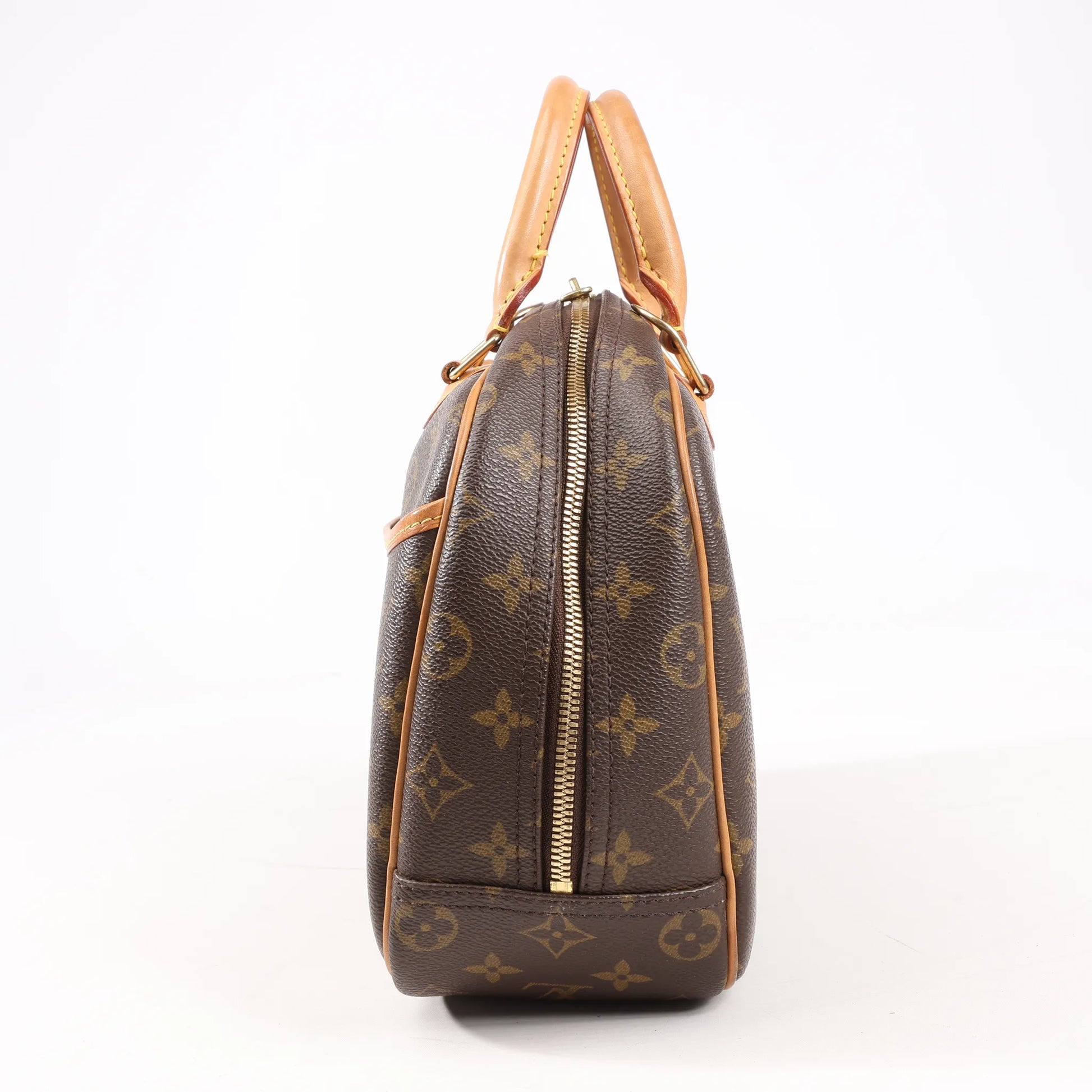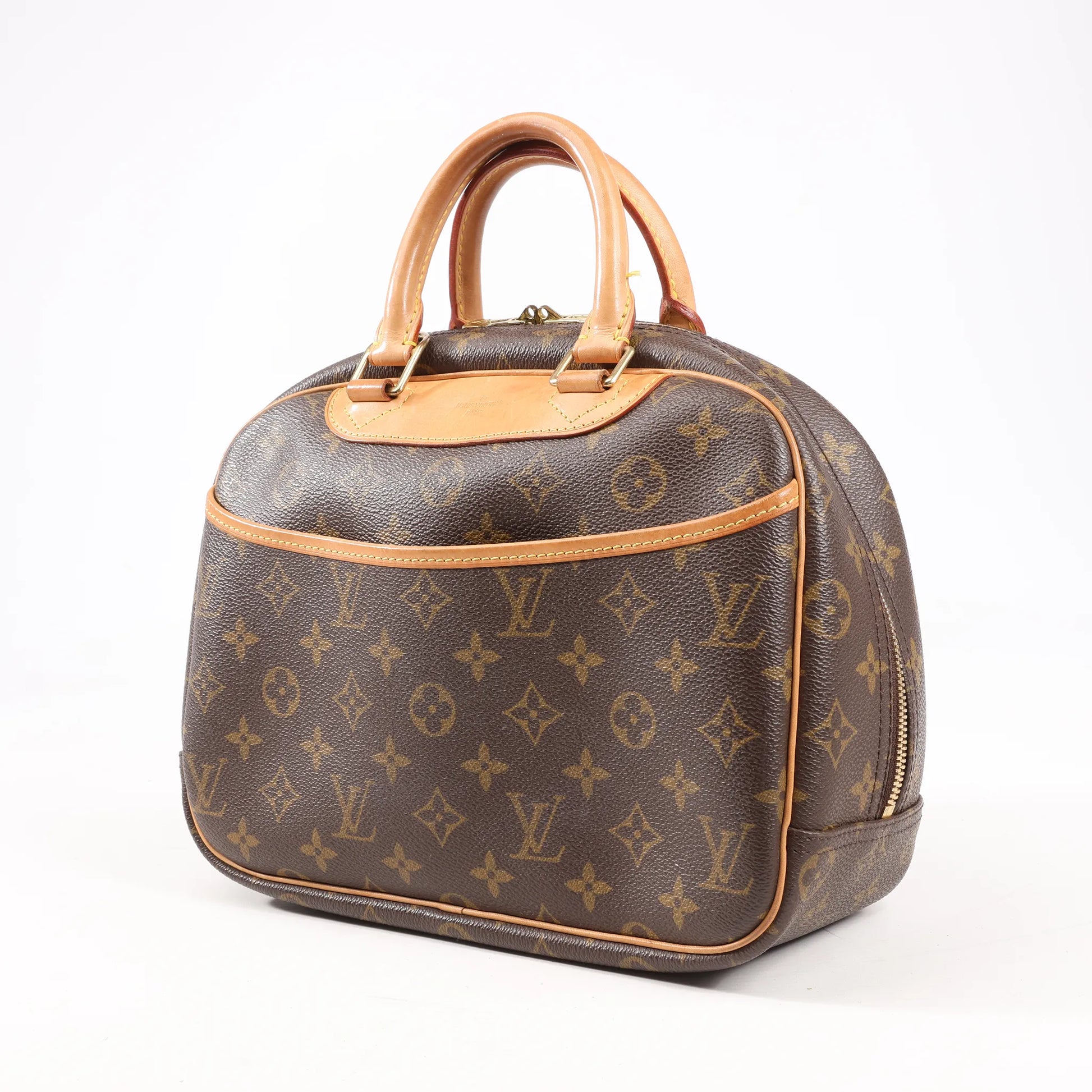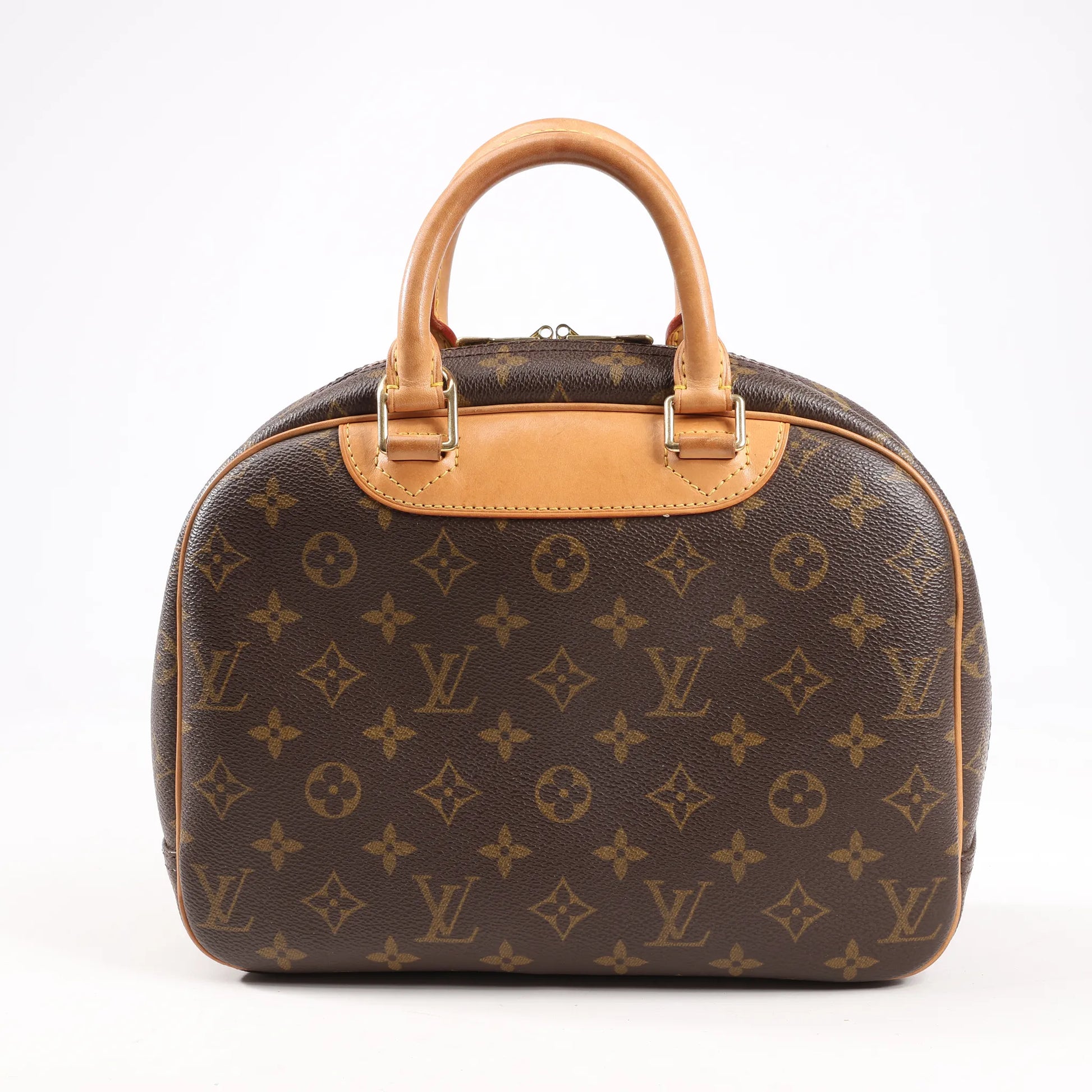The Louis Vuitton Trouville M42228 handbag in classic Monogram Canvas is a timeless icon. Featuring natural leather trim, dual rolled handles, and a structured silhouette, this compact bag is perfect for elegant everyday use.