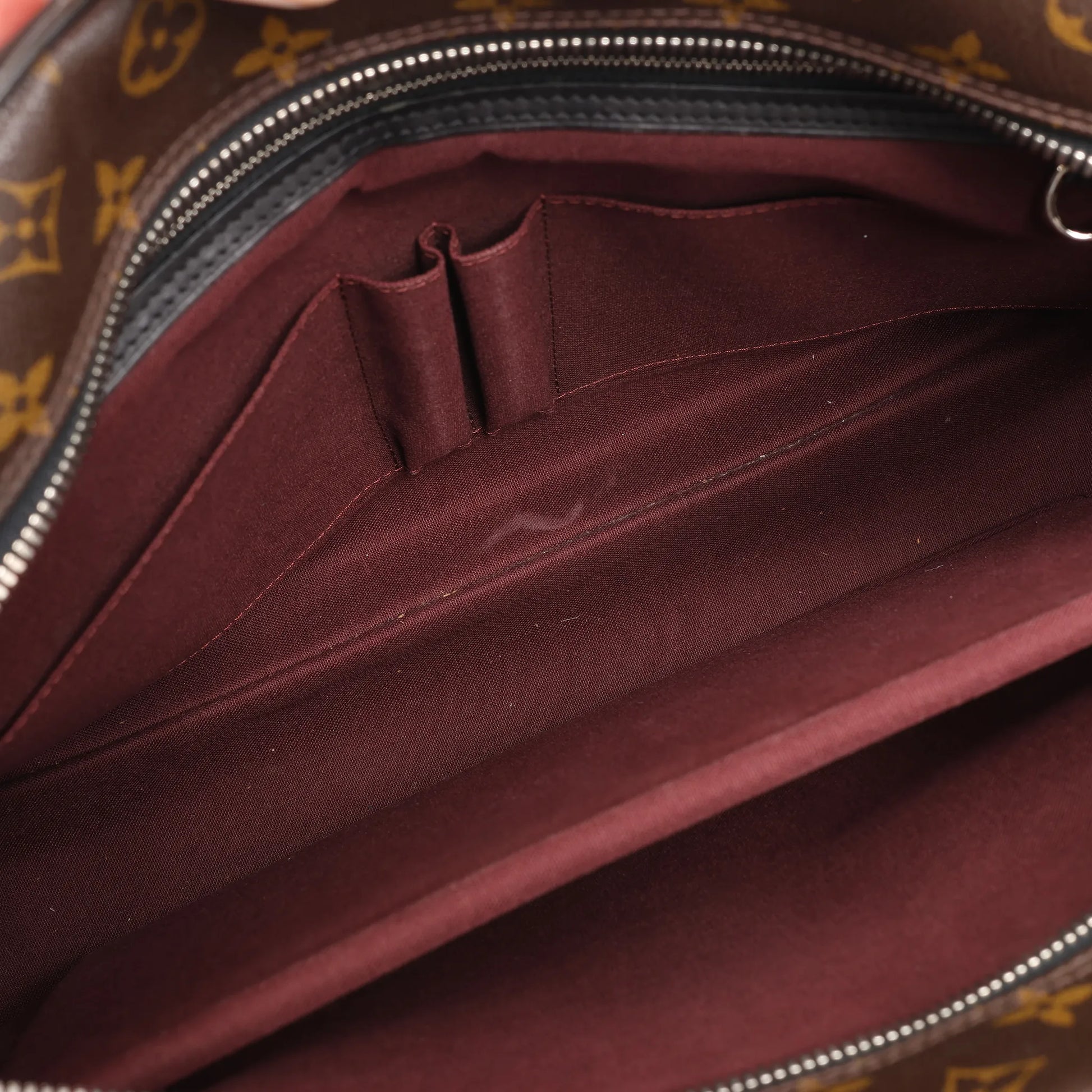 Condition Details: Outer canvas is clean and beautiful in great shape. Leather trim and handles has use signs as rubbings. The hardware has scratches, but is bright and crisp with some hairline scratches. The interior is in great condition, except one small stain. Date code: TH0110.
