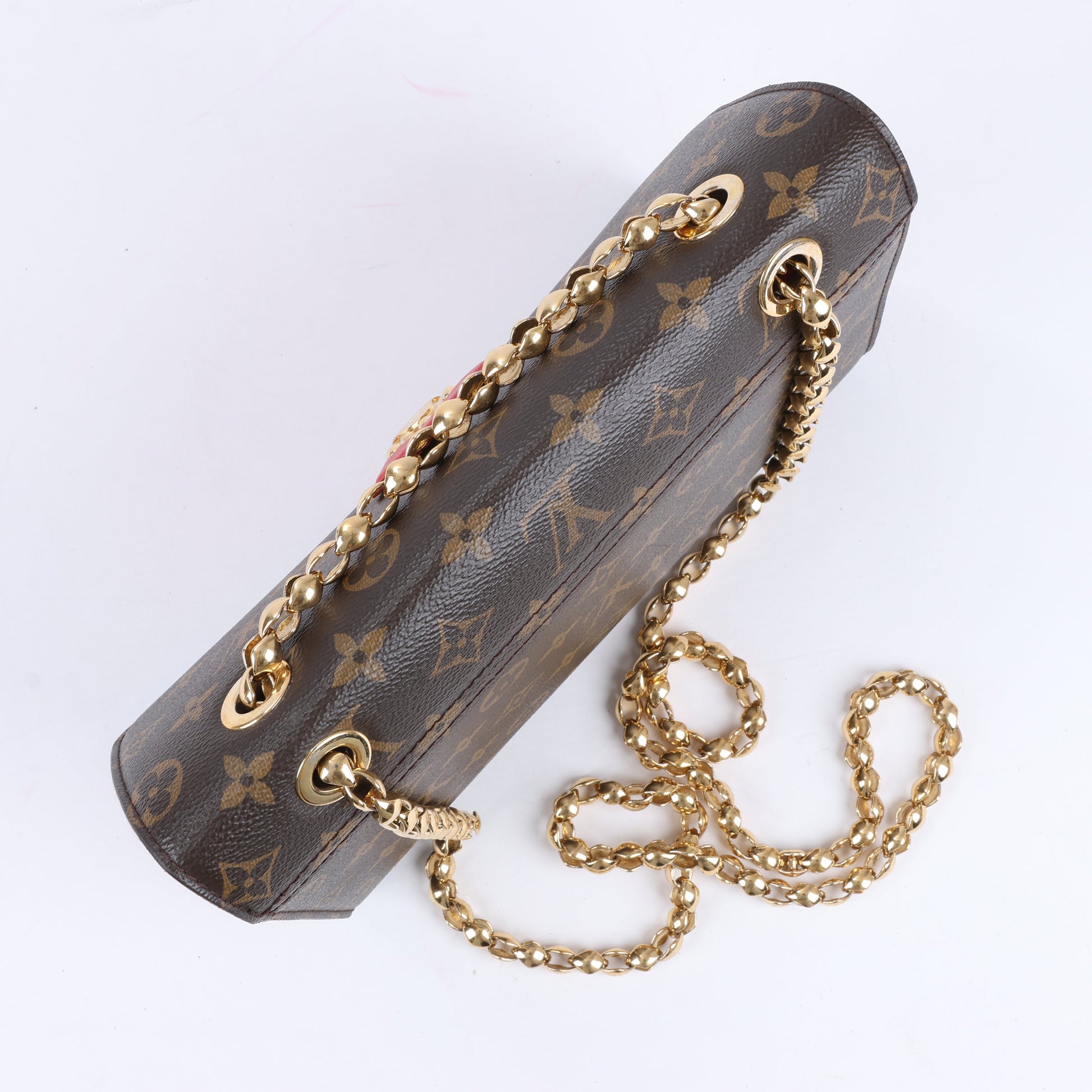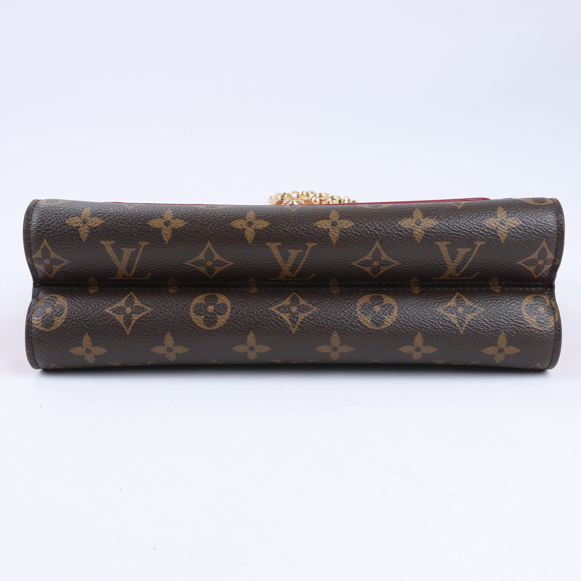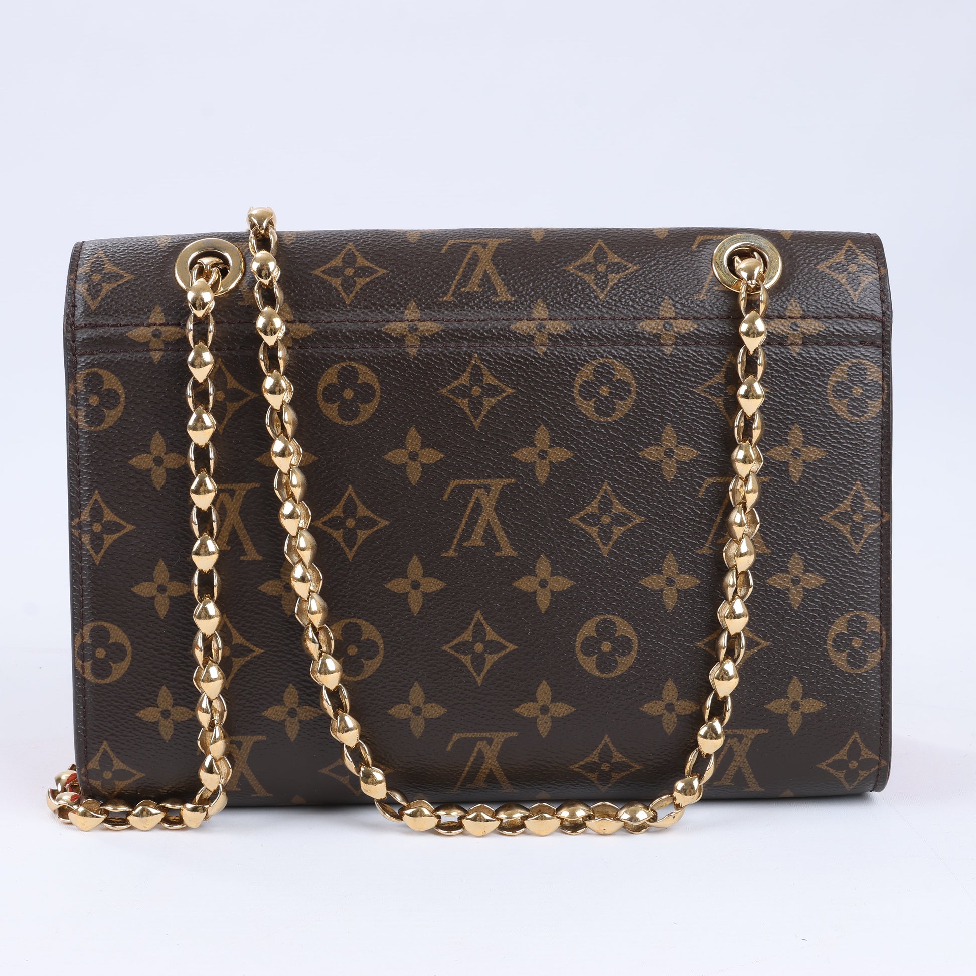 The Louis Vuitton Monogram Victoire Shoulder Bag in Red (M41731) combines classic monogram canvas with bold red leather accents. Featuring a gold-tone chain strap and a vintage-inspired clasp, this chic bag is perfect for adding elegance to any outfit.