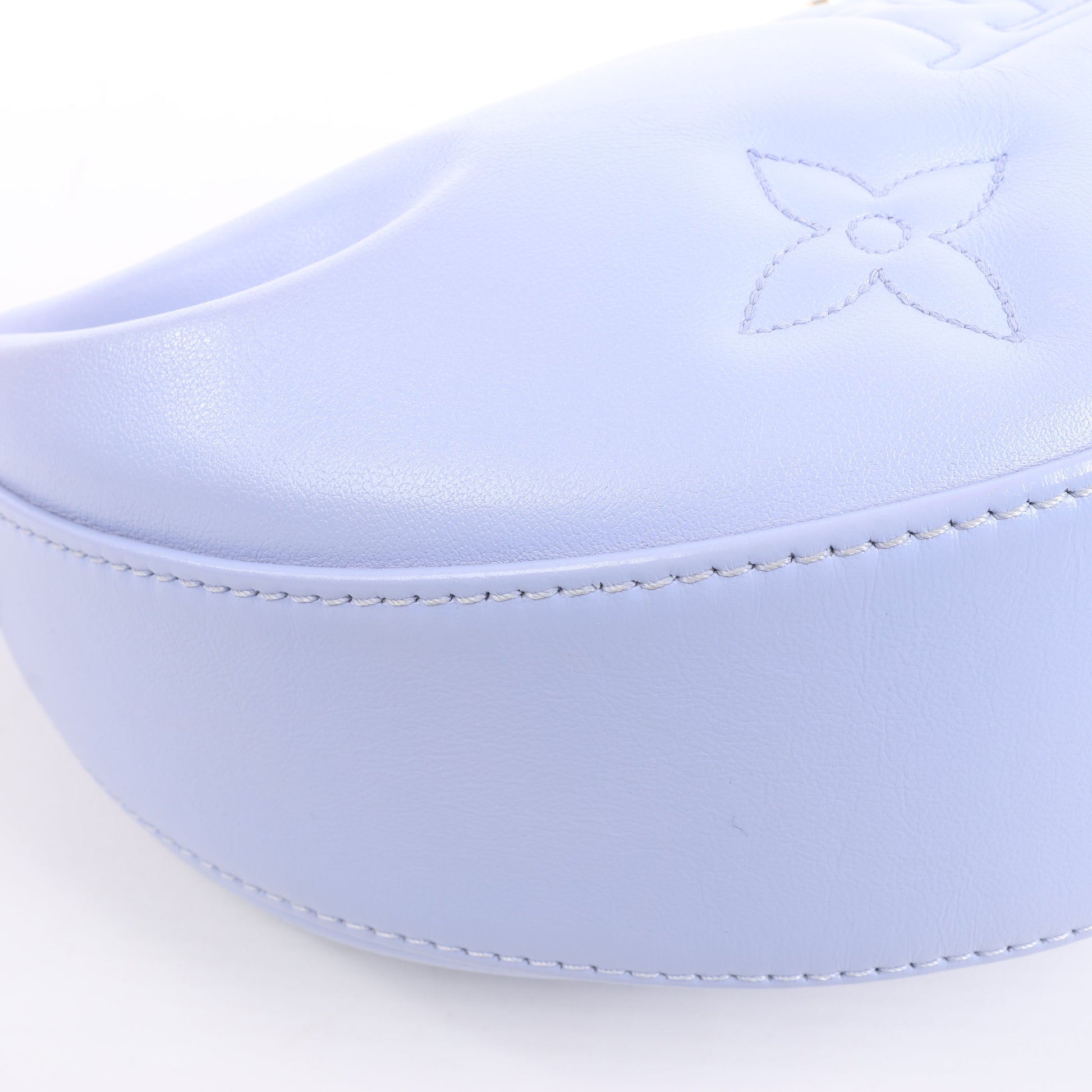 Louis Vuitton Over The Moon Bubblegram in soft purple quilted leather, M20856. Features embossed Monogram, chunky gold-tone chain, and adjustable strap—youthful charm meets signature LV style.