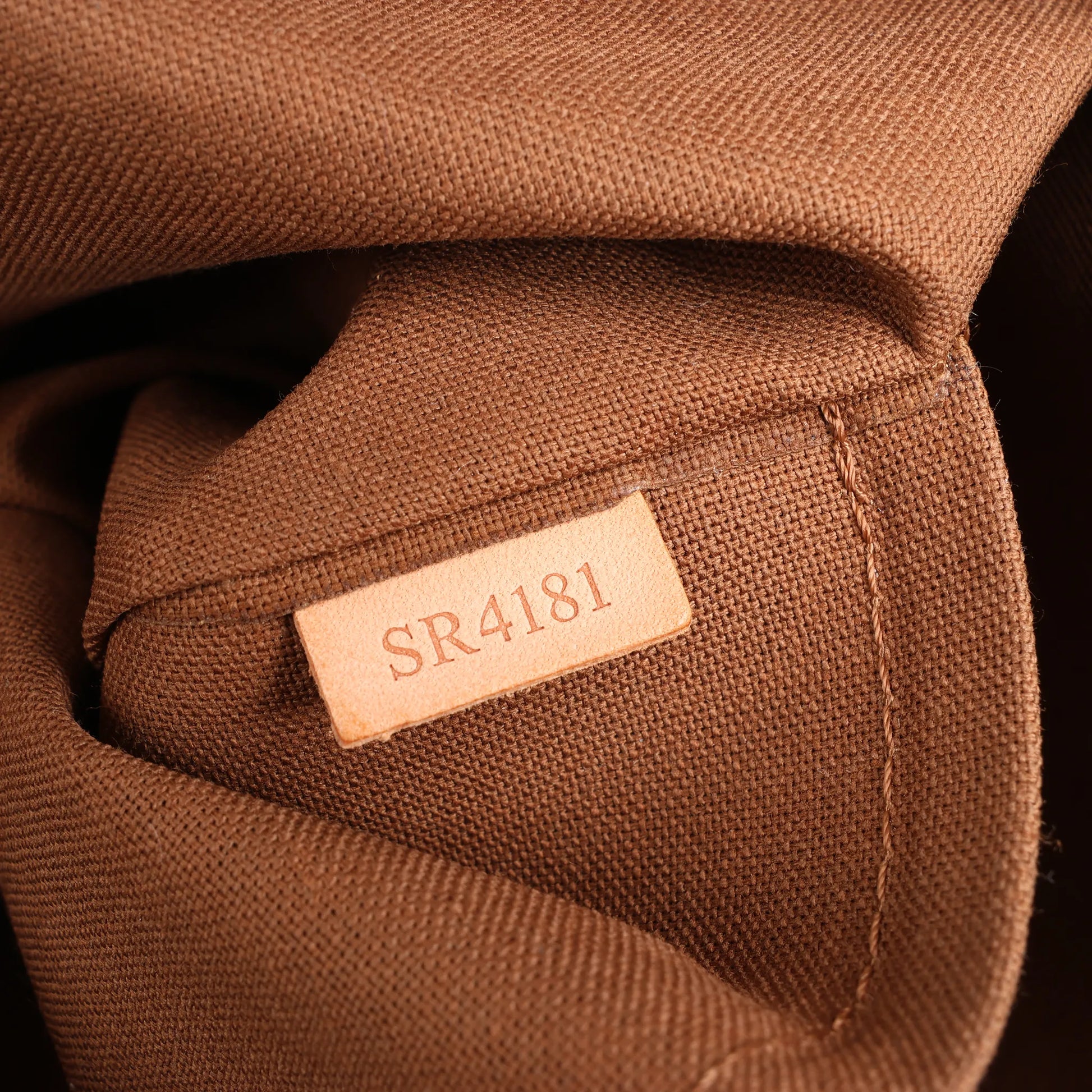 Condition Details: The exterior coated canvas is clean and beautiful with light creases. The leather handles and upper trim developed dark honey patina and in very good condition with light rubbings. Note: Shoulder strap is missing. The interior is in excellent condition. Top width is 36 cm. The date code is SR4181.