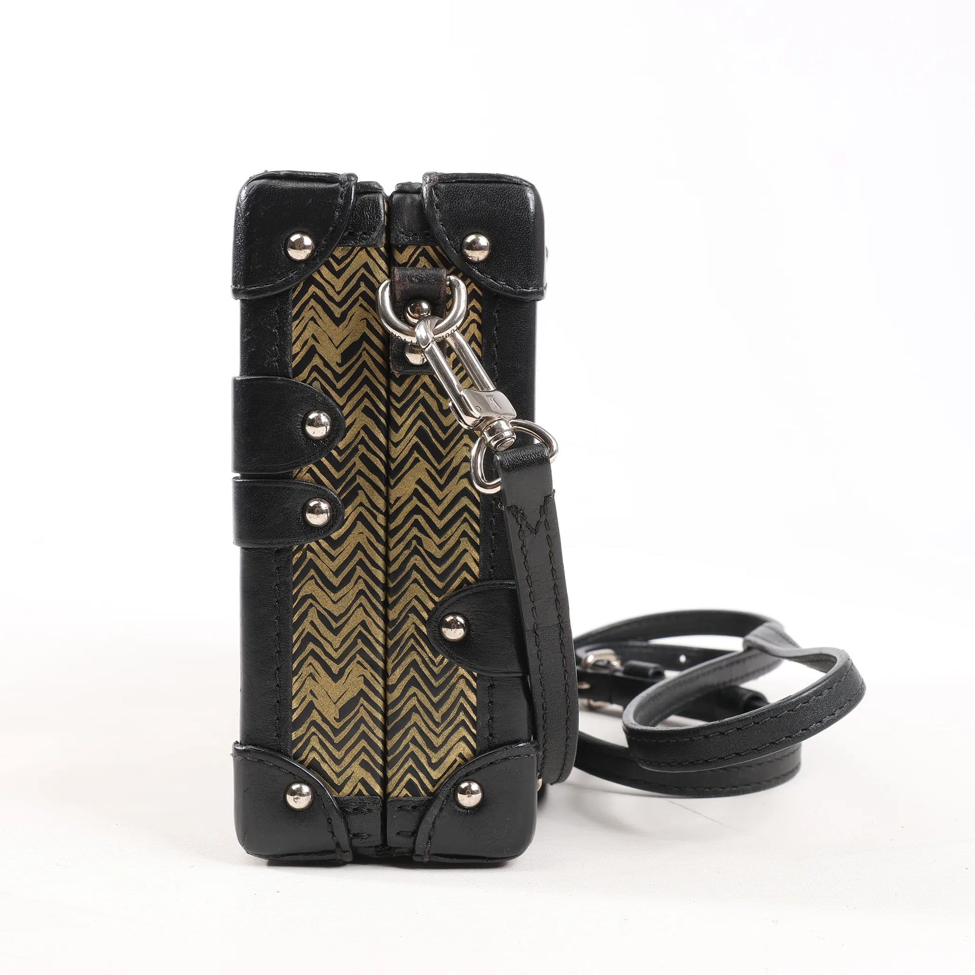 The Louis Vuitton Petite Malle in Gold and Black Epi Leather (M51928) channels the spirit of historic LV trunks into a bold, compact shoulder bag. Finished with chevron-textured Epi leather, silver-tone hardware, and trunk-inspired S-lock detailing, it's a statement piece for both day and night.