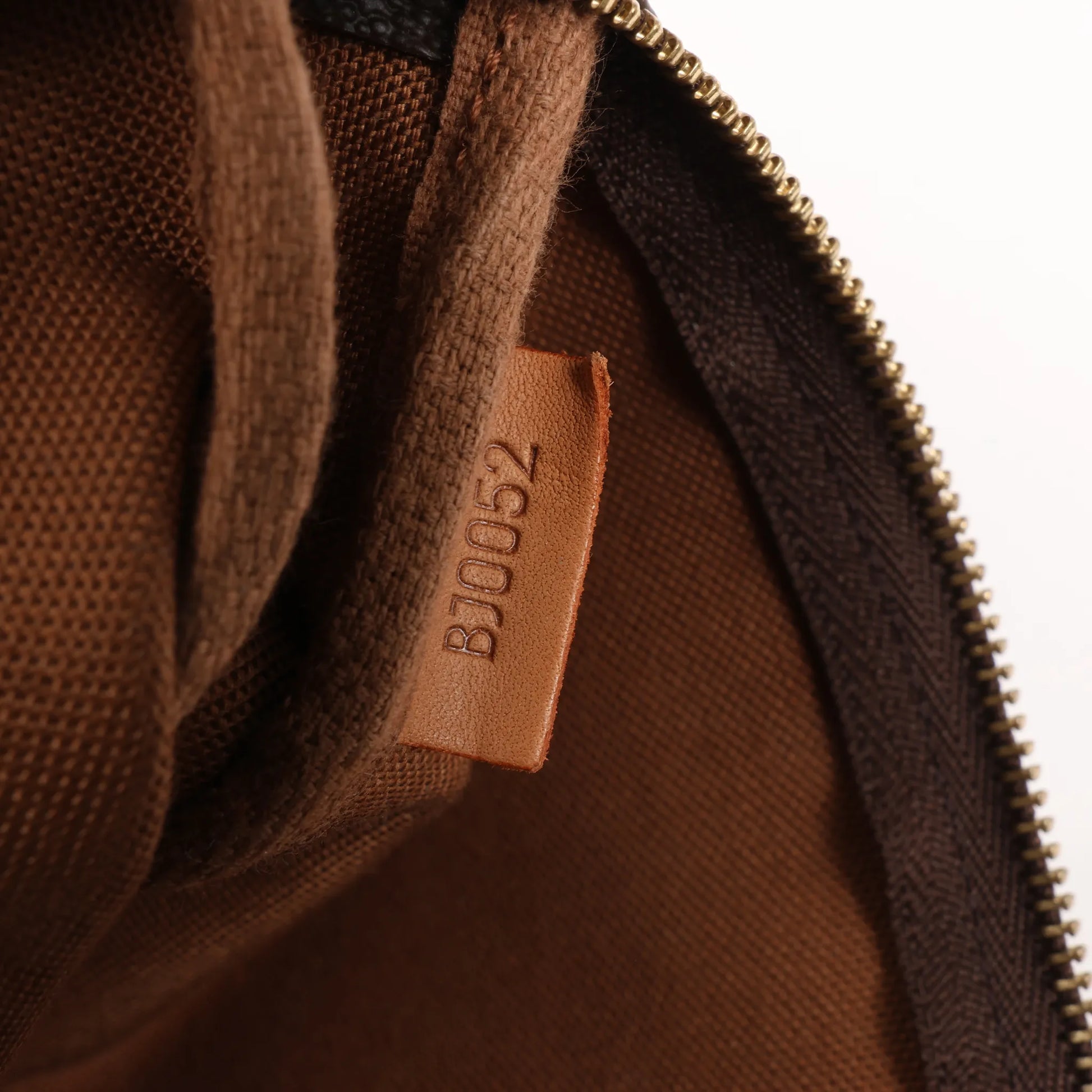 Condition Details: The outside canvas is clean and beautiful. The cowhide leather strap is in good condition, has developed dark honey patina. The hardware is bright and crisp, but has hairline scratches. The interior is in good condition. Date code: BJ0052.