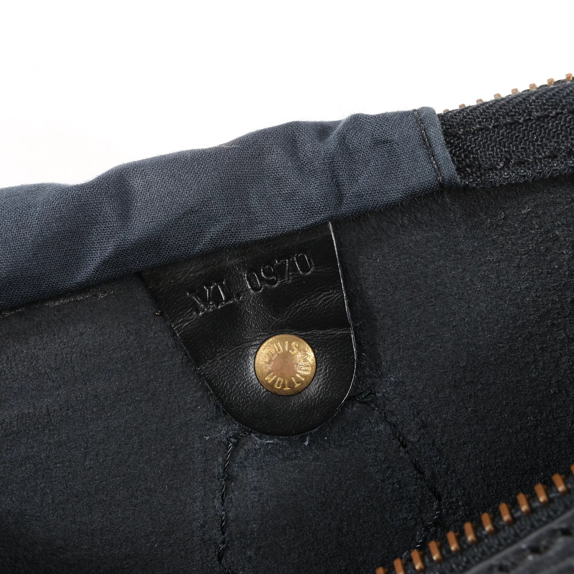 Condition Details: The exterior leather is clean and in good condition, with rubbings. The handles are clean, firm and in very good condition. The hardware has darkened and oxidized. The interior is in great condition. Date code: VI0970.