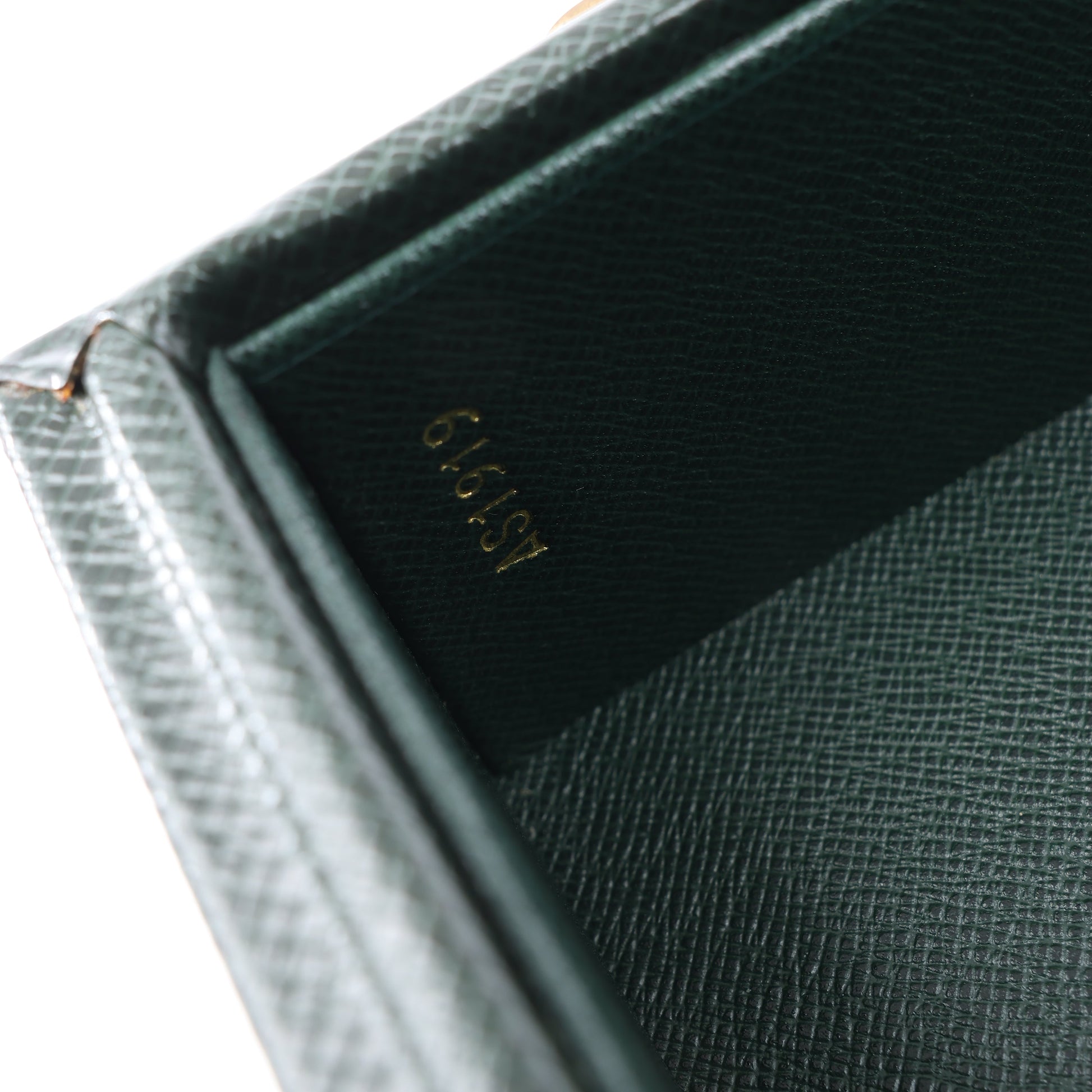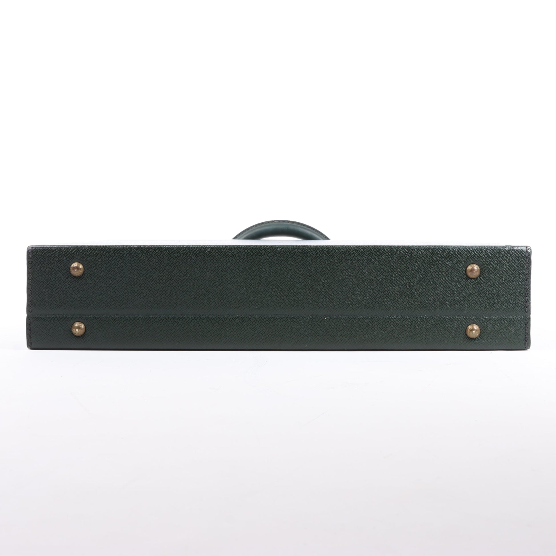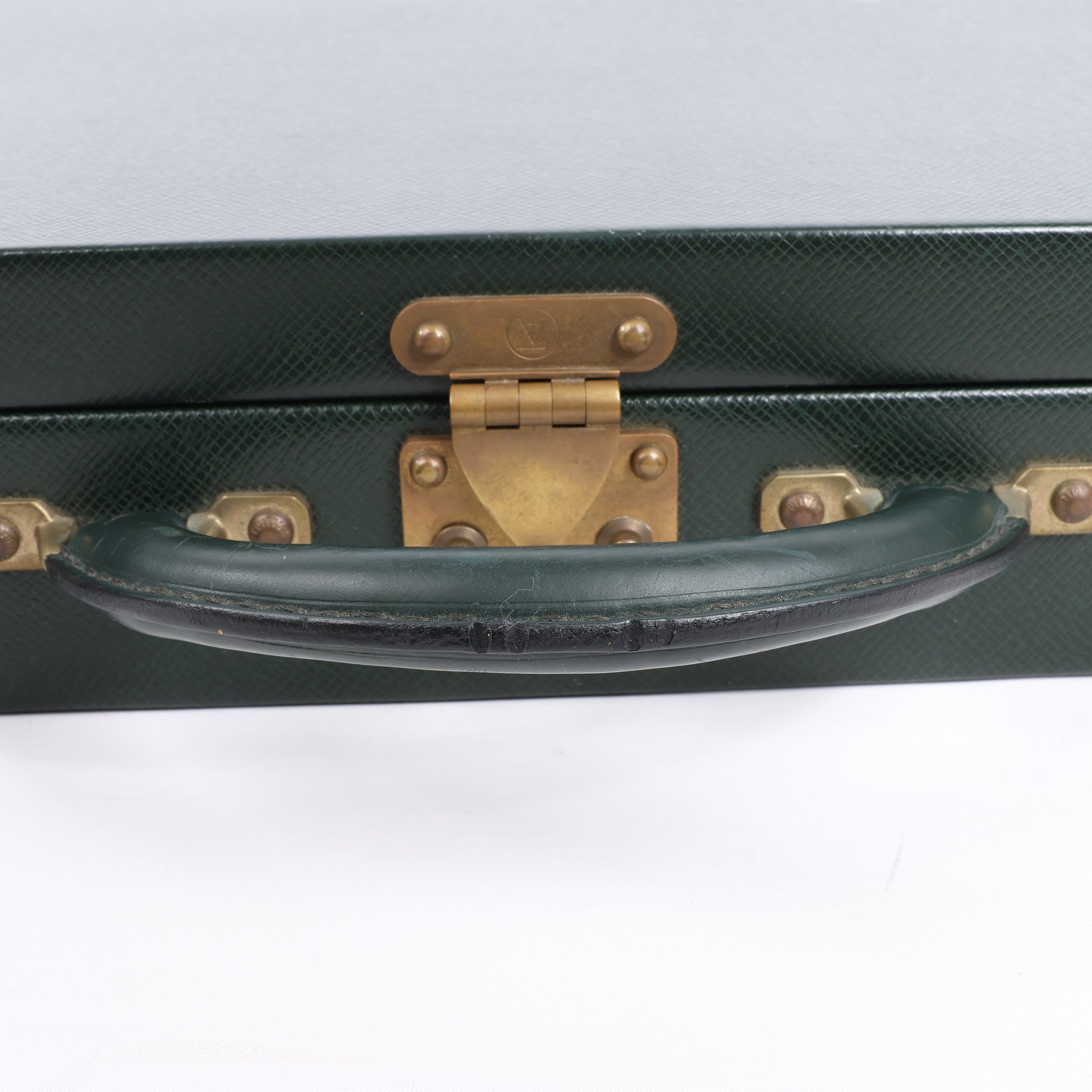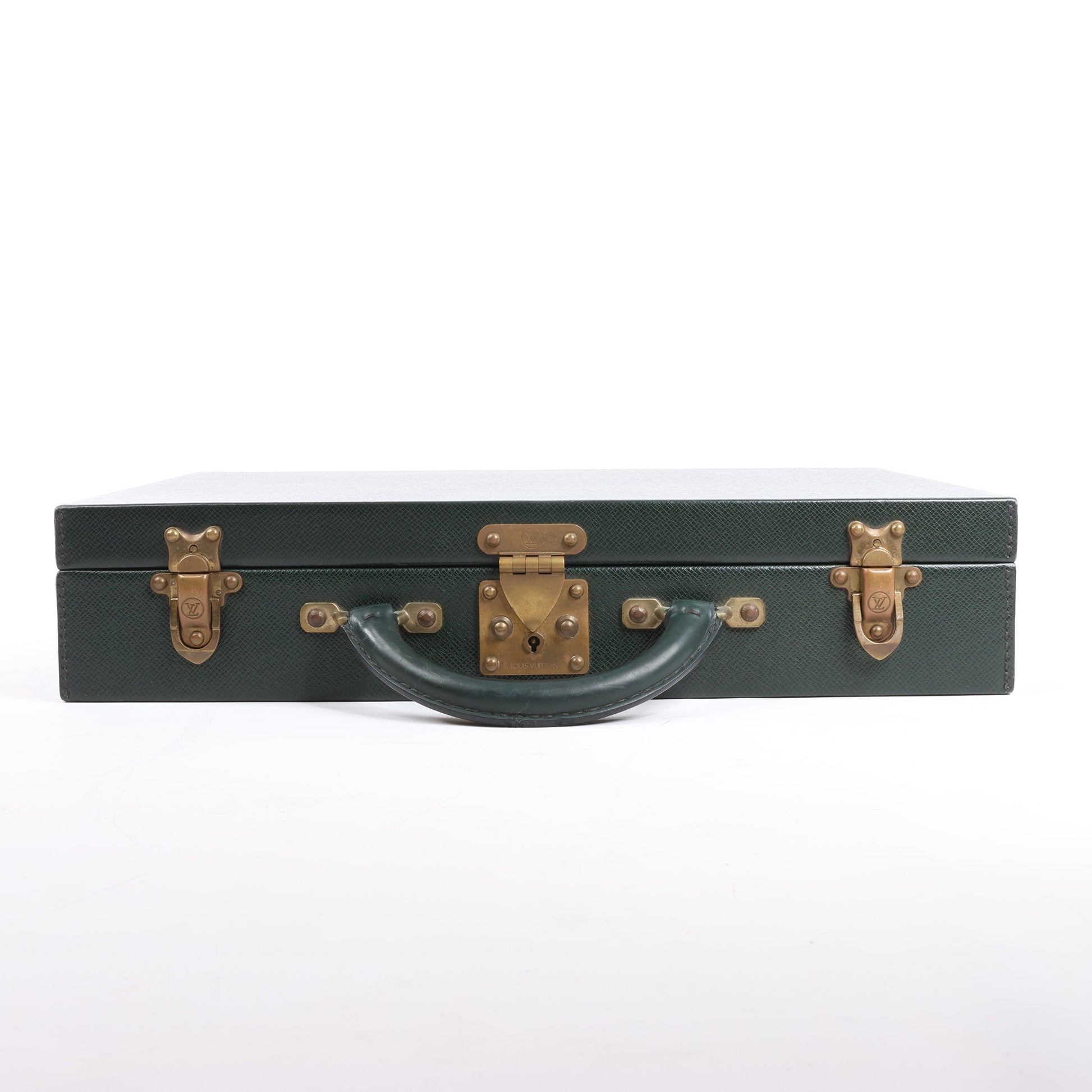 Louis Vuitton Taiga Diplomat in deep green leather, model M30014. A sleek, structured travel case crafted for sophistication and utility with top handle and secure lock closure. Ideal for business or elegant travel.
