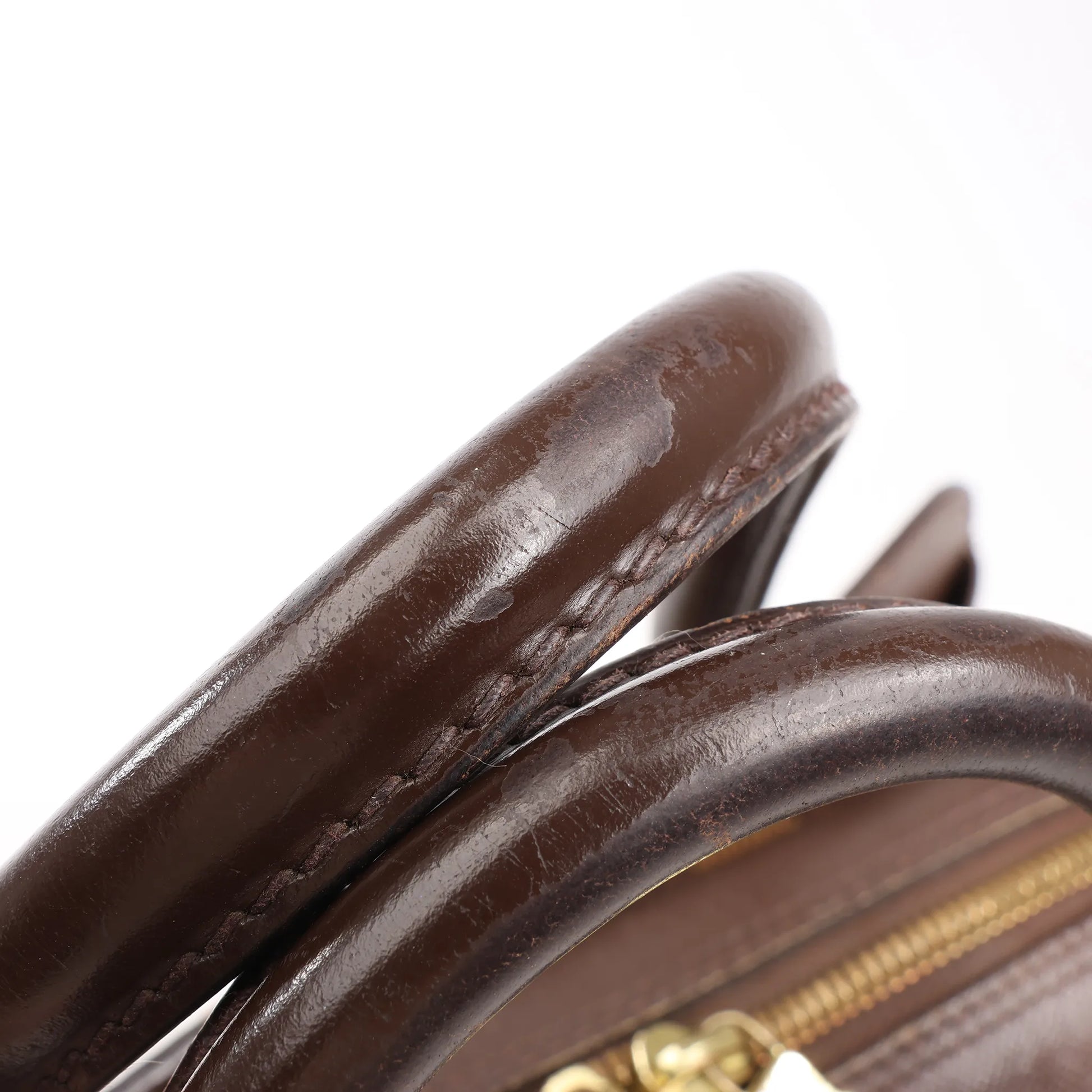 Condition Details: The exterior coated canvas is clean and in very good condition. The leather handles and trim are in great condition, but has handles has usage rubbings. The hardware is bright, but has scratches. The interior is in good condition. Date code: VI0043.