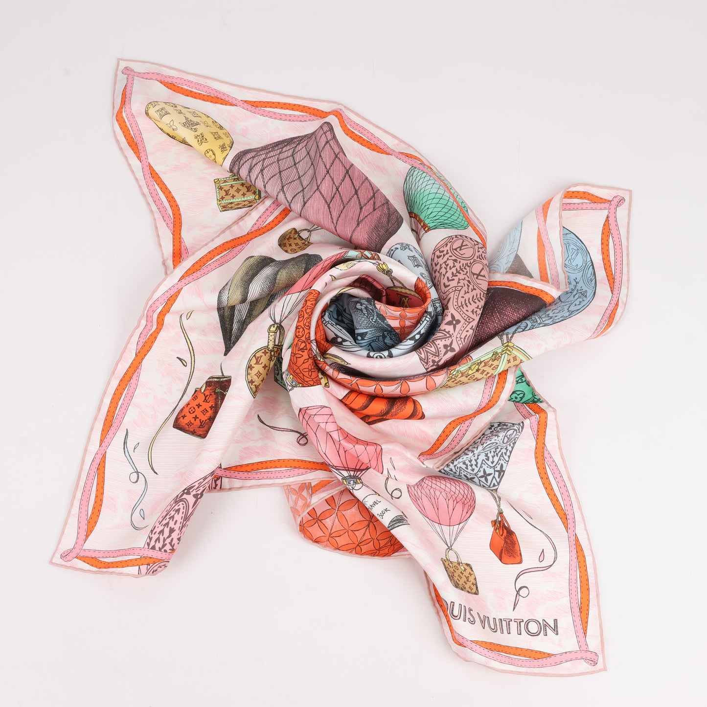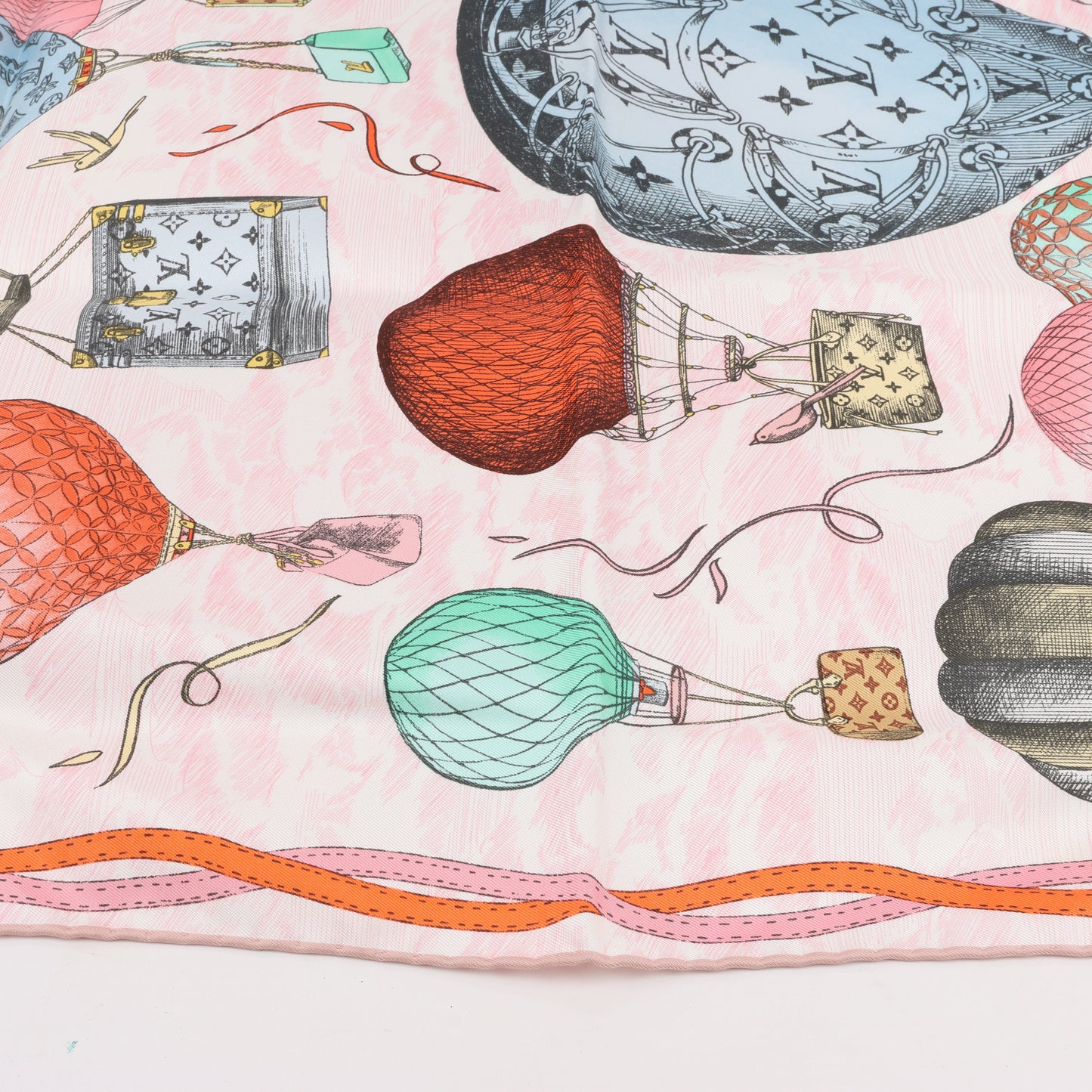 Louis Vuitton "up AND away" M77661 100% Silk Scarf in Pink GM1213