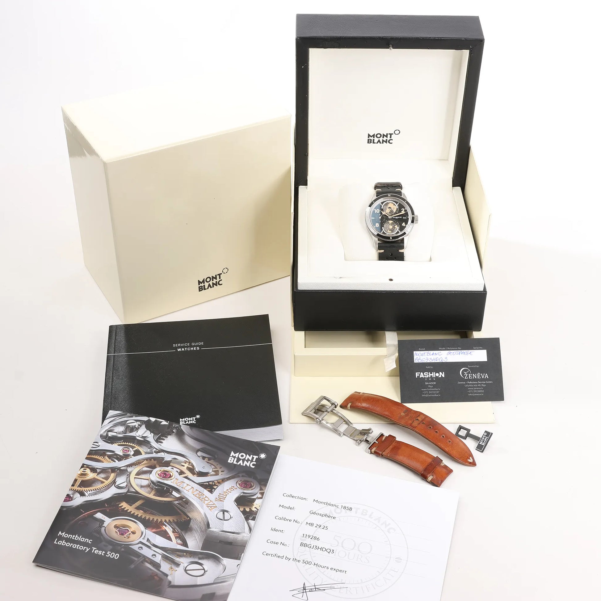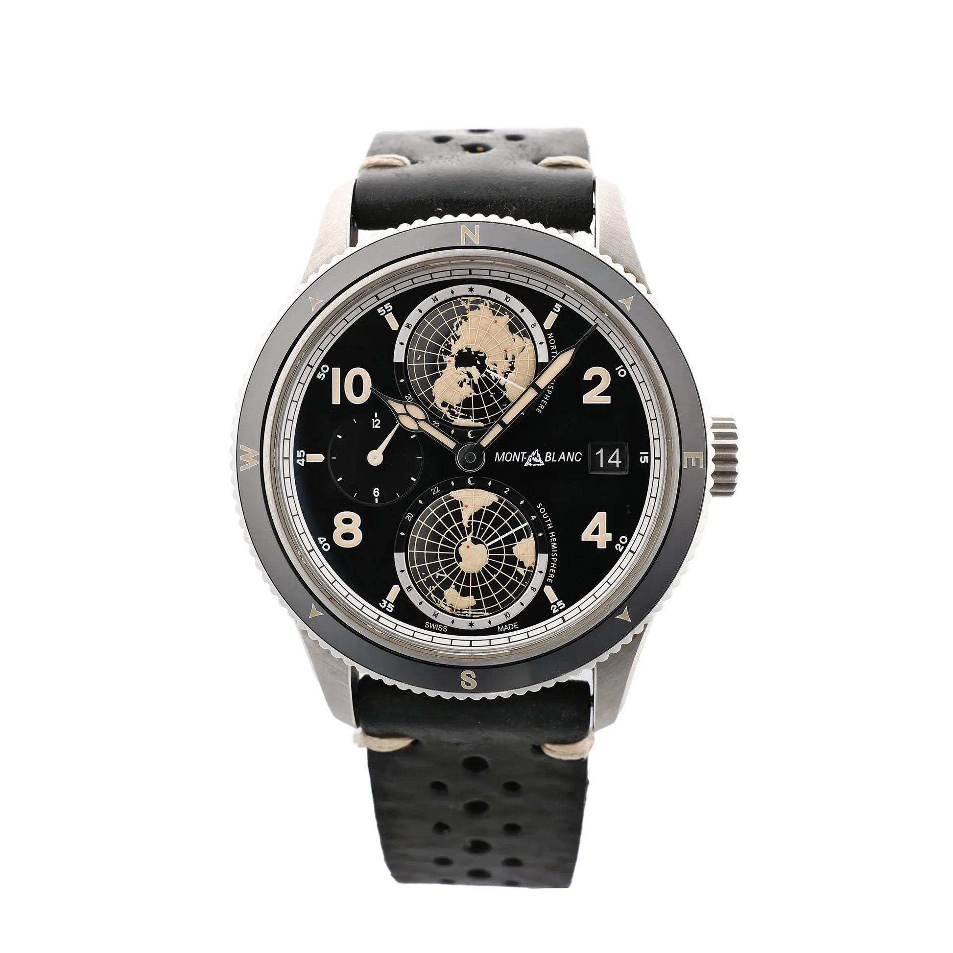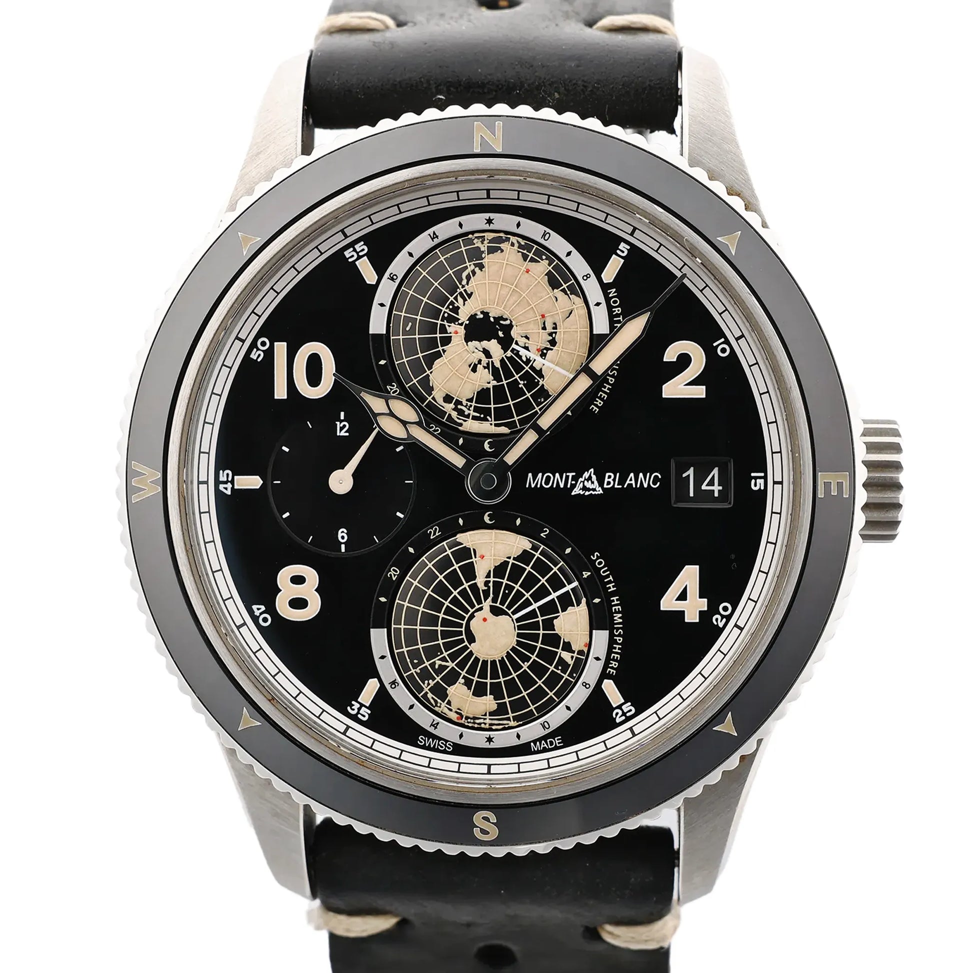 Montblanc Geosphere 119286 BBGJ3HDQ3 SS x Leather AT Watch with Black Dial