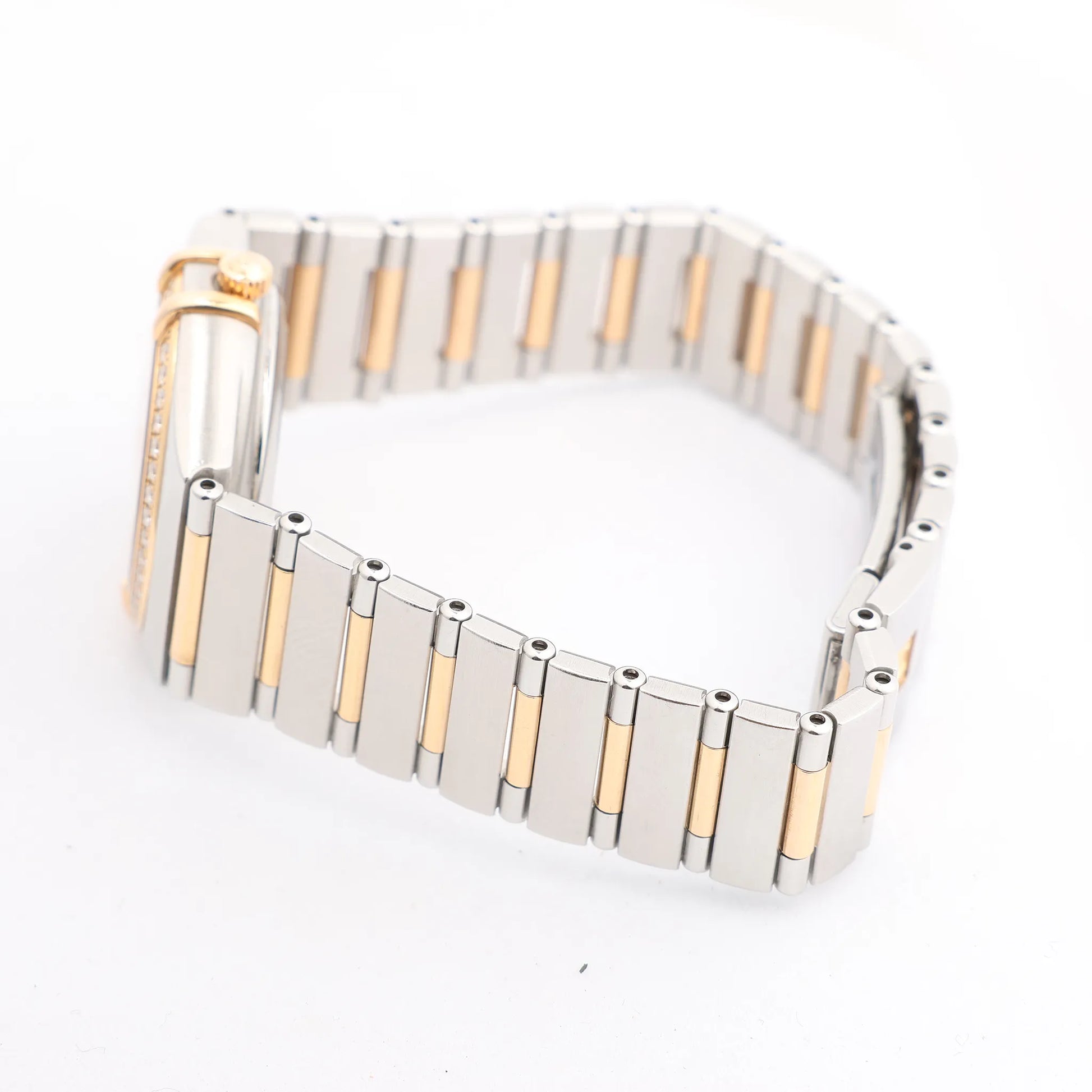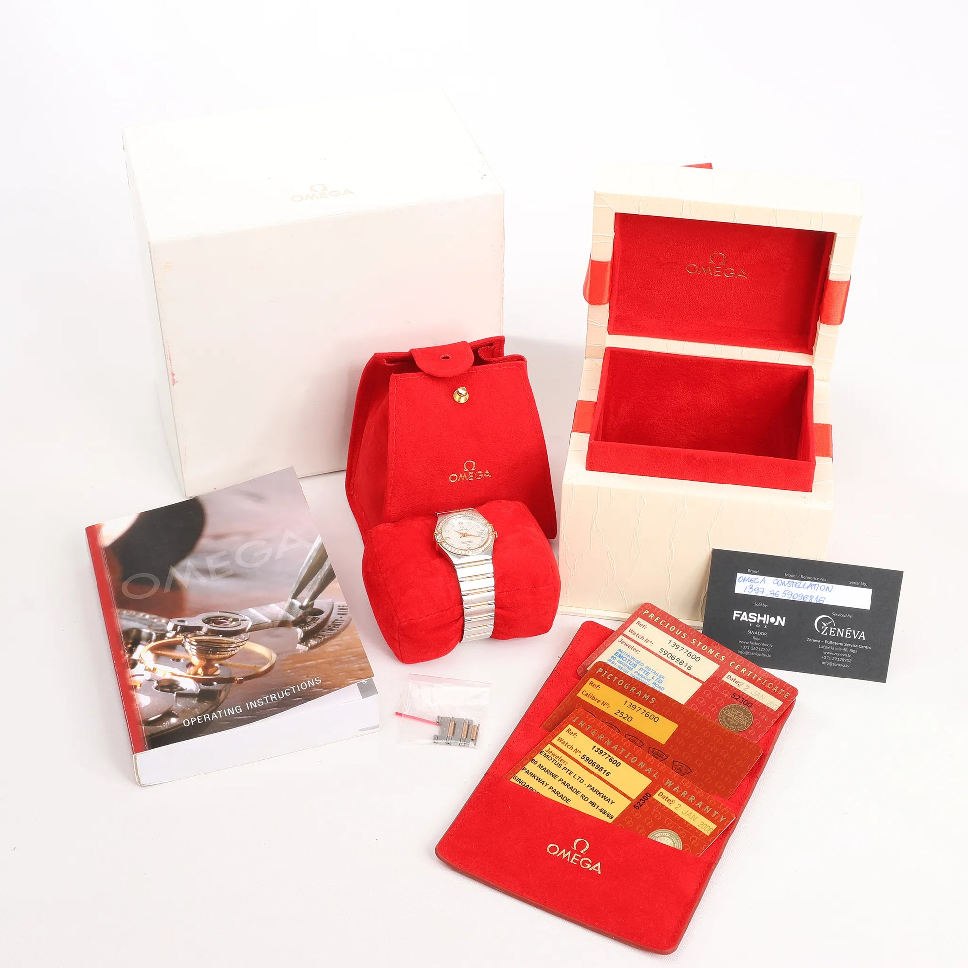 Omega Constellation 1397.76 blends stainless steel and yellow gold in an automatic design, featuring a luxurious shell dial with diamond markers and a diamond-set bezel for timeless elegance.