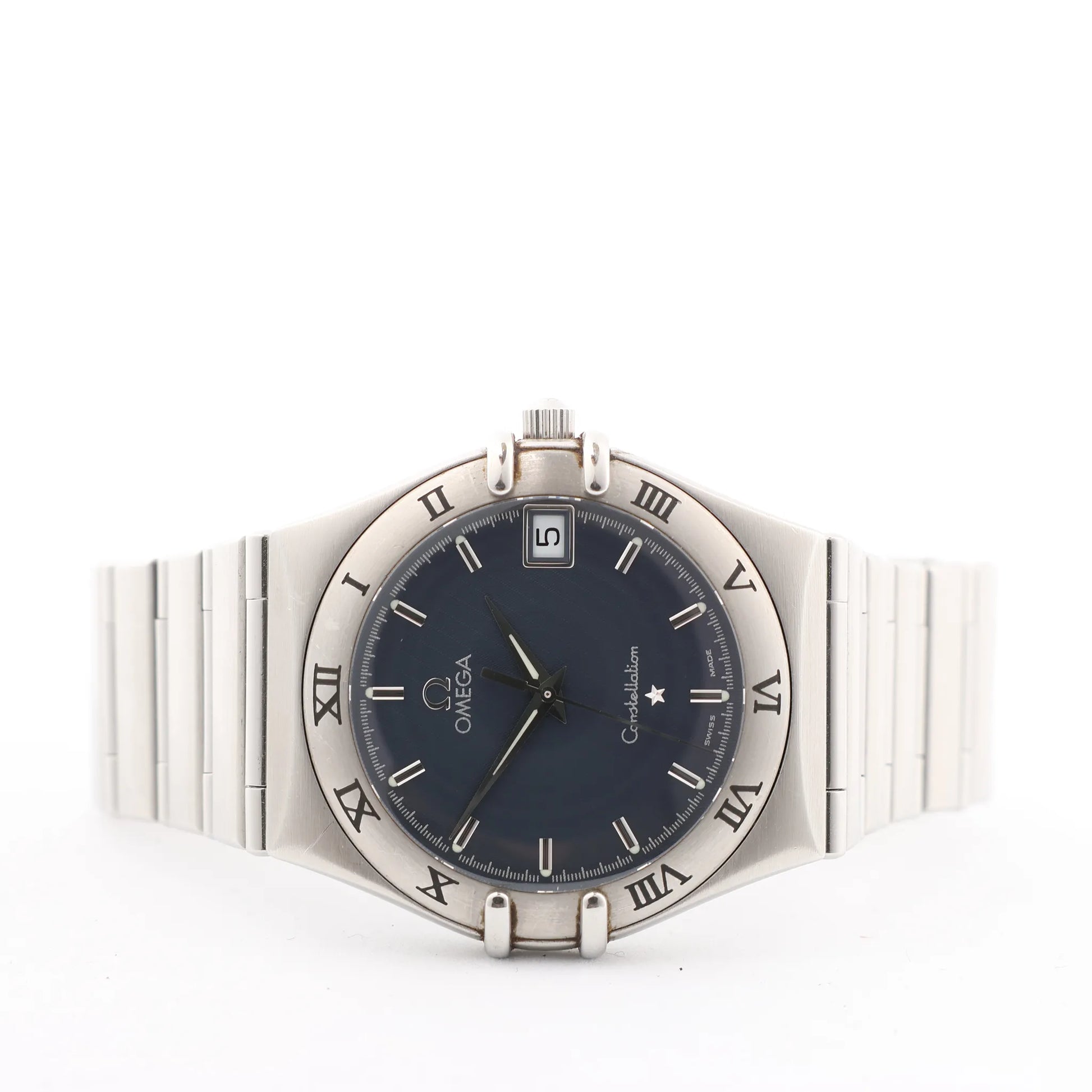 The Omega Constellation 1512.40 is a classic stainless steel quartz watch featuring a sleek gray dial, Roman numeral bezel, and date display. Precision and prestige meet in this timeless Swiss-made model, ref. 58341032.