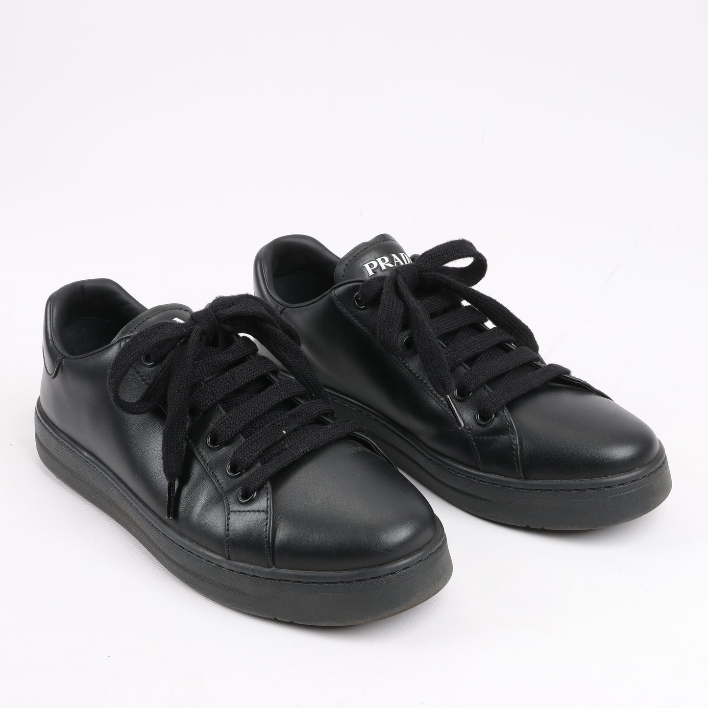 PRADA Logo Leather Sneakers in Black × White 1E282N, Size 37.5 EU