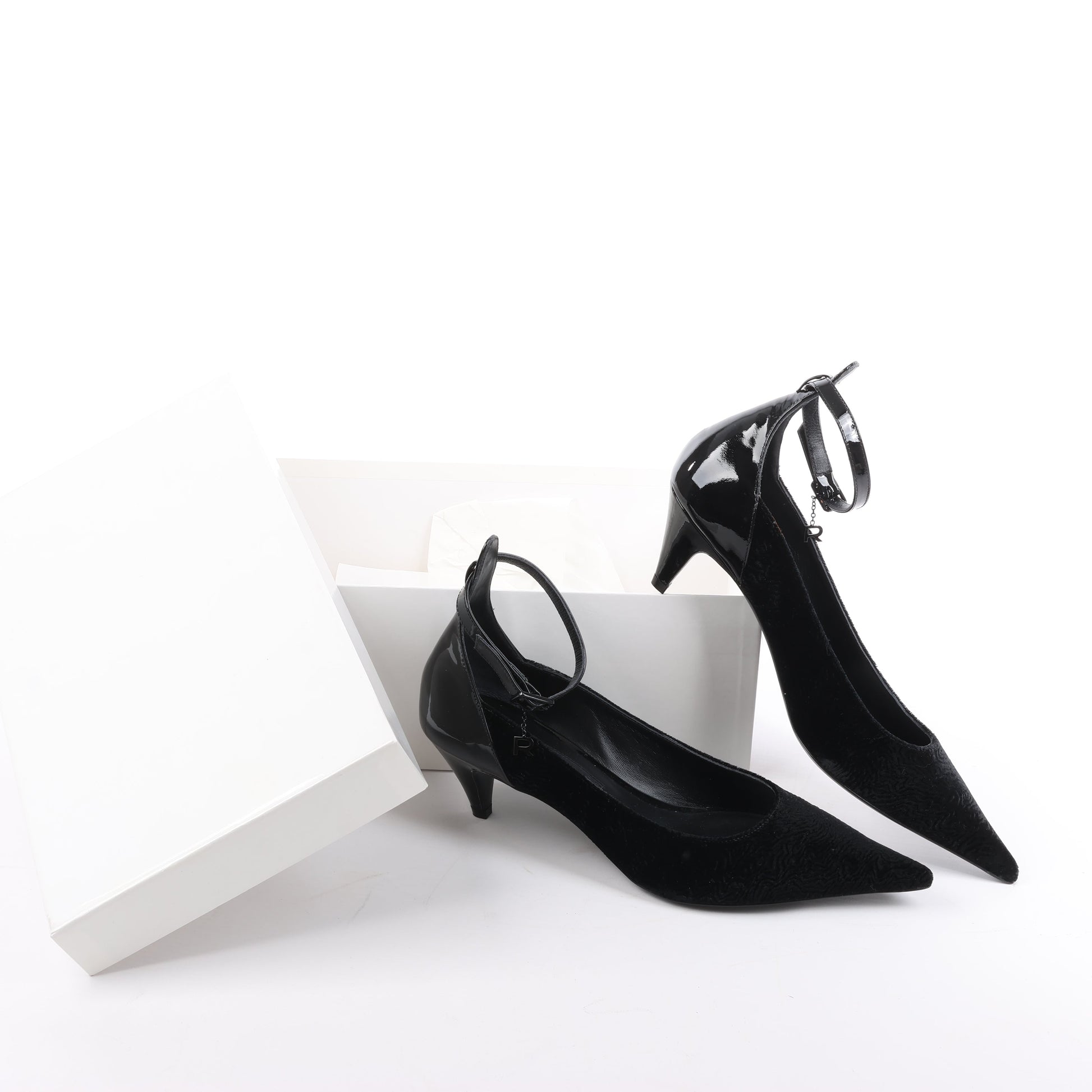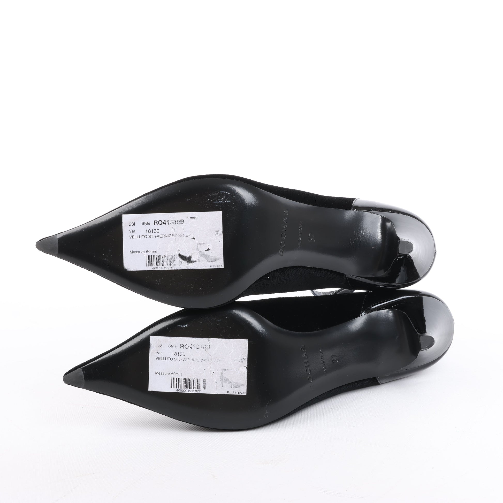 ROCHAS Velvet and Patent Leather Pumps in Black, Size 37 EU