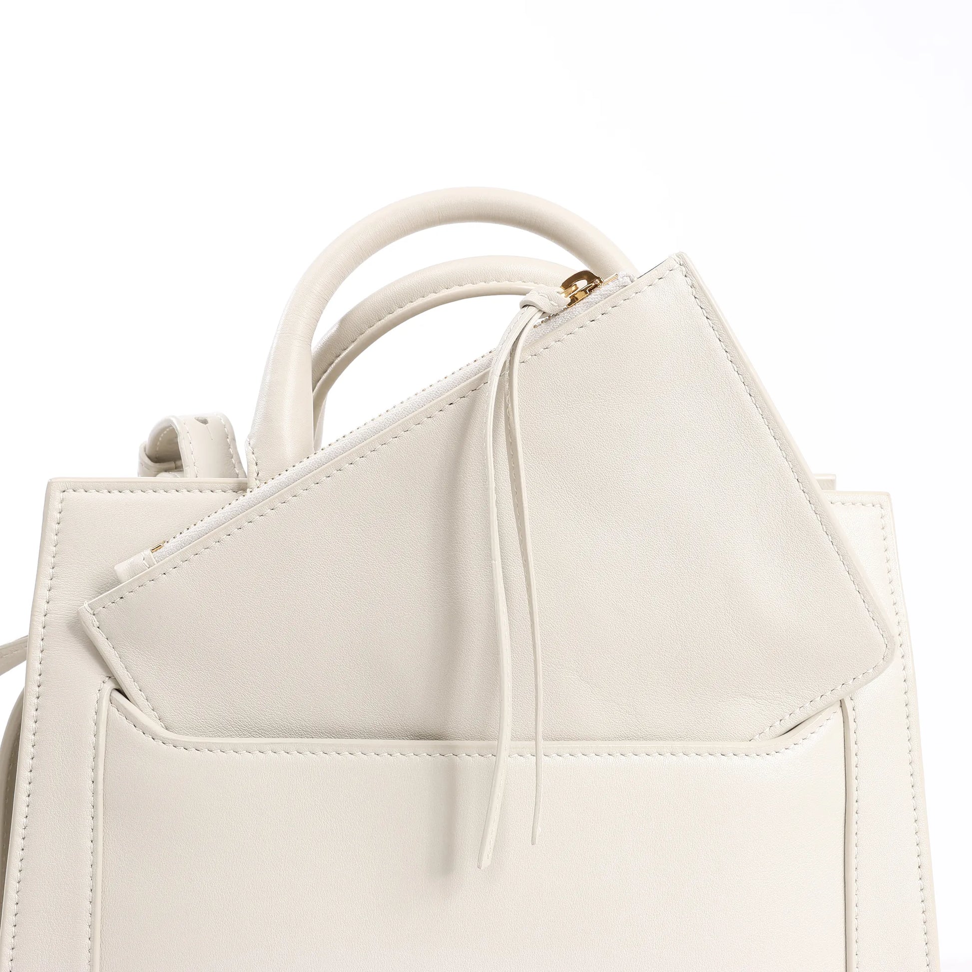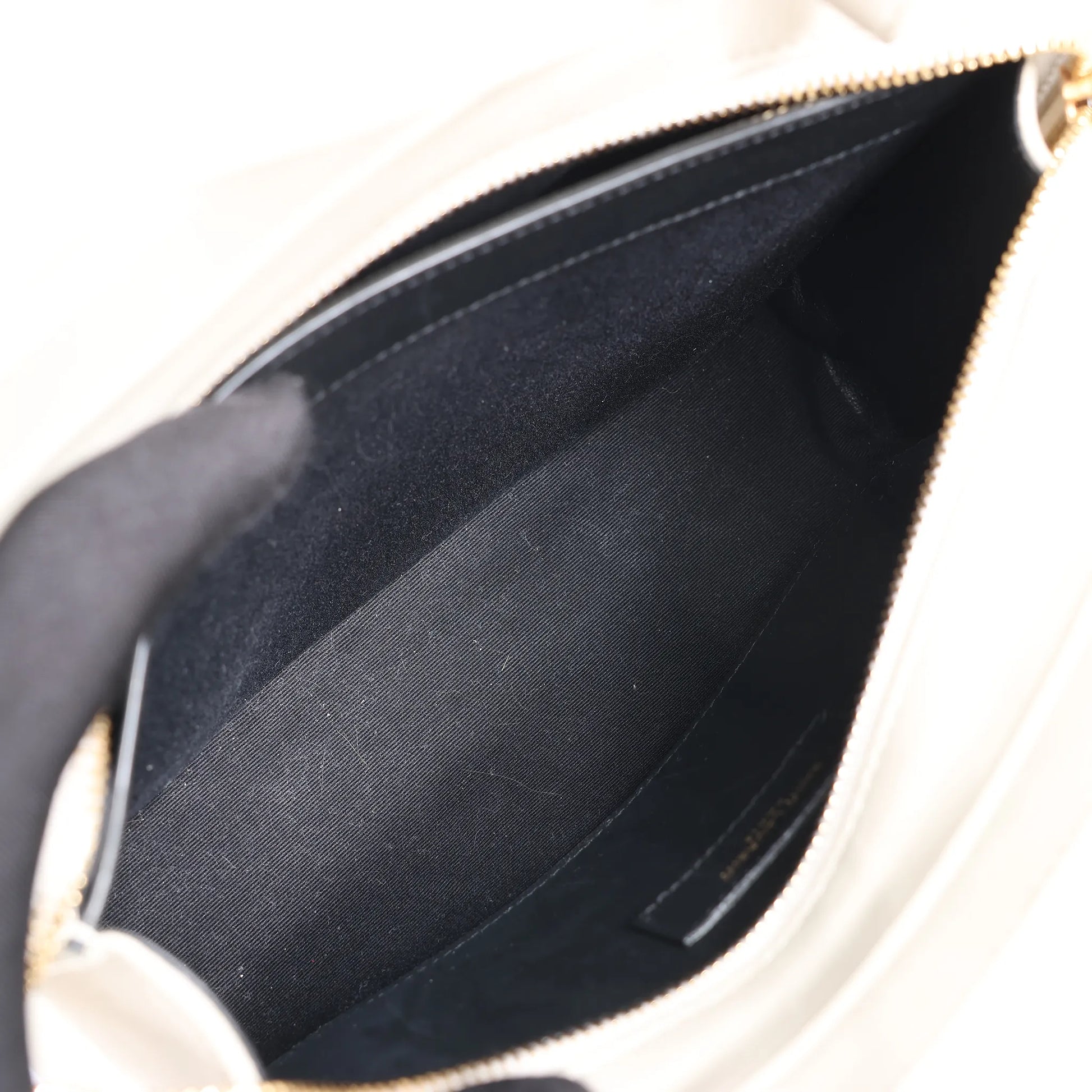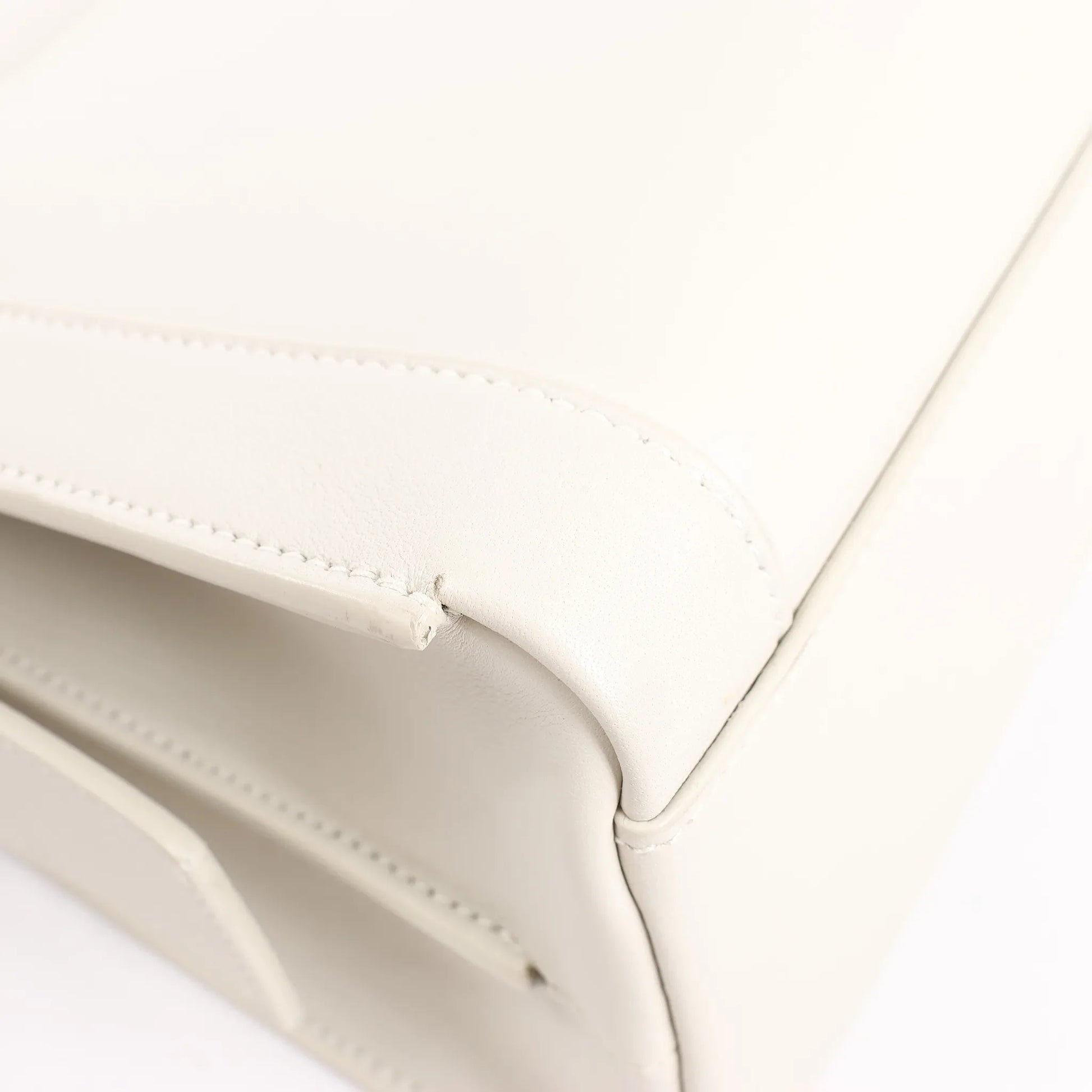 The Saint Laurent Paris Eastside Handbag 554116 in Ecru offers refined elegance with everyday practicality. Crafted from smooth leather, this structured silhouette features top handles, a front zip pocket, and gold-tone hardware—perfect for modern sophistication.