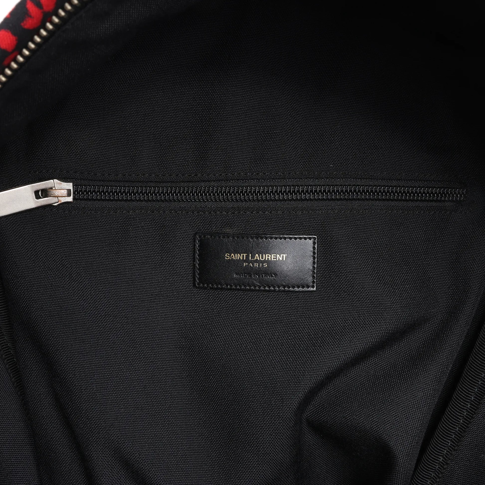 Saint Laurent Paris Leopard Hunting Canvas x Leather Backpack in Red x Black 326865