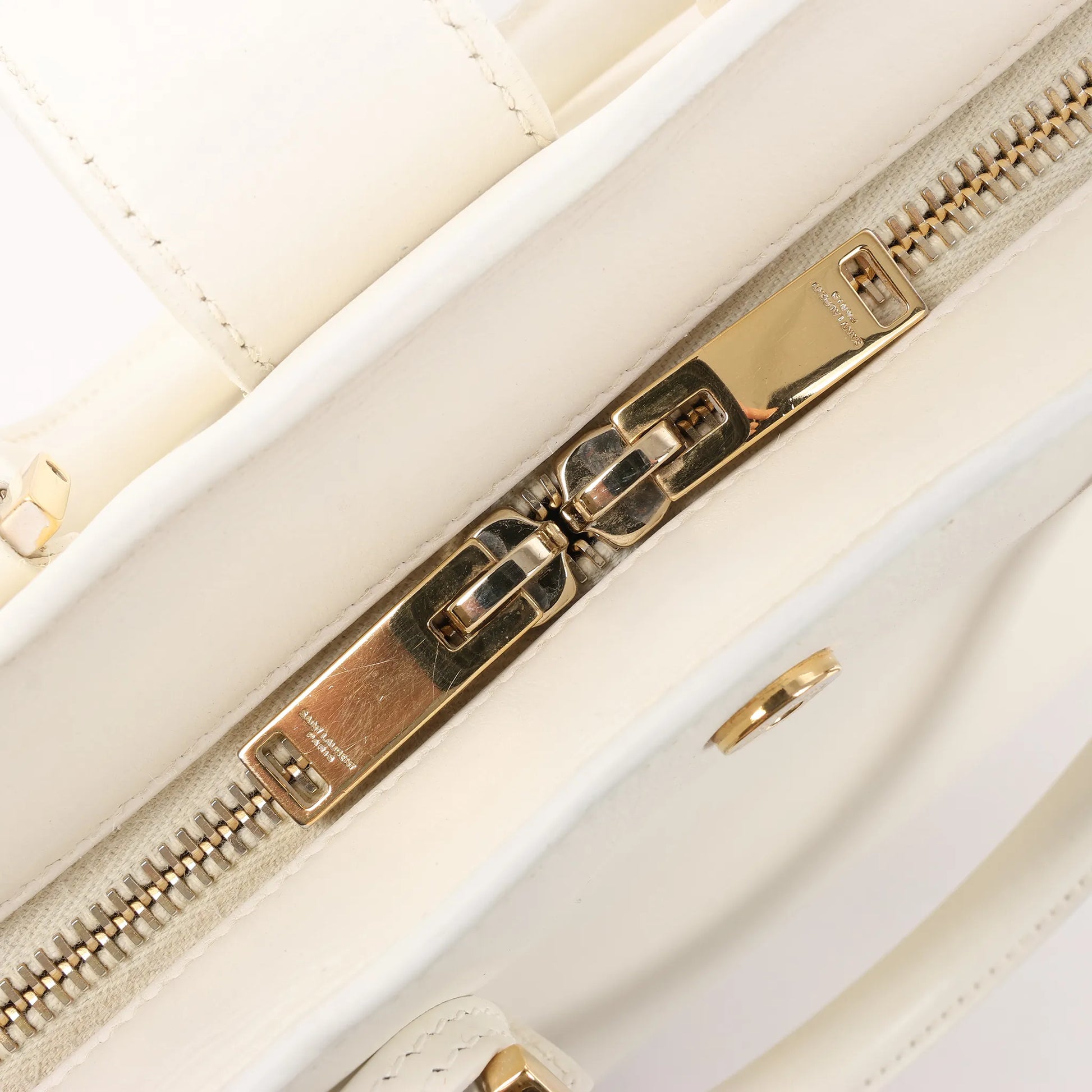 Saint Laurent Paris Monogram Cabas Leather 2Way Handbag in White 472466