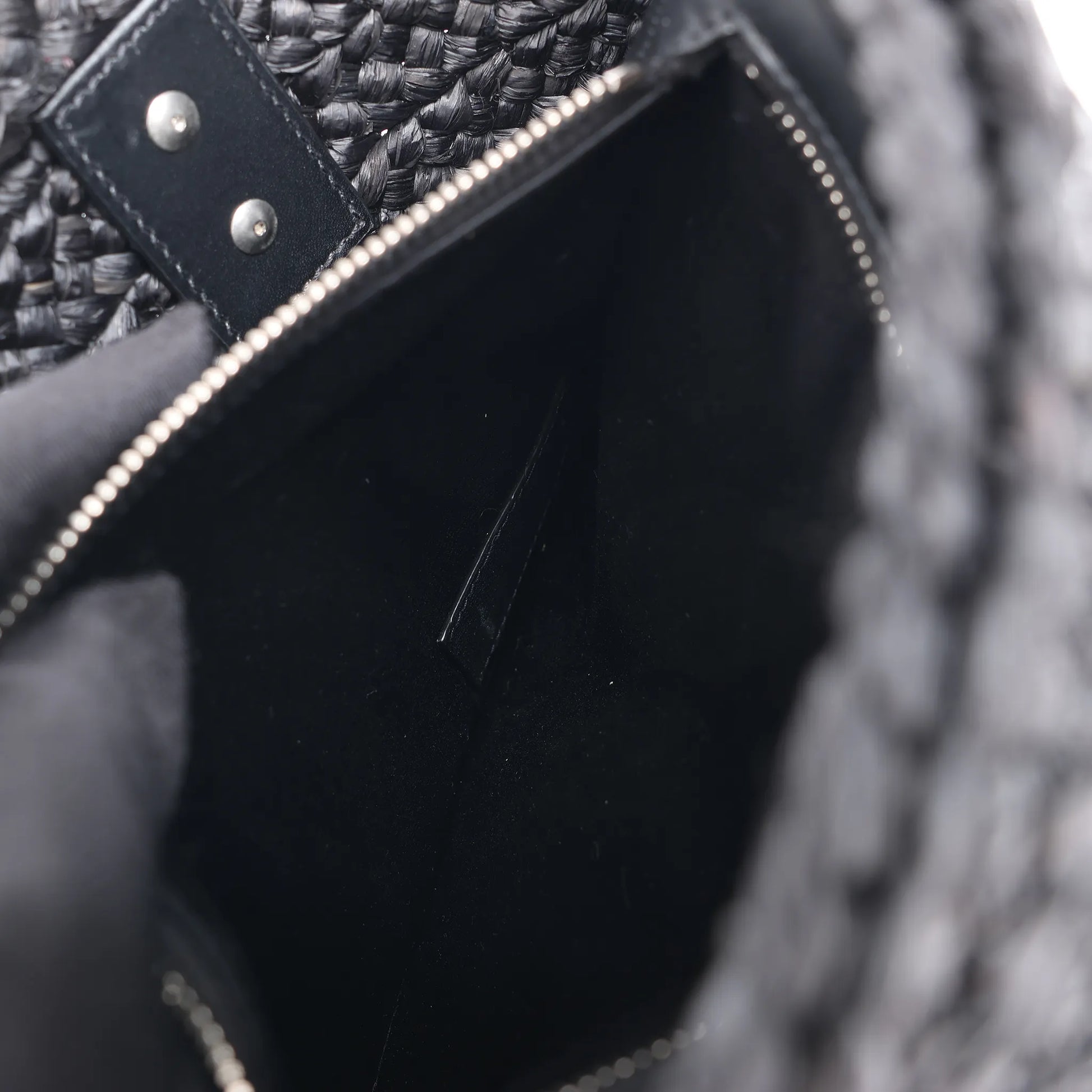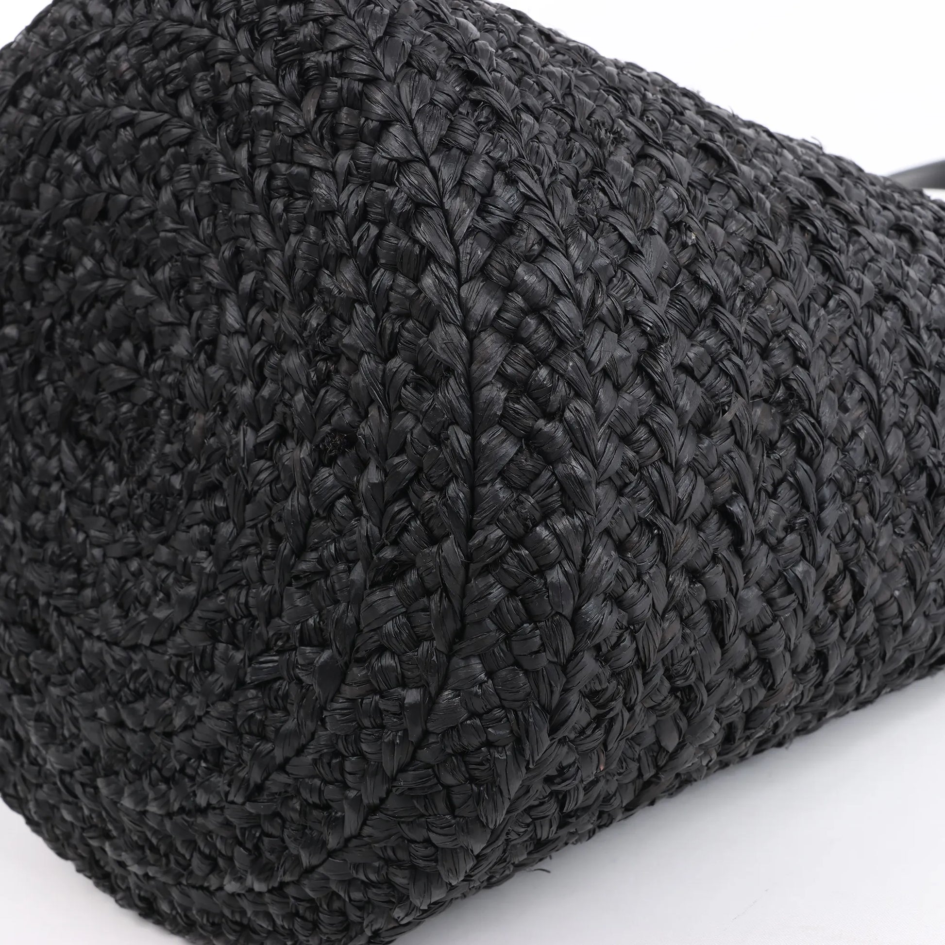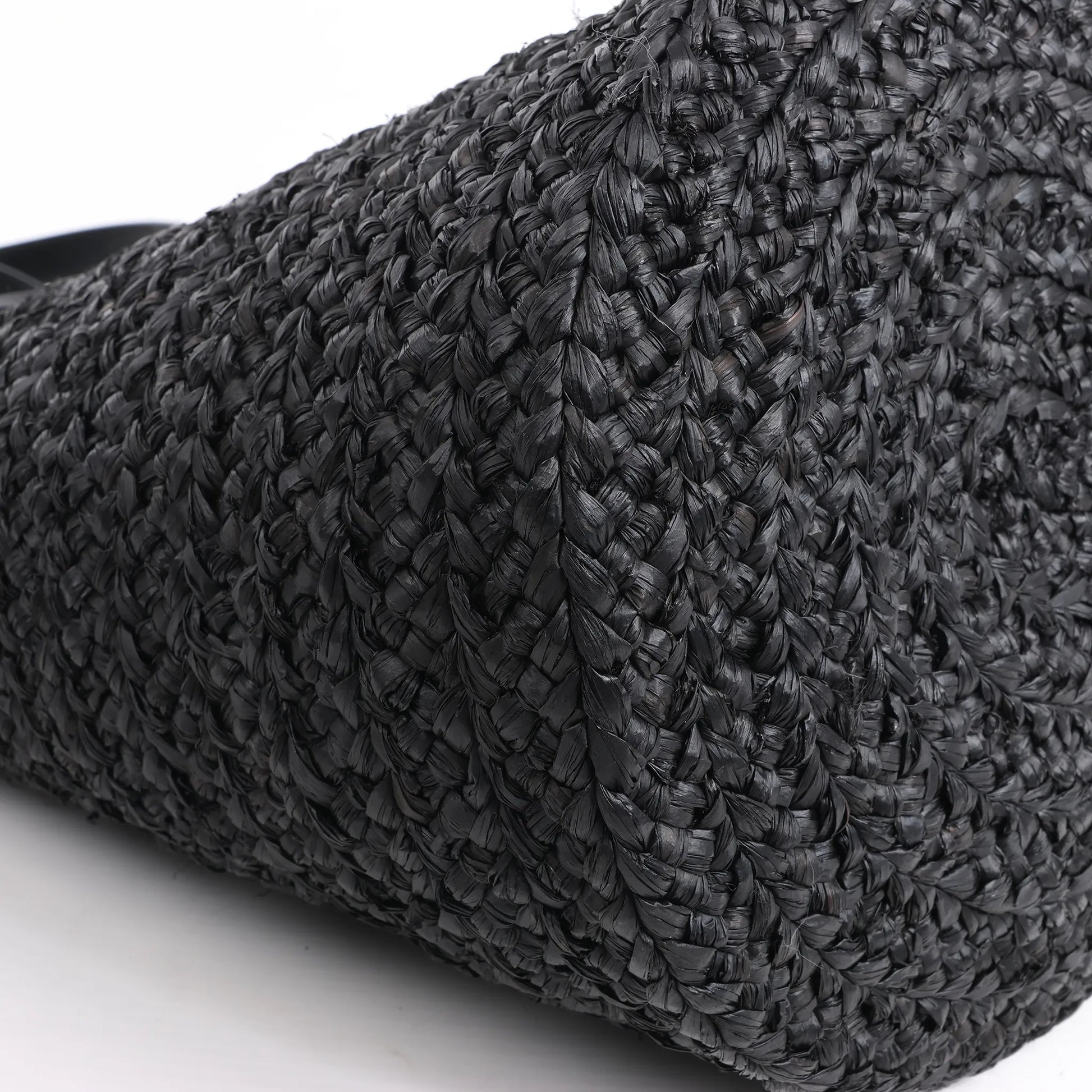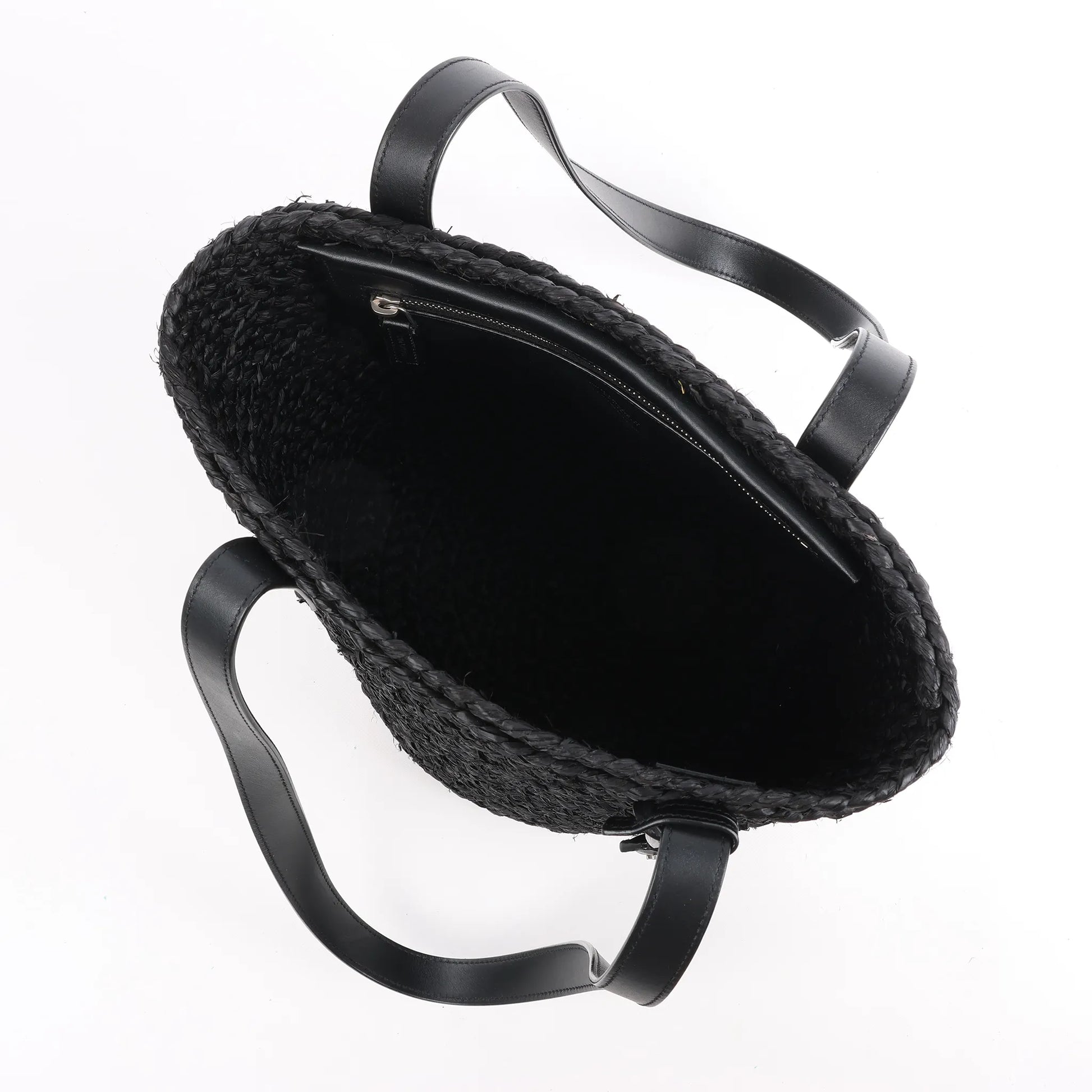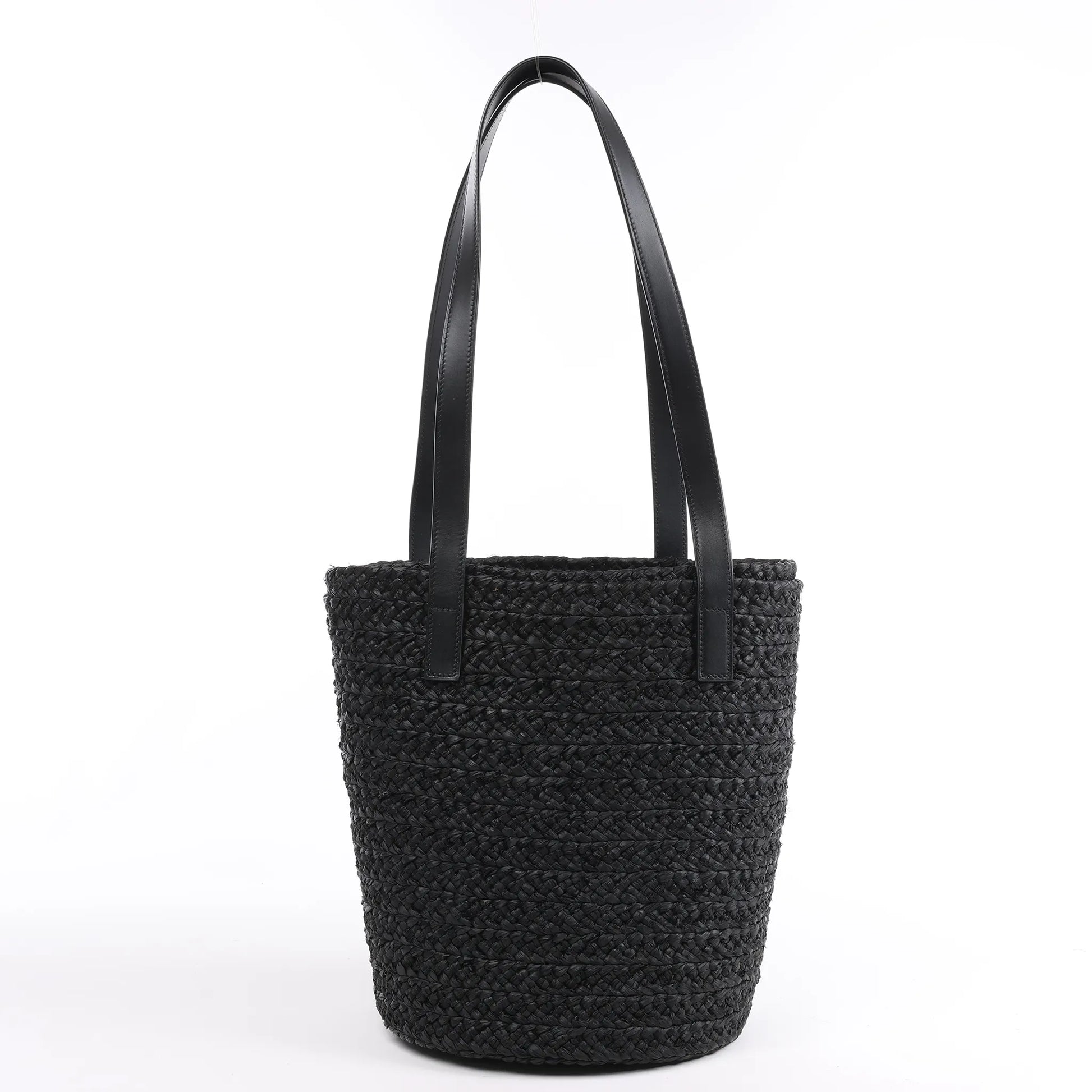 Saint Laurent Paris Panier Small Raffia x Leather Shoulder Bag in Black 693240