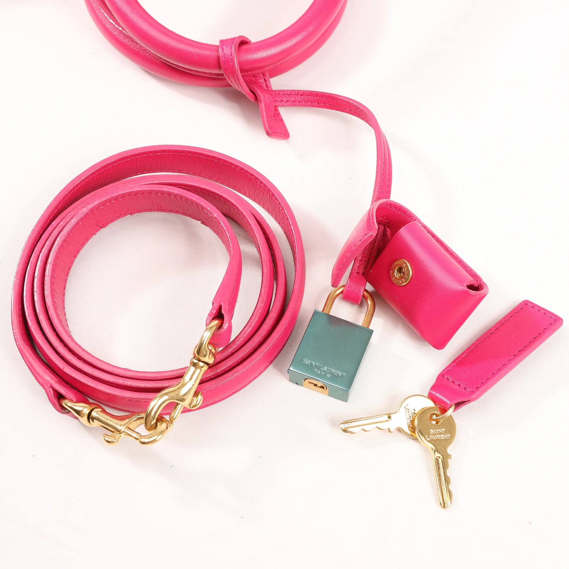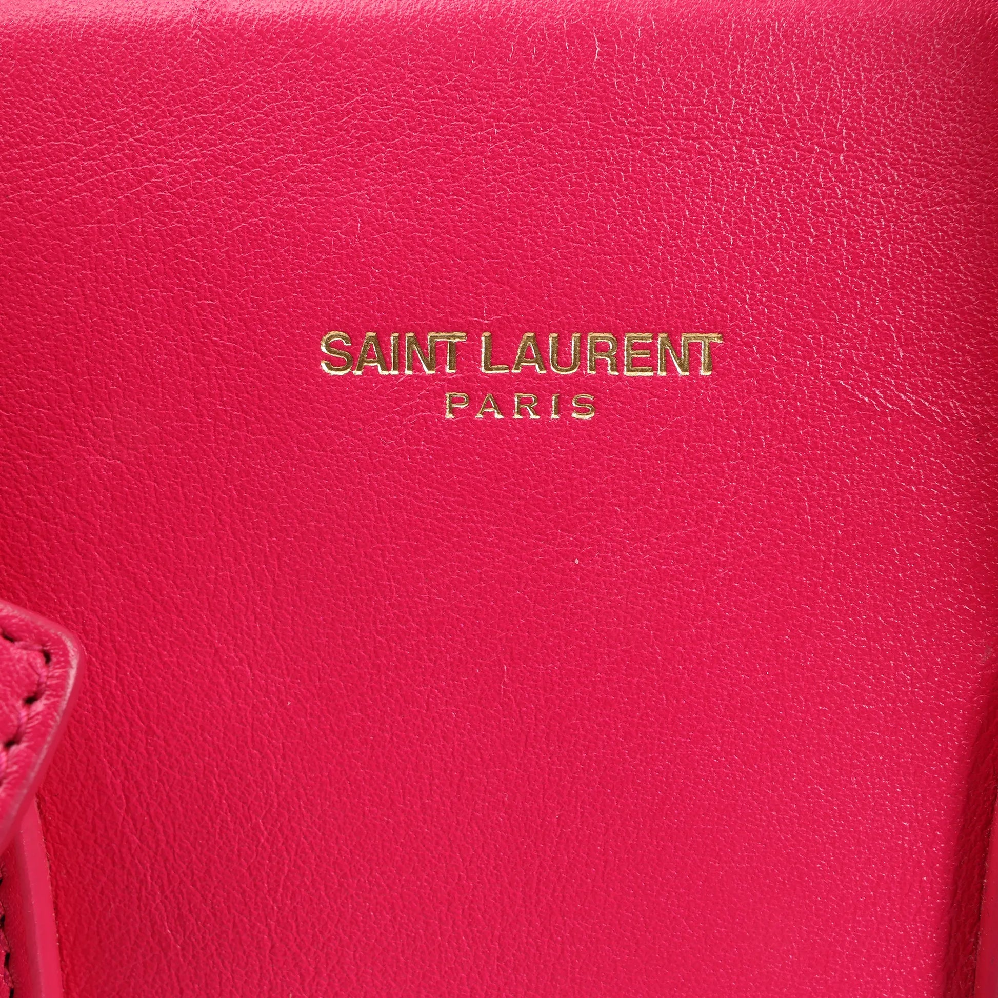 Saint Laurent Paris Sac de Jour handbag in vibrant pink leather (355153) features a structured silhouette, dual top handles, and detachable strap. A bold yet timeless 2-way design for elevated everyday style.