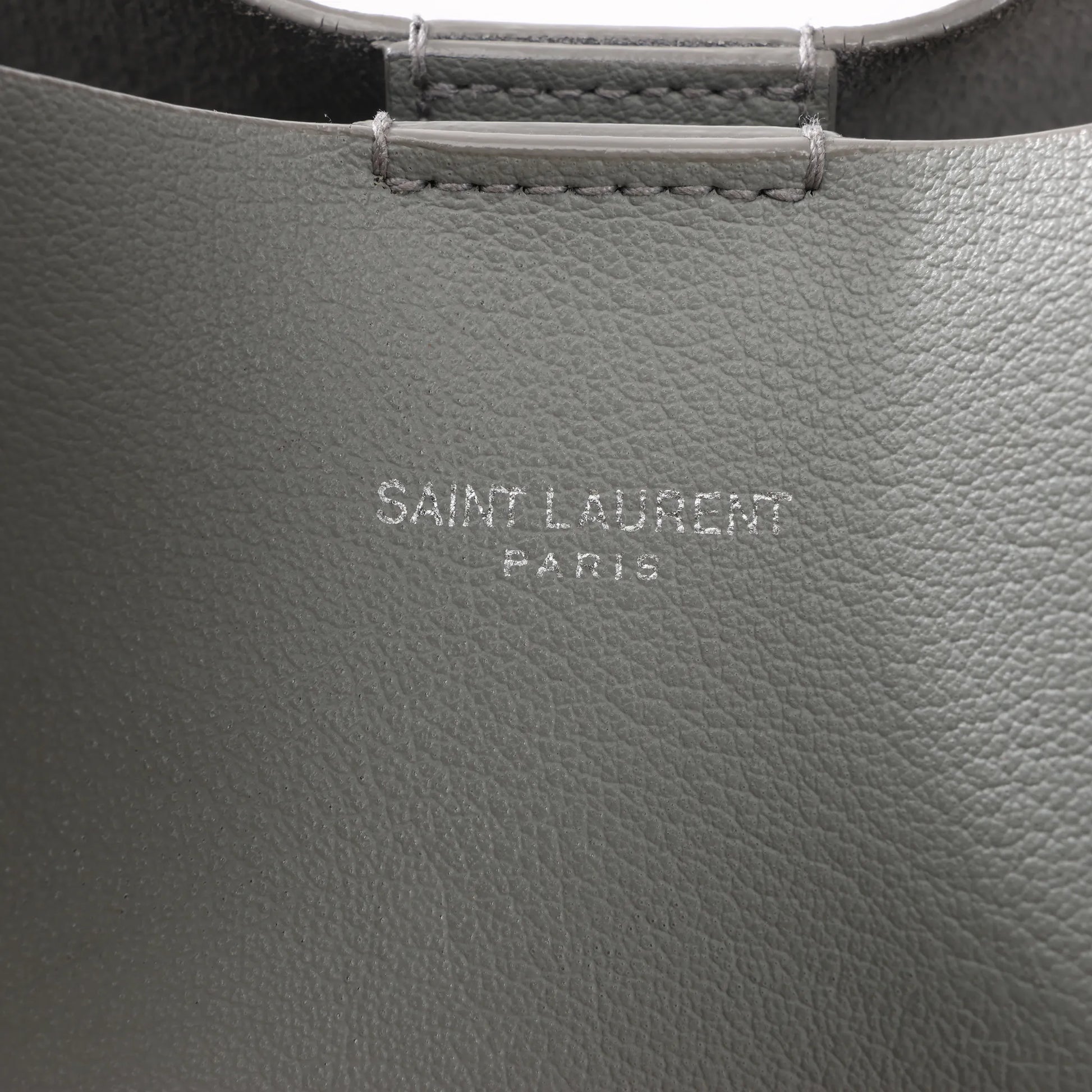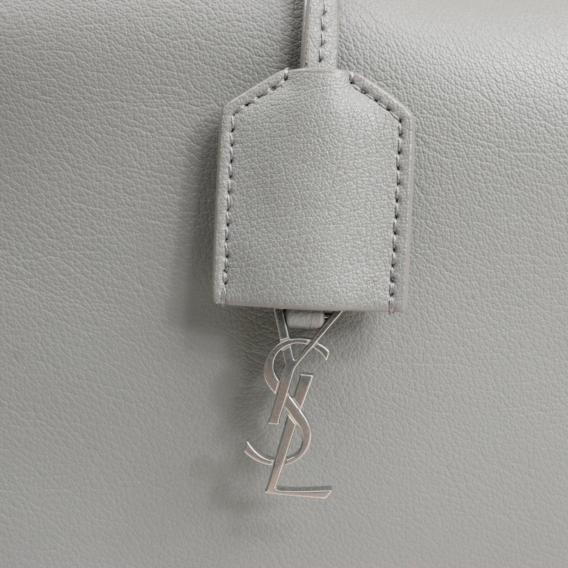 The Saint Laurent Shopping Tote 600281 in gray leather offers minimalist sophistication with a spacious interior, slim handles, and detachable pouch—perfect for everyday elegance.