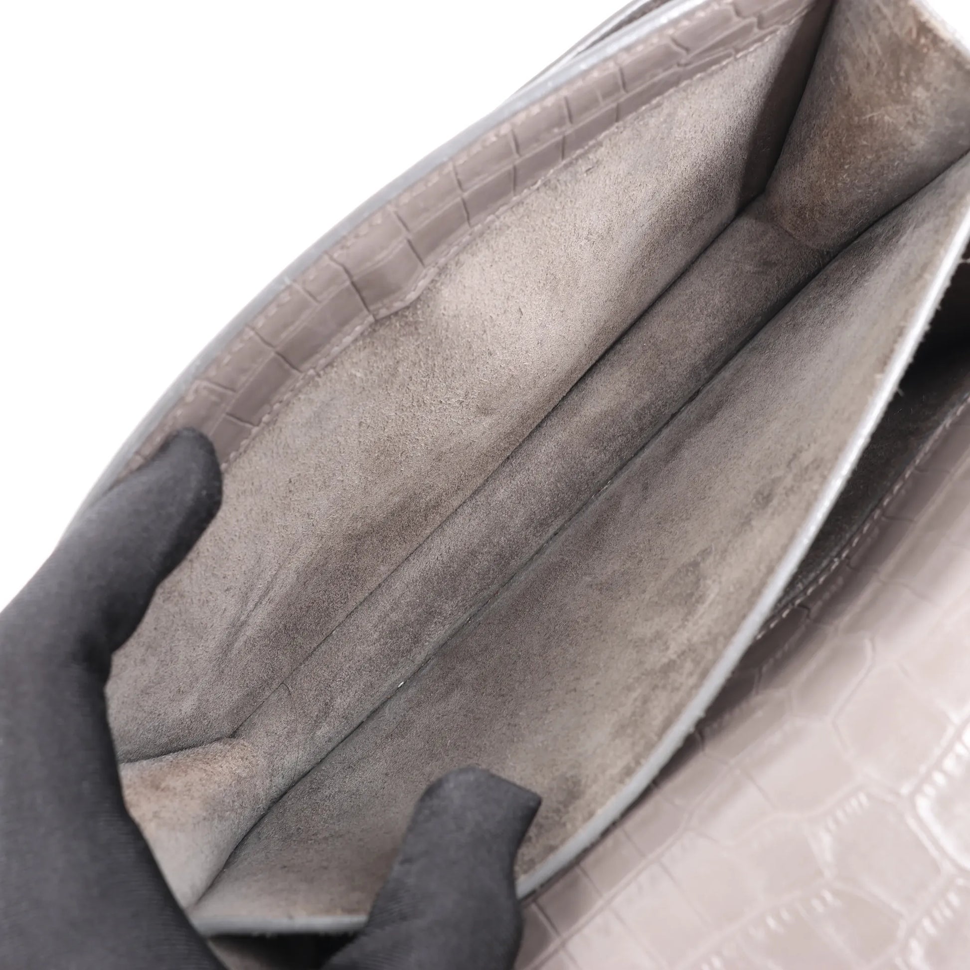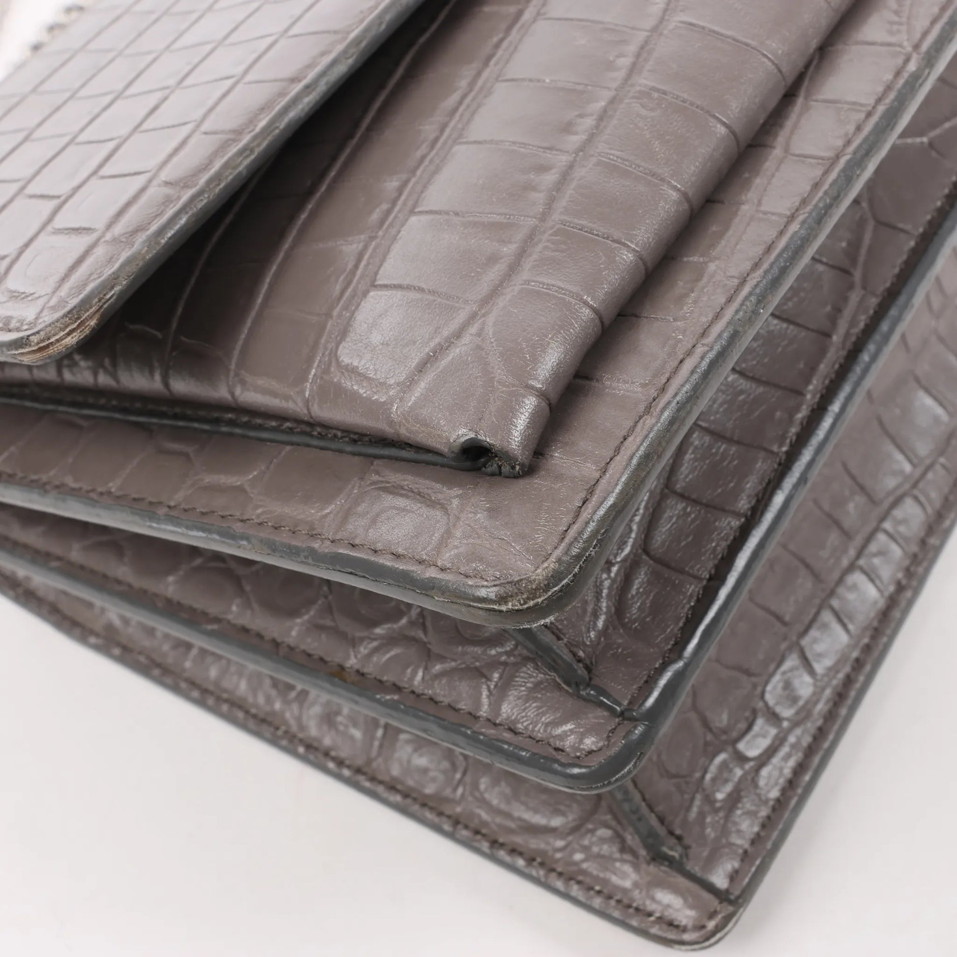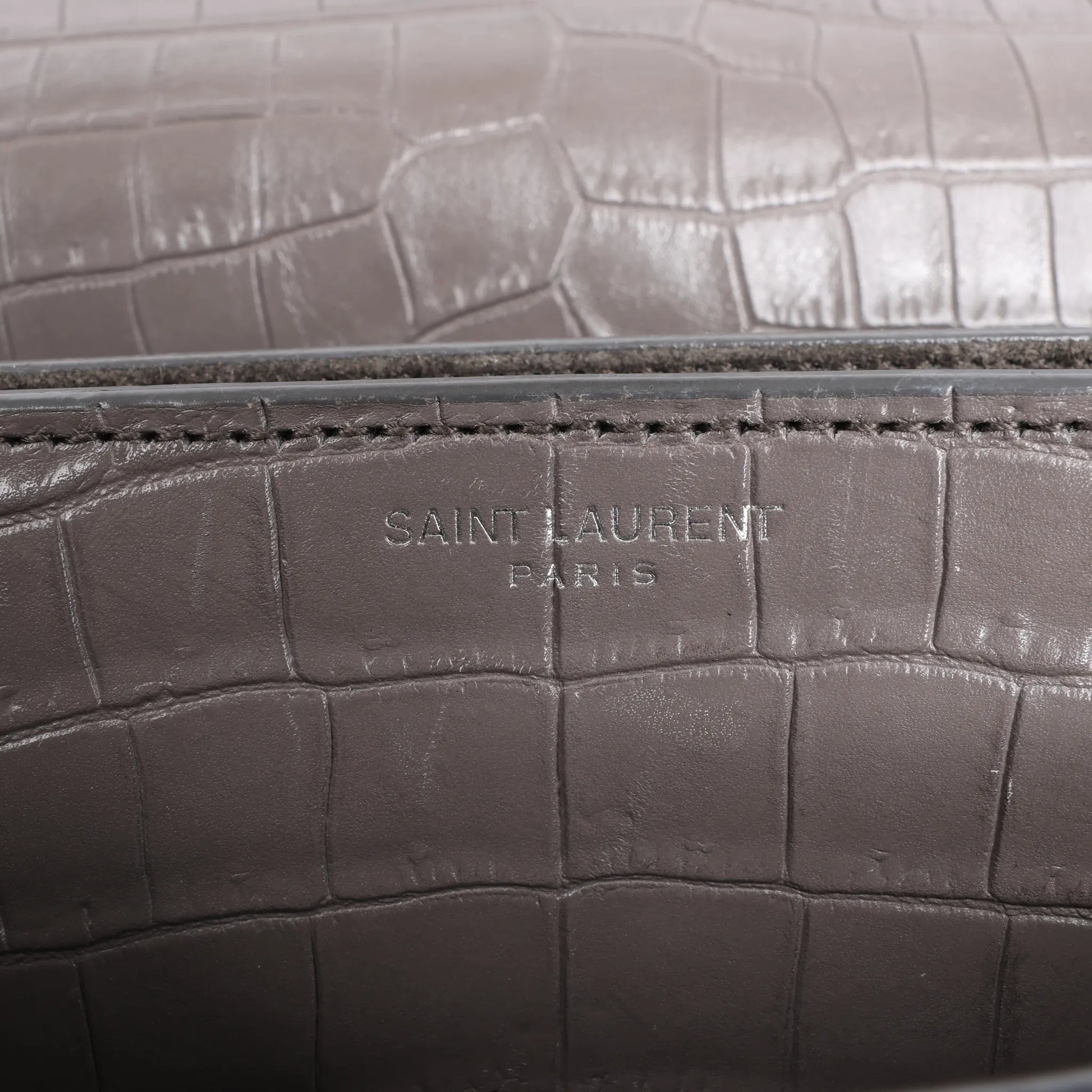 Saint Laurent Paris Sunset Medium Mock Croc Shoulder Bag in Gray 442906