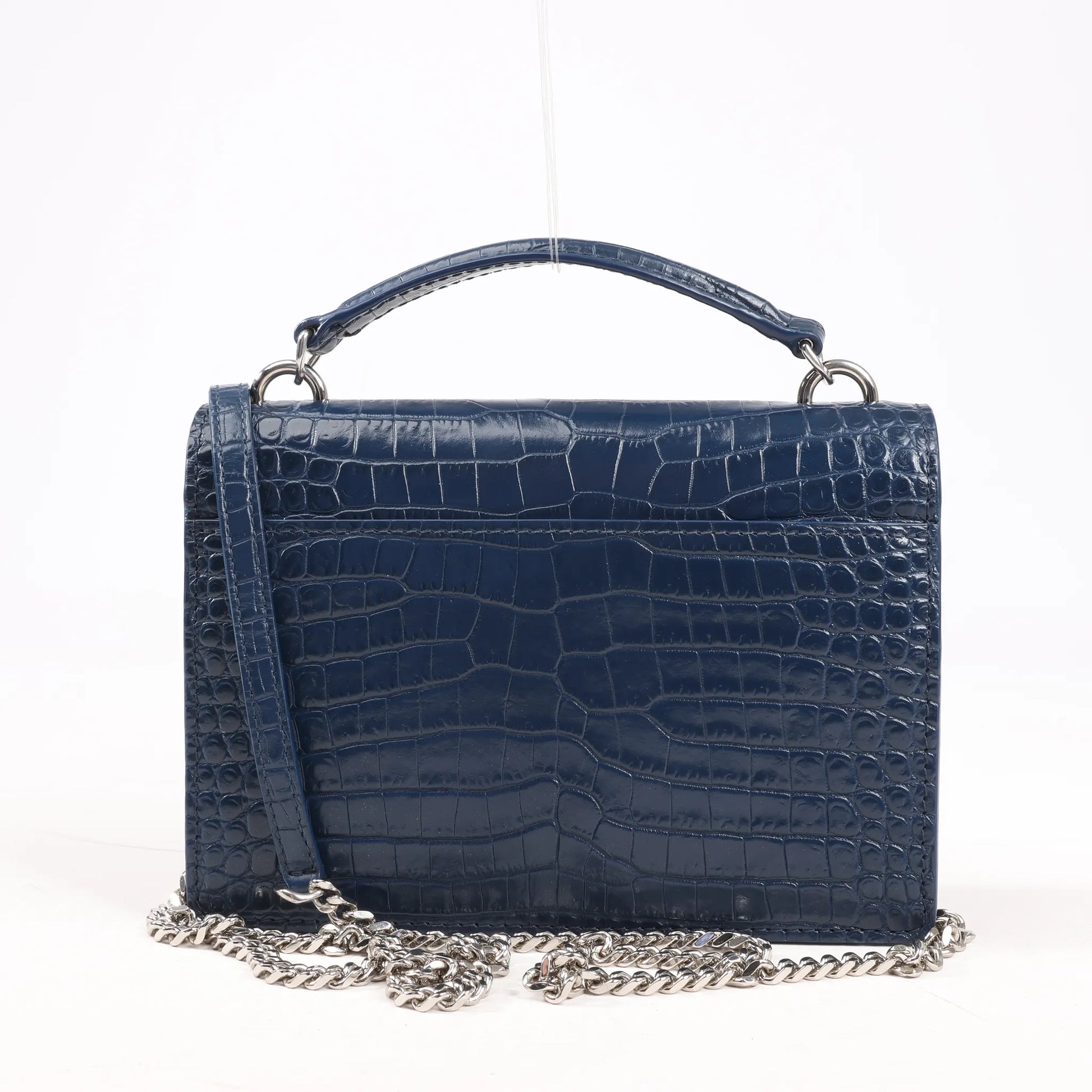 Saint Laurent Paris Sunset Mock Croc Shoulder Bag in Navy Blue 533026