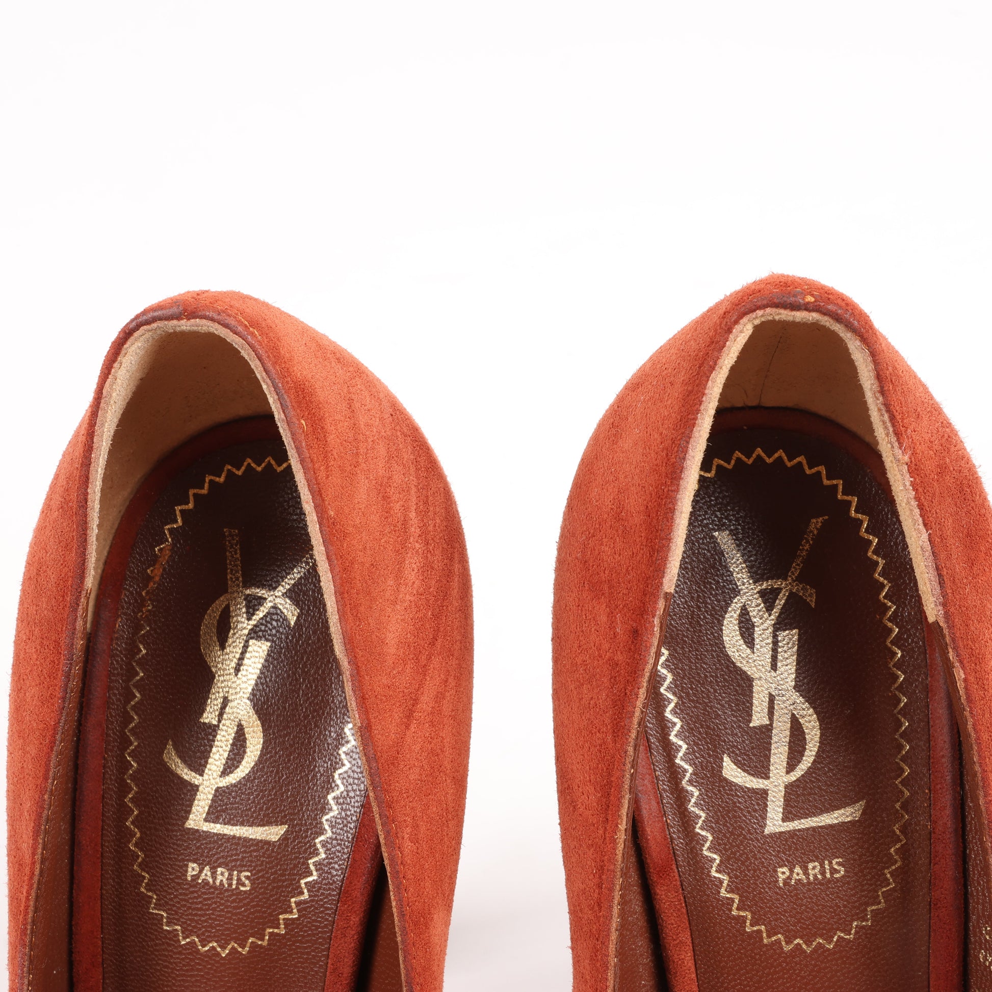 Saint Laurent Tribute Two Brown Suede Pumps Size 37.5 EU