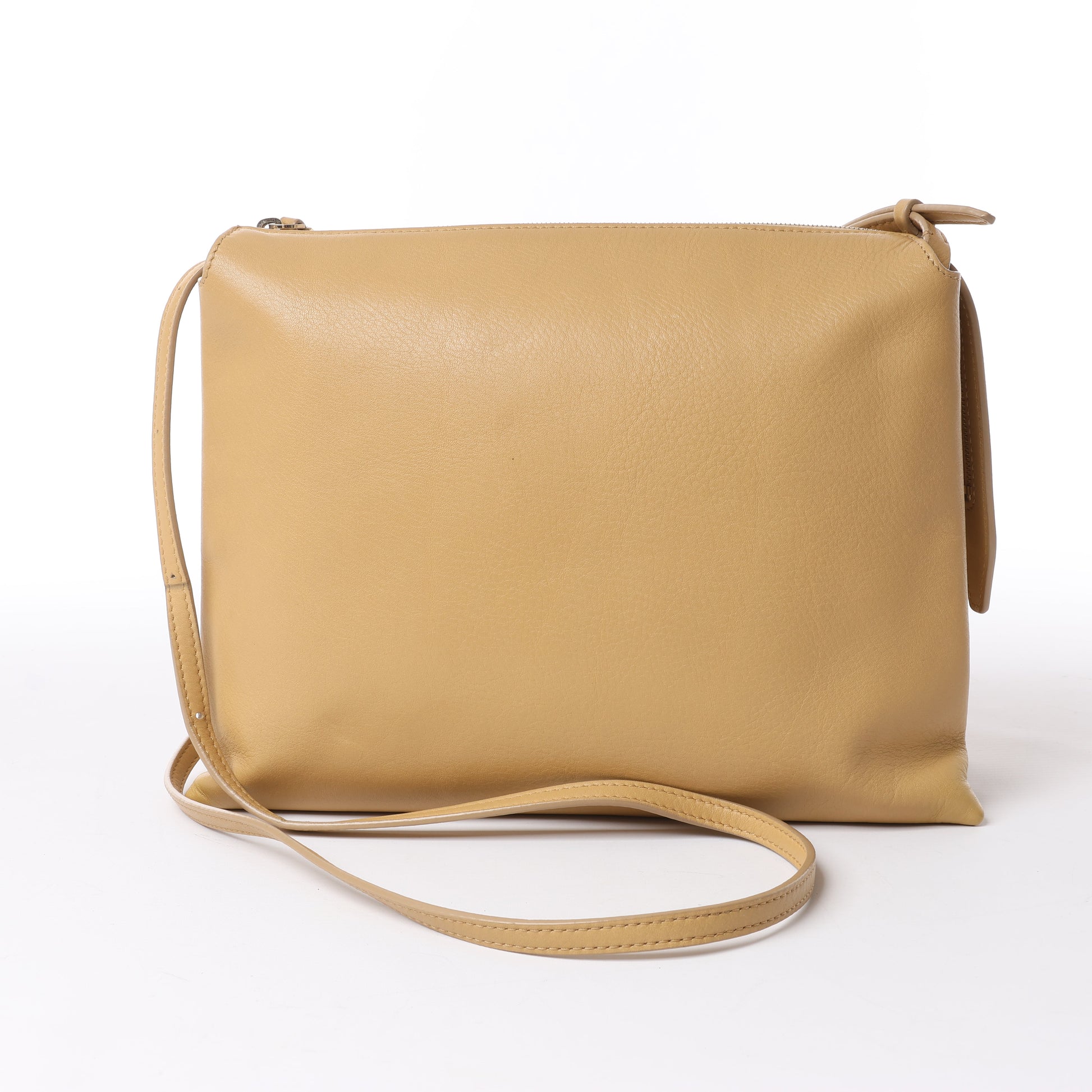 The Row Mini Twin shoulder bag in beige leather is the essence of quiet luxury. With its sleek silhouette and dual compartments, it offers refined minimalism for effortless, everyday elegance.