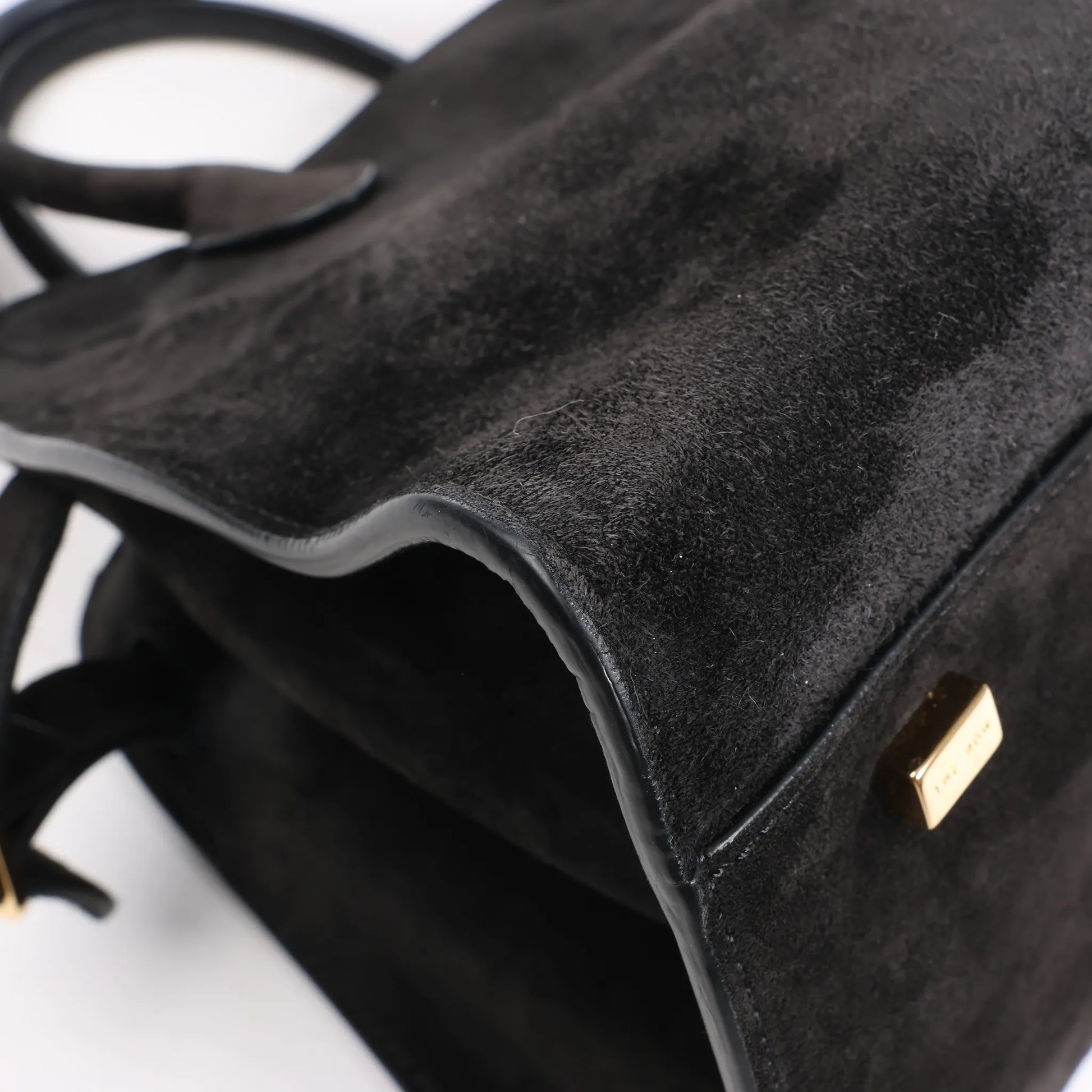 The Row Soft Margaux 10 Suede 2Way Handbag in Black