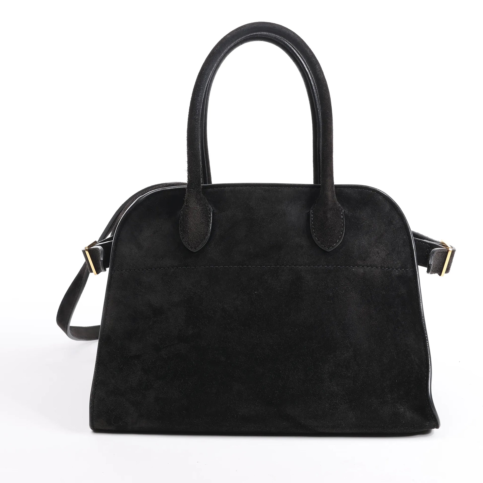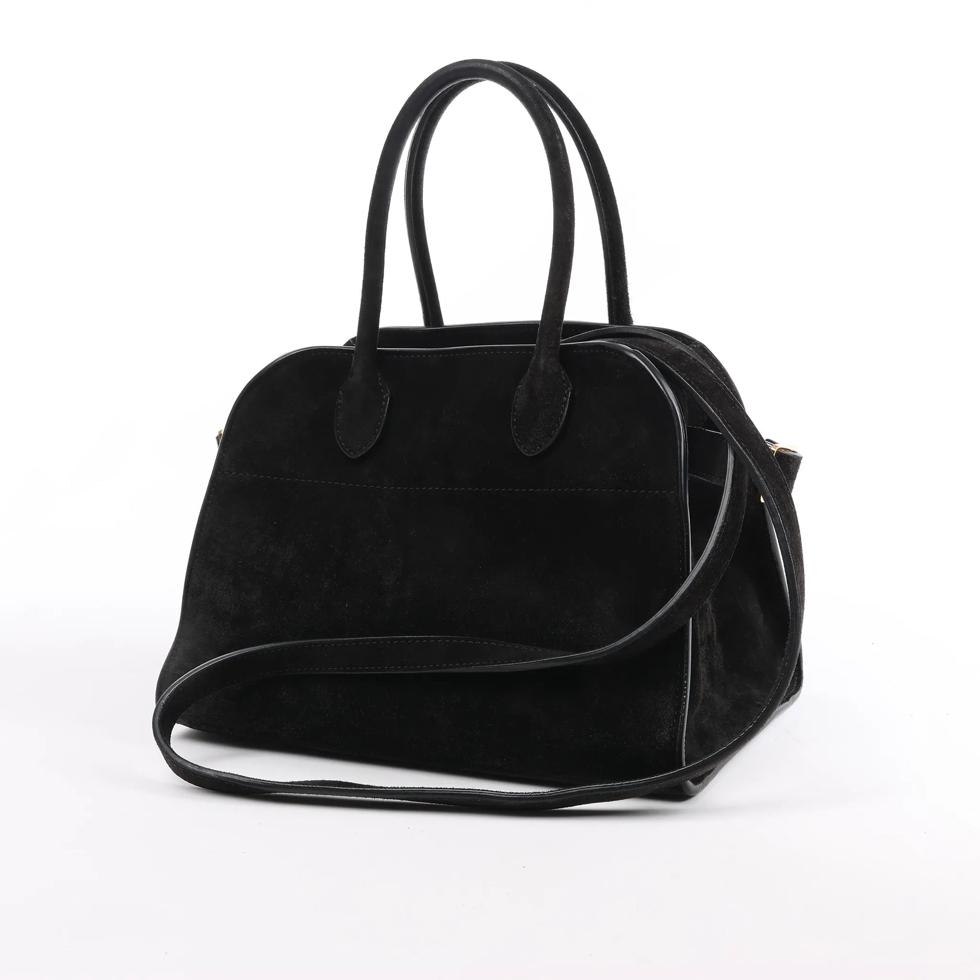 Refined and minimalist, The Row Soft Margaux 10 in black suede is a luxurious 2Way handbag crafted for effortless sophistication. Featuring supple suede, dual top handles, and a long strap, it's the ultimate blend of quiet elegance and functional design.