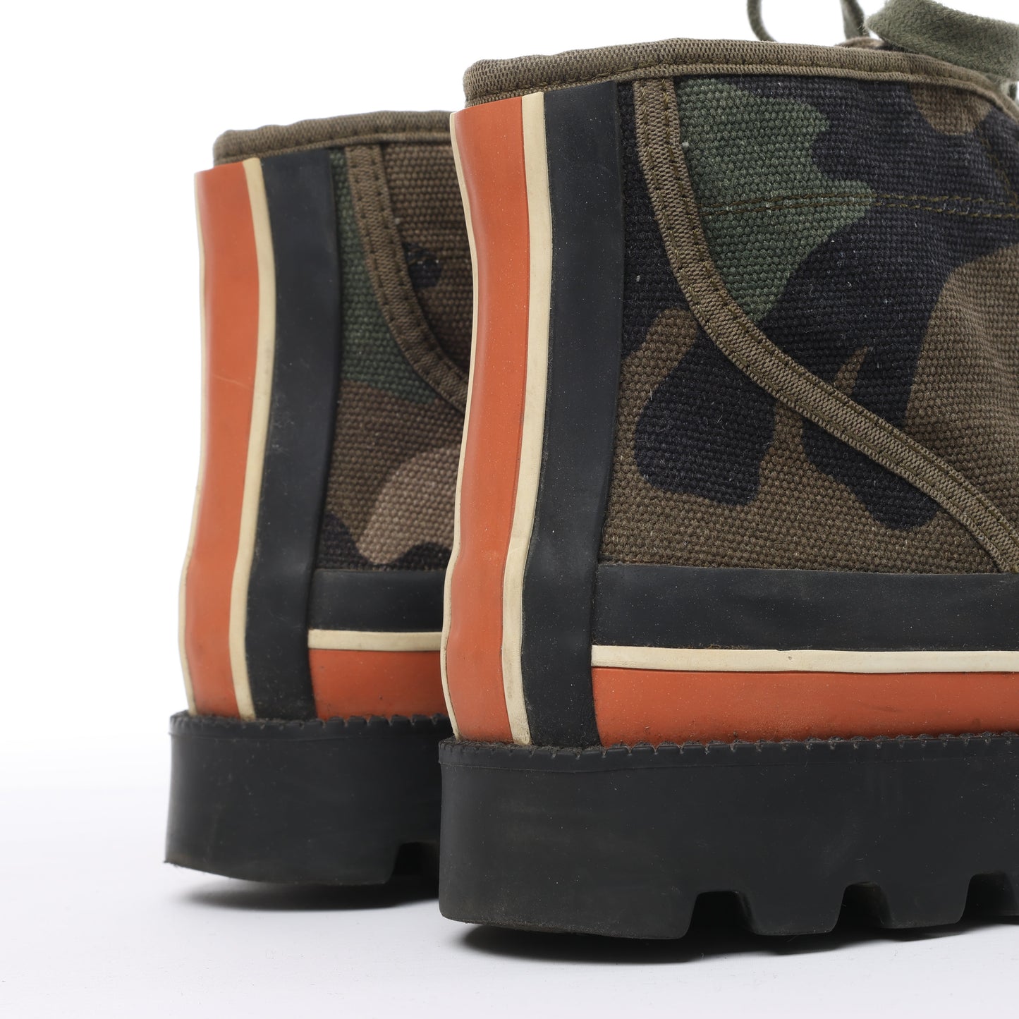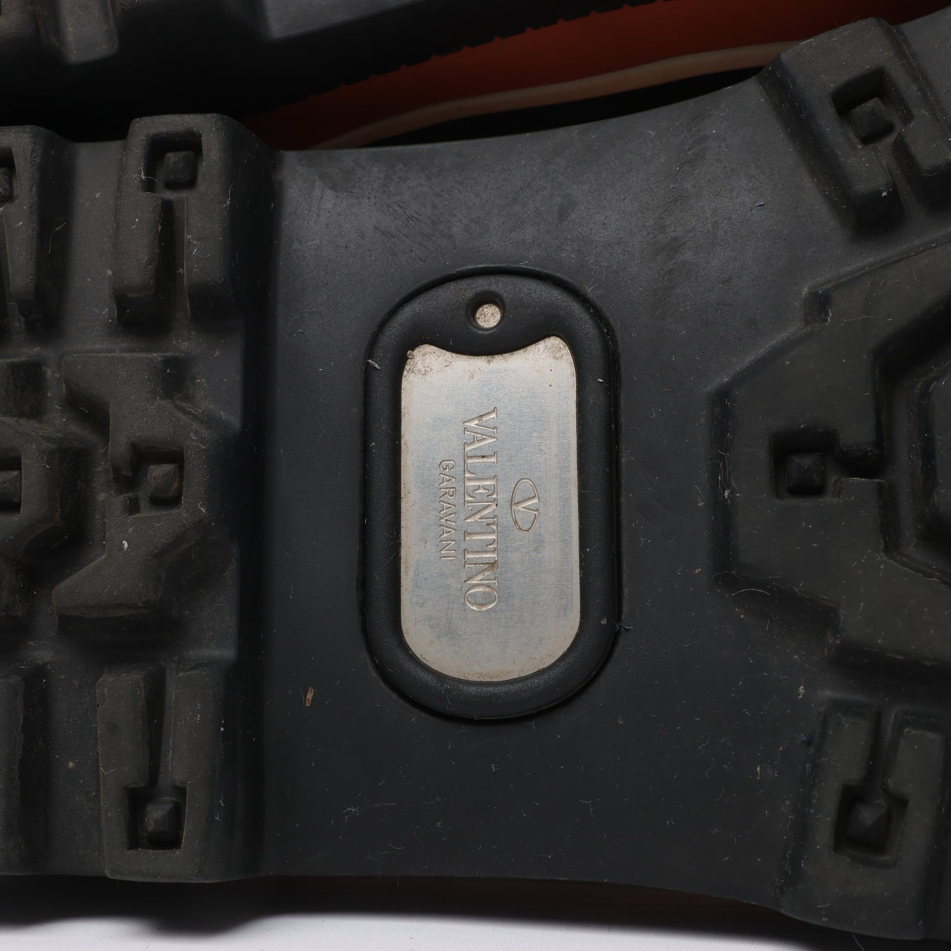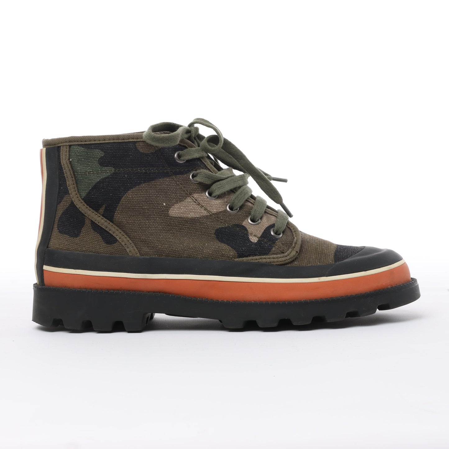 Valentino Garavani camouflage sneakers in khaki canvas, size 38 EU. With rugged lug soles and military-inspired print, these sneakers channel the brand’s edgy, street-meets-couture aesthetic made famous under Pierpaolo Piccioli’s bold vision.