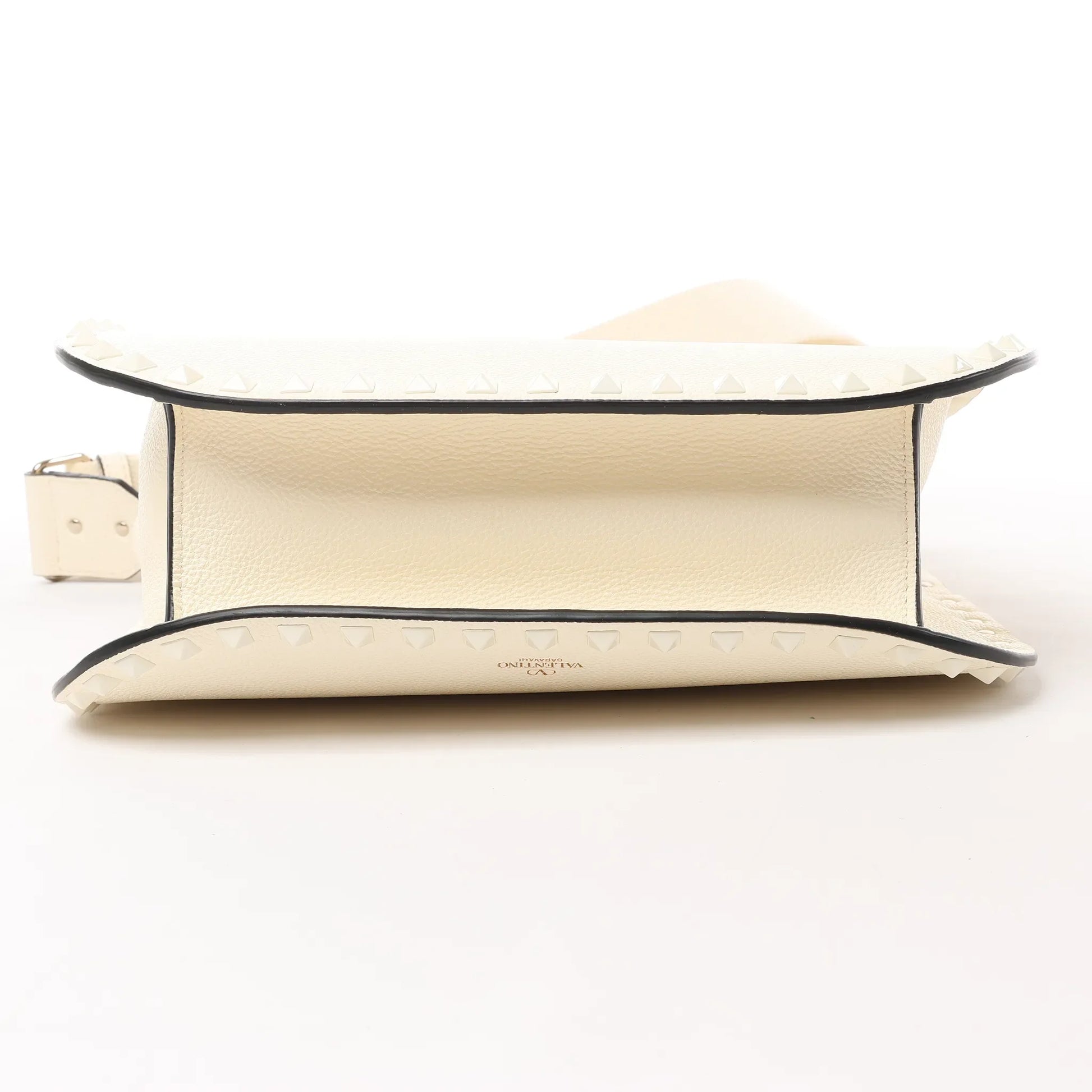 Valentino Garavani Rockstud Leather Shoulder Bag in Ecru
