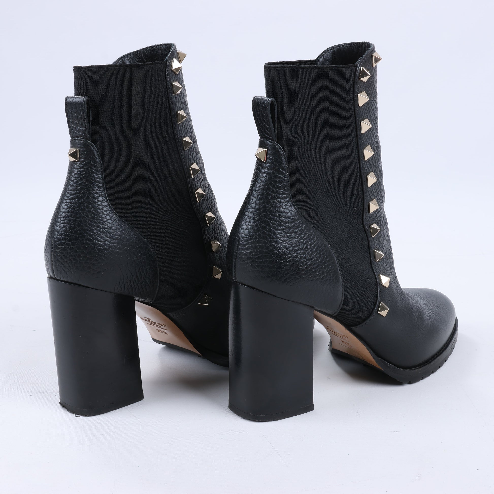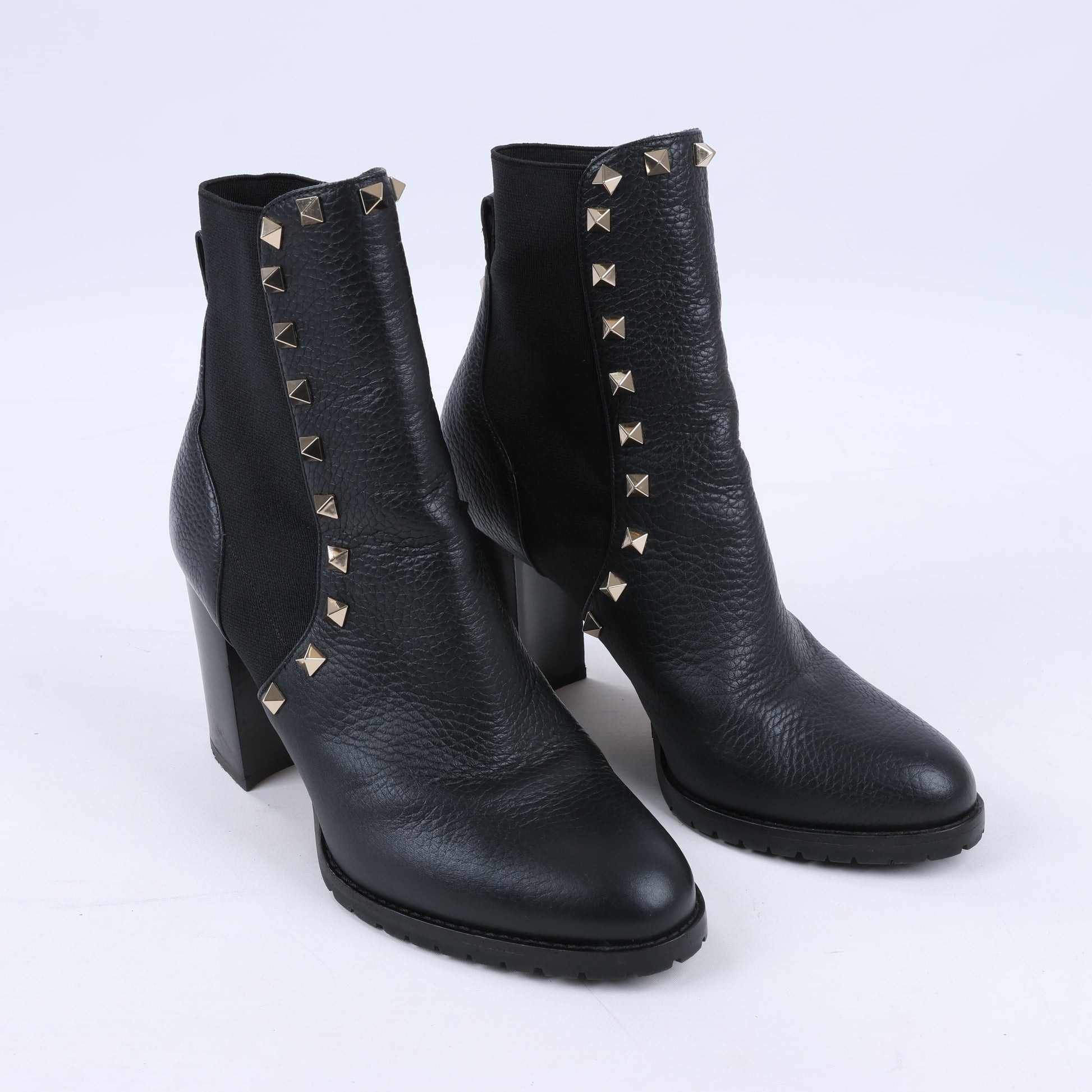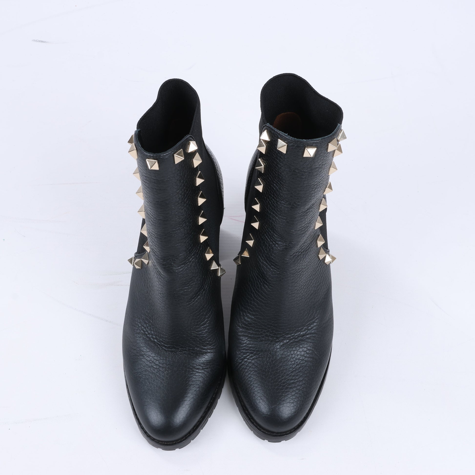 Valentino Garavani Rockstuds Leather Side Gore Boots in Black, Size 37.5 EU