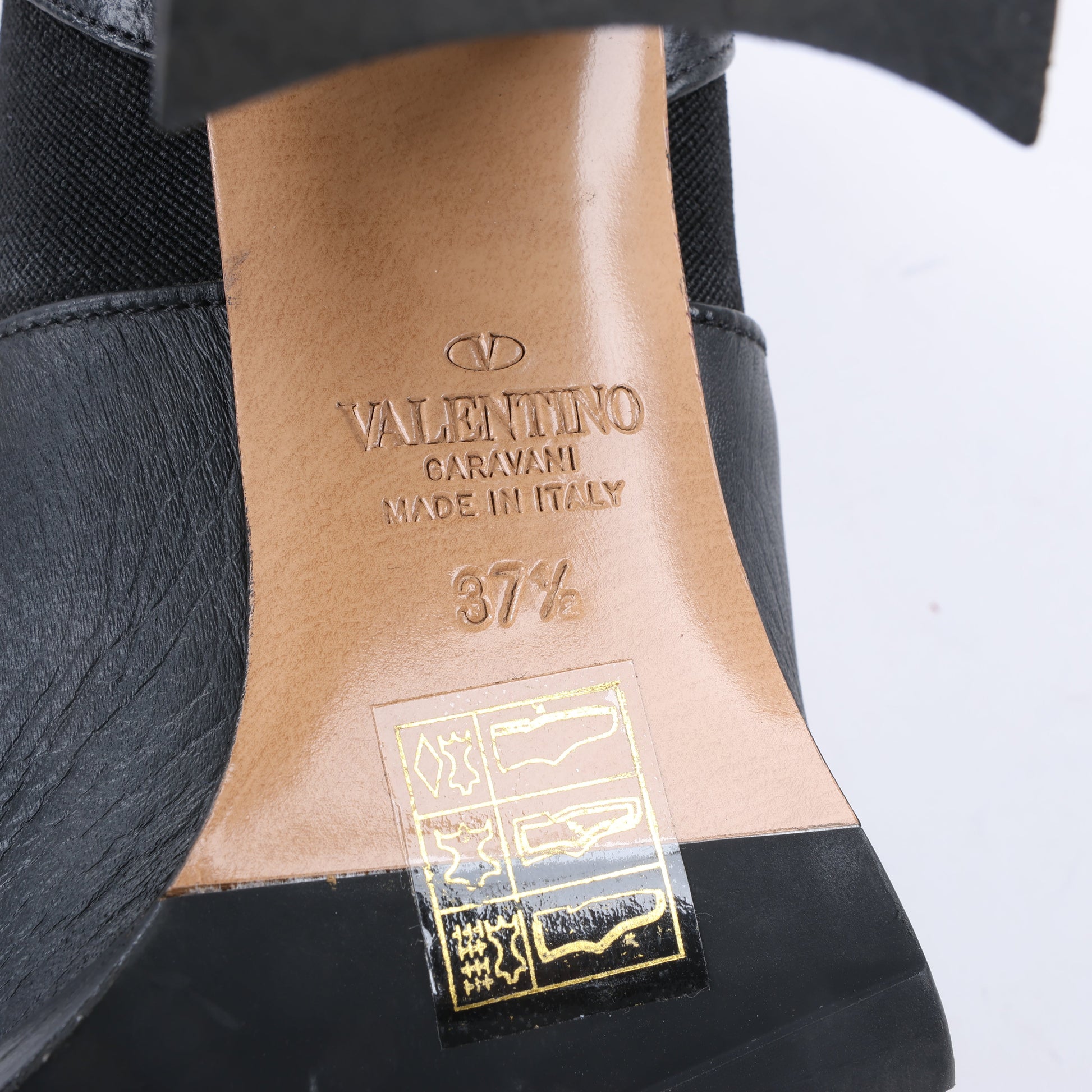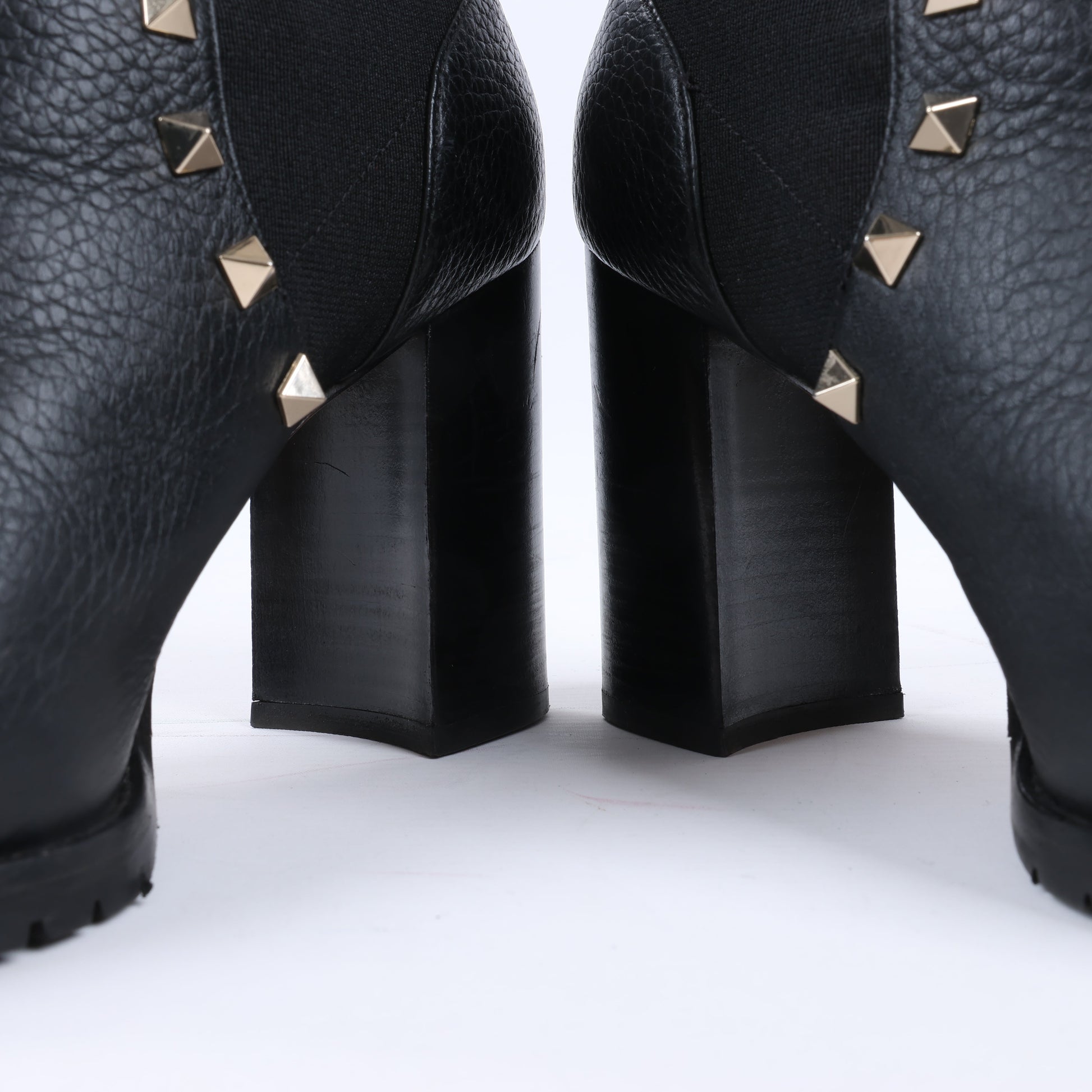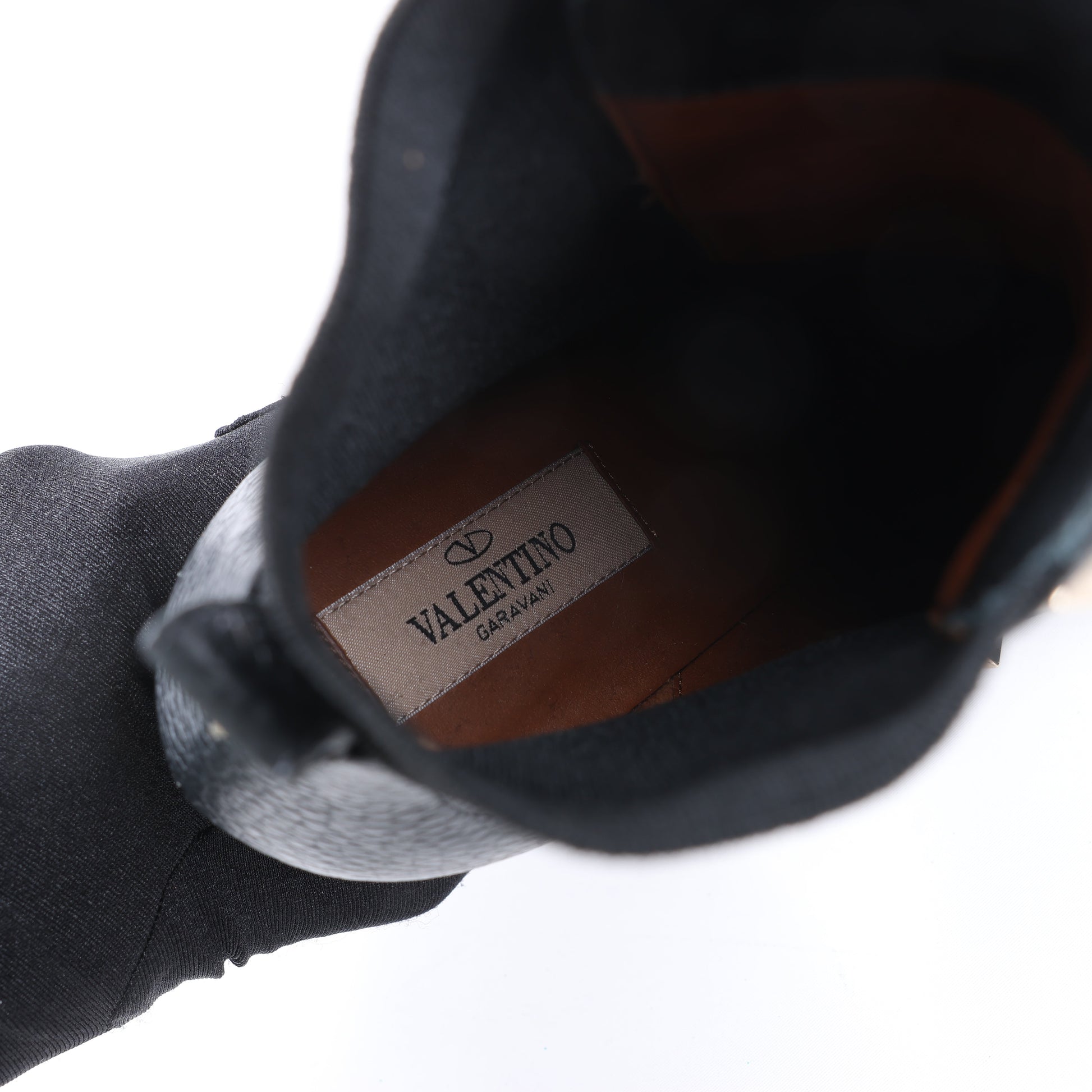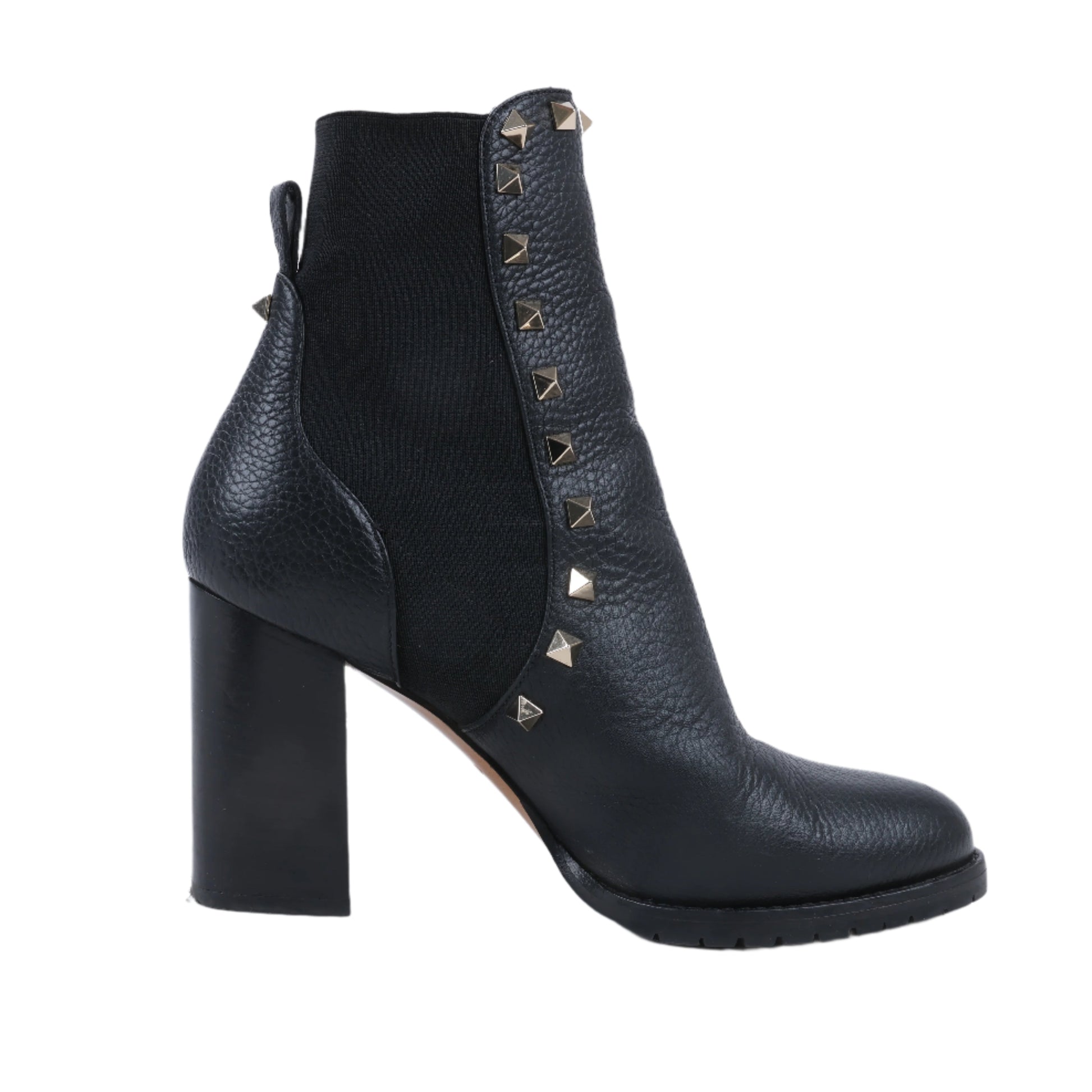 Valentino Garavani Rockstuds Leather Side Gore Boots in Black, Size 37.5 EU