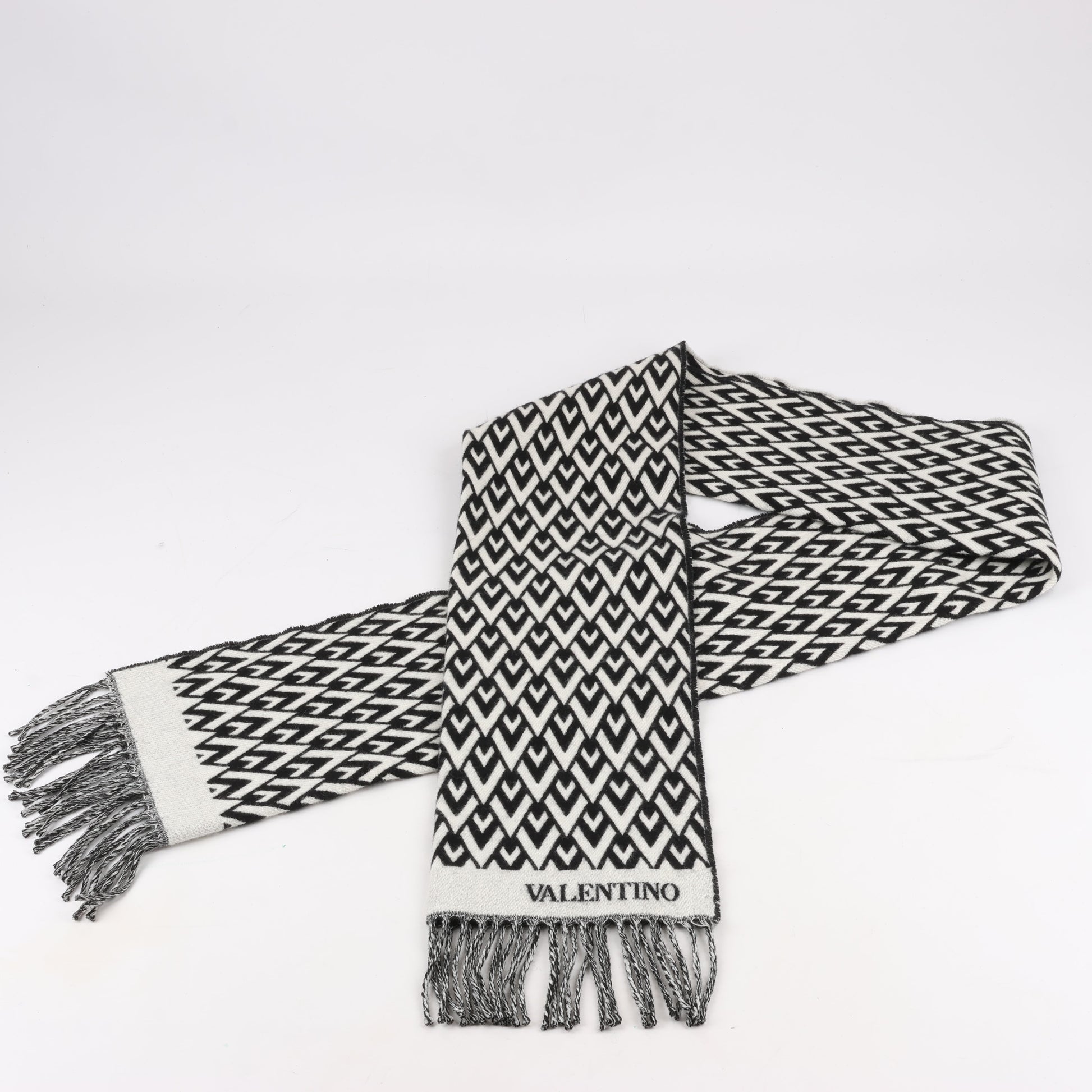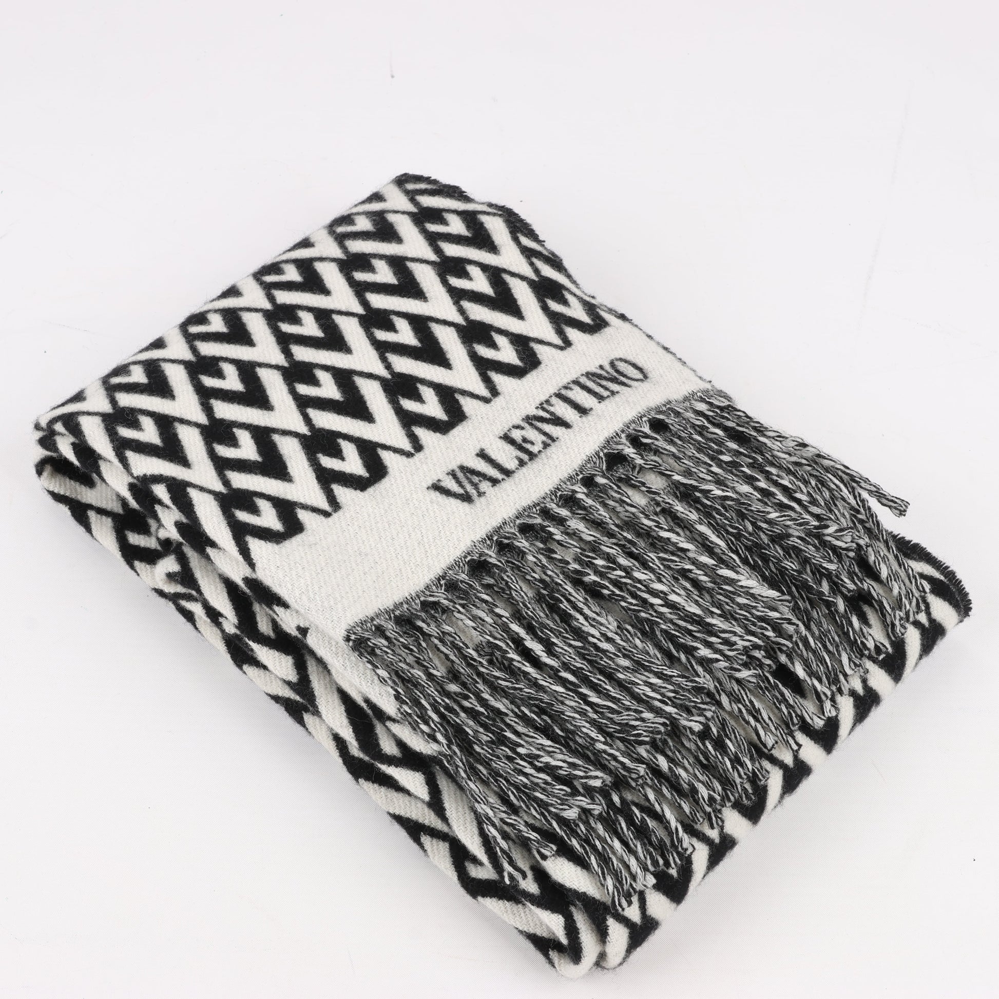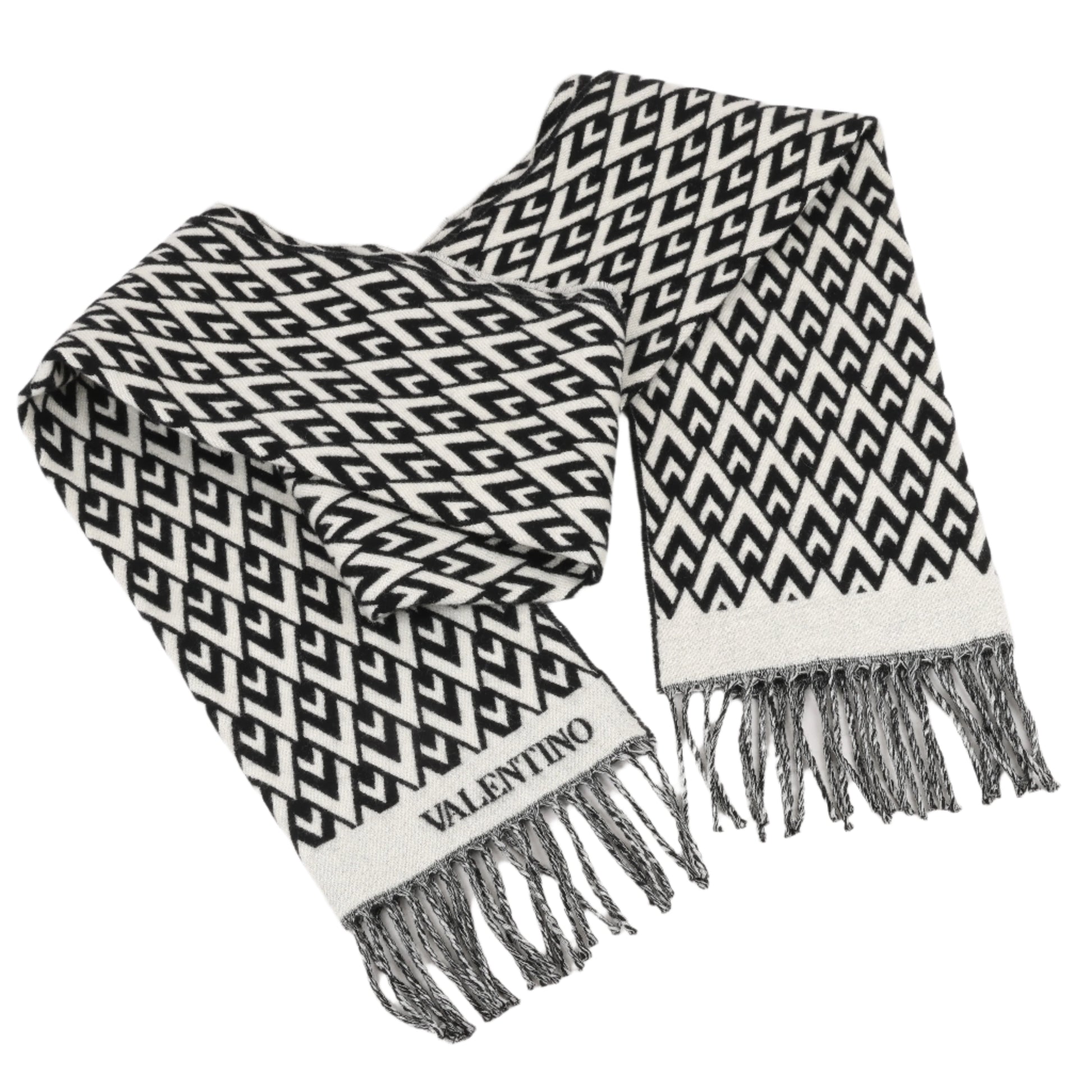 Valentino Garavani V logo Scarf Wool & Cashmere Black × White