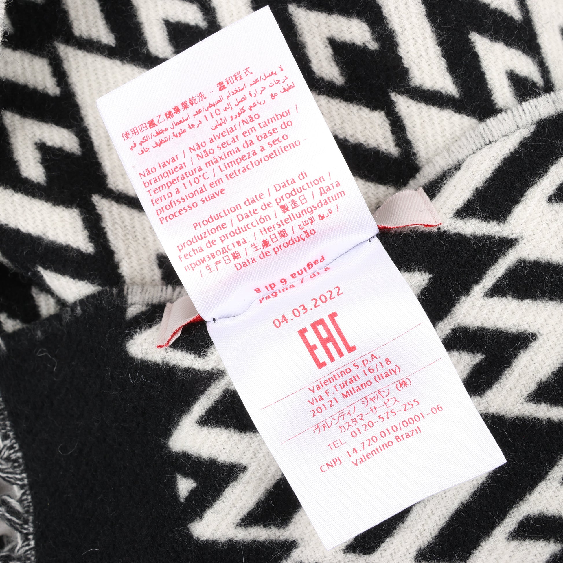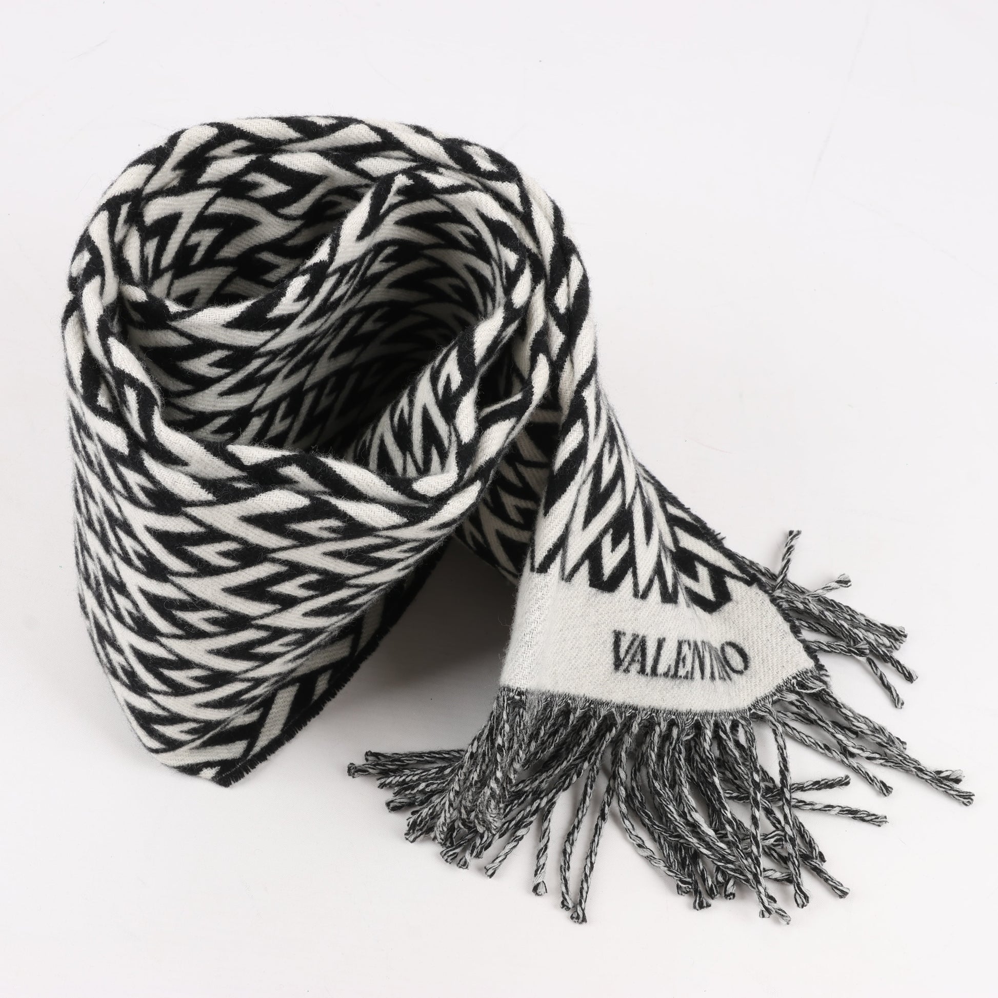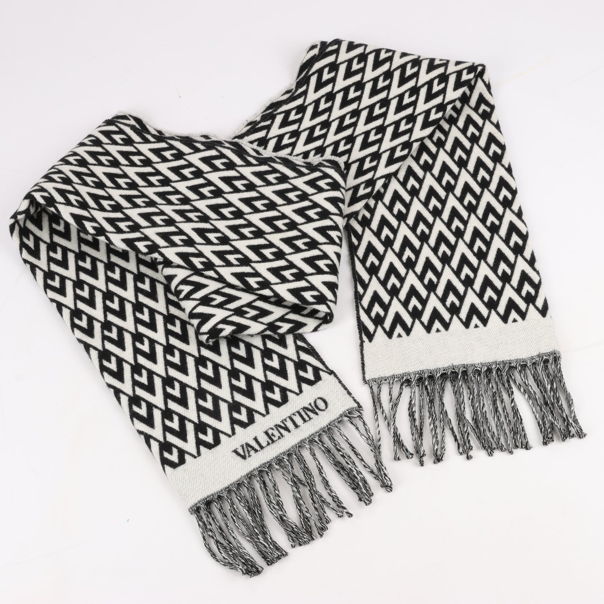 Valentino Garavani V logo Scarf Wool & Cashmere Black × White
