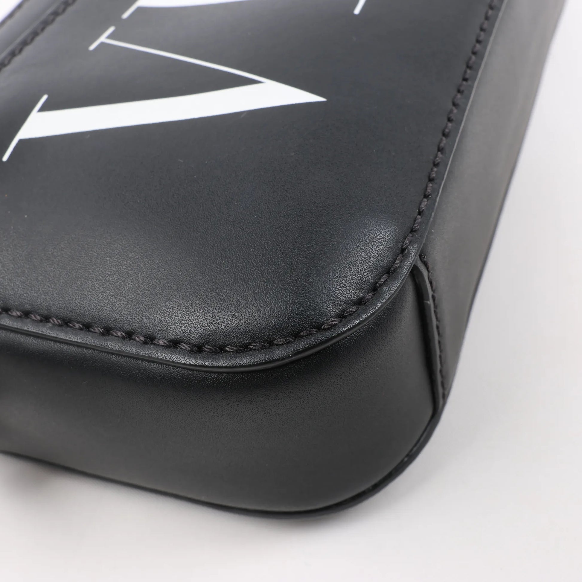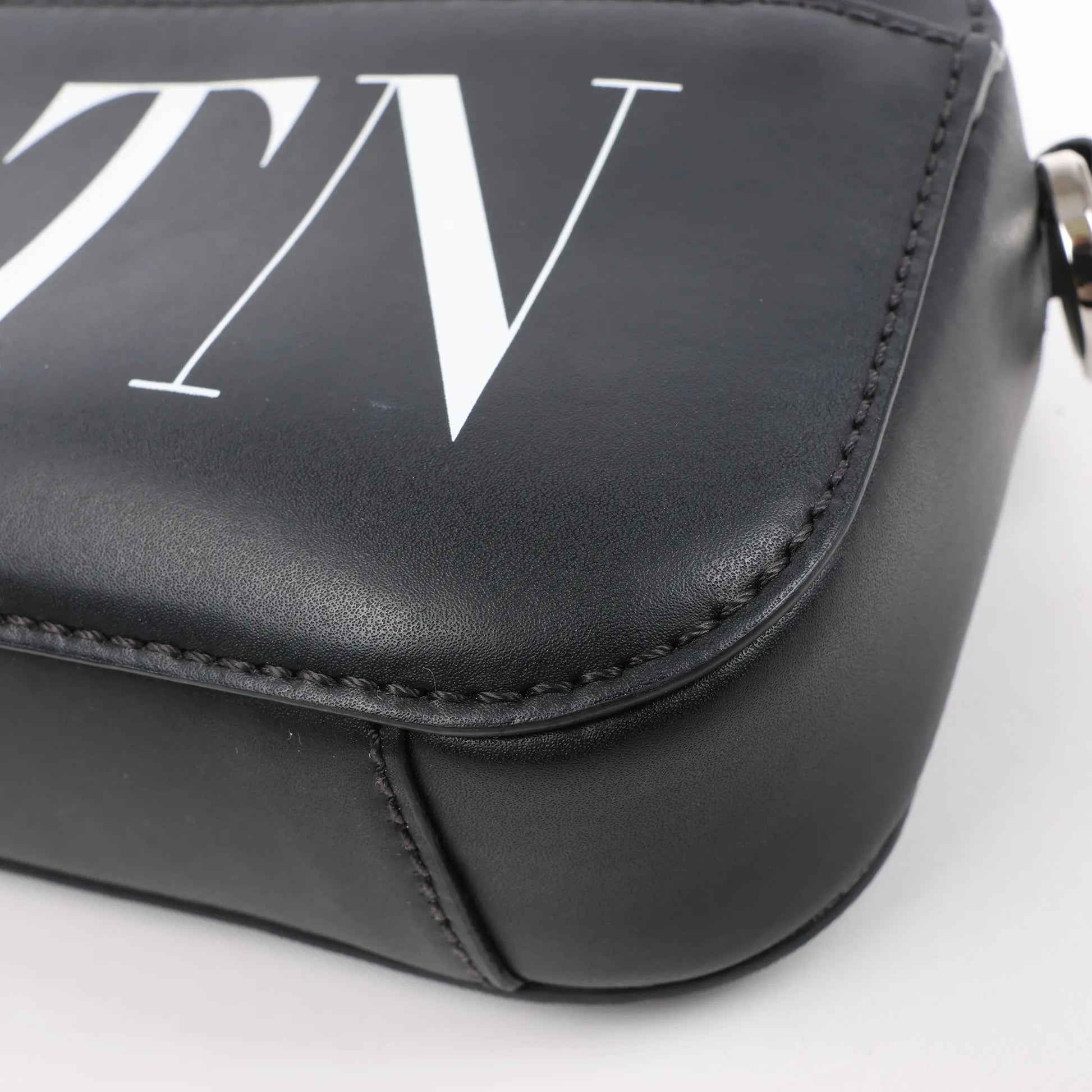 The Valentino Garavani VLTN Leather Shoulder Bag in Black is a sleek and modern essential. Crafted from smooth black leather with bold white VLTN logo and silver-tone hardware, this compact crossbody delivers effortless street-luxe style.